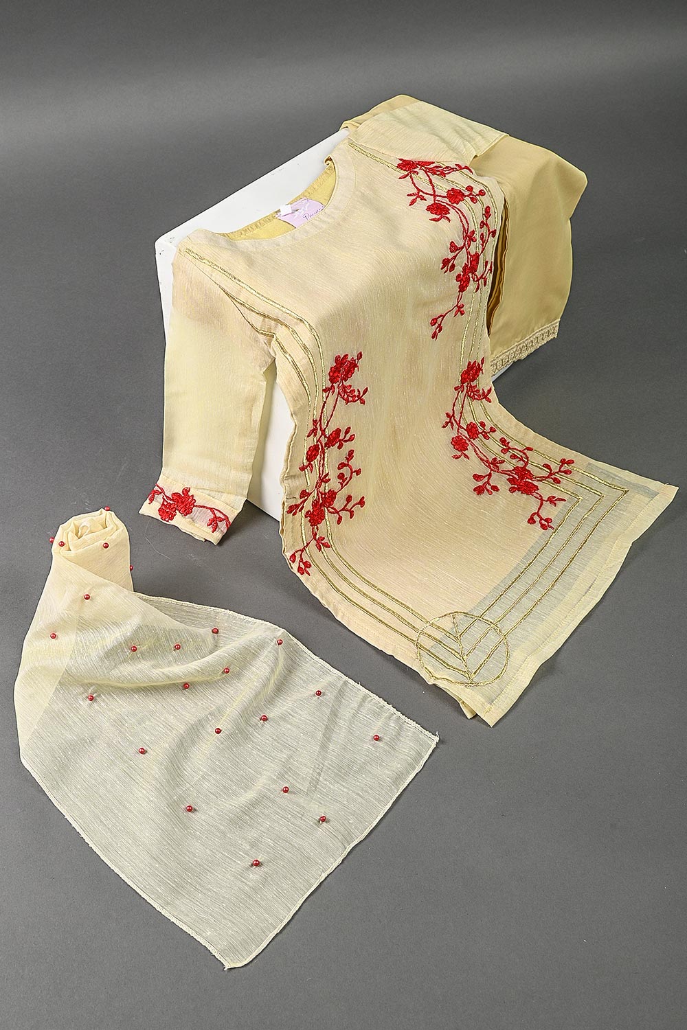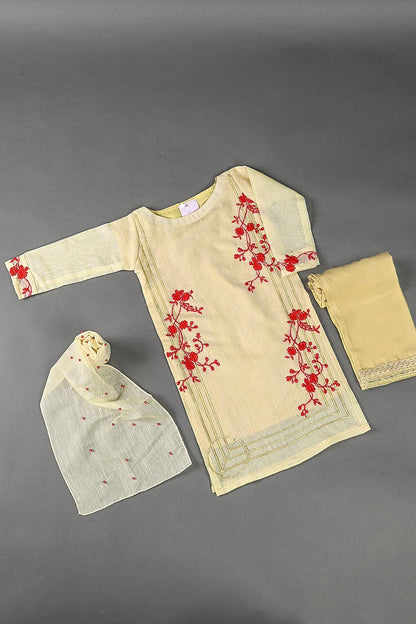 3Pc Kids Paper Cotton Formal Stitched Dress