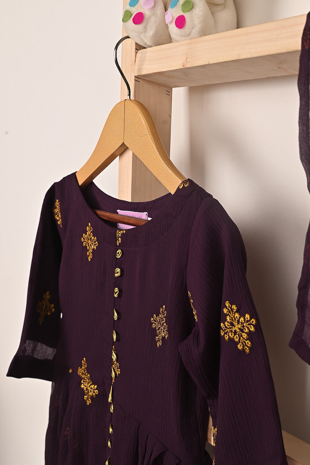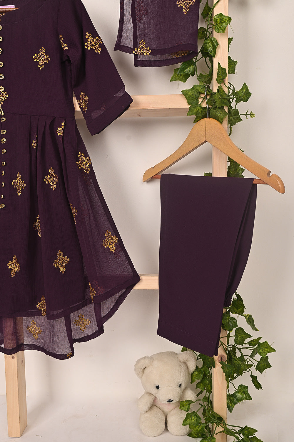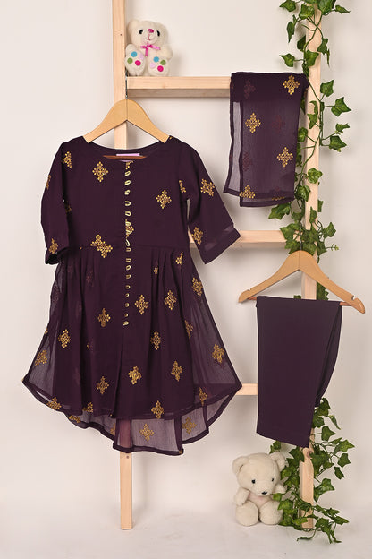Kids 3Pc Chiffon Embroidered Frock With Malai Trouser