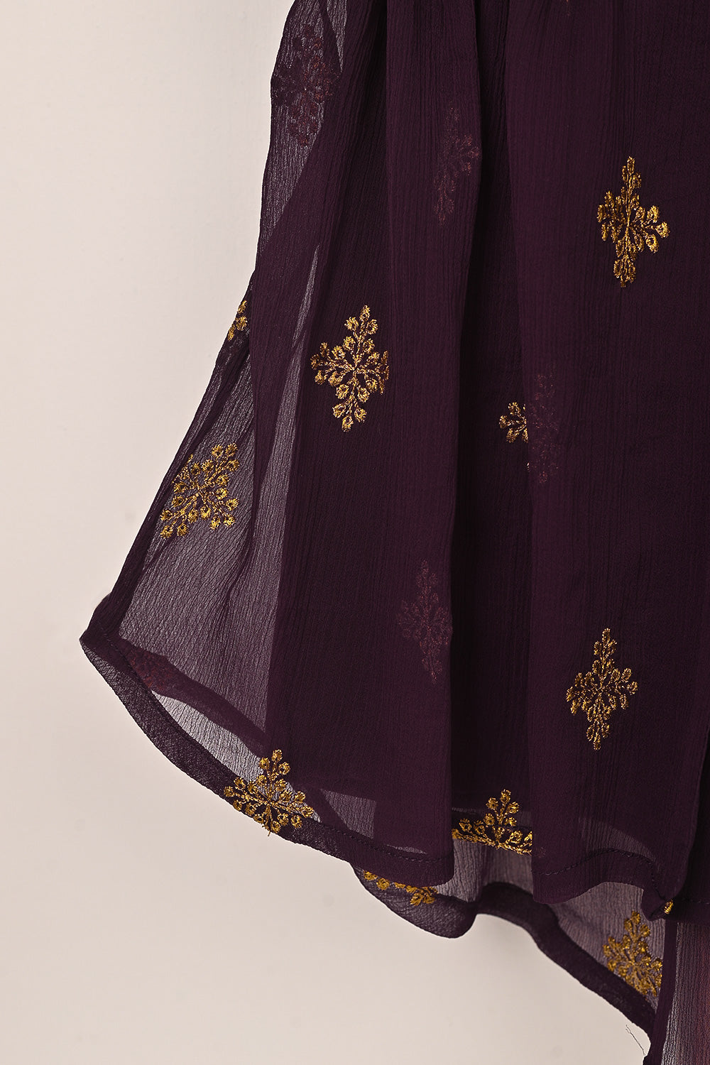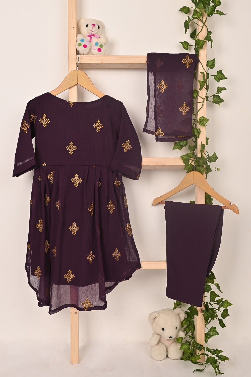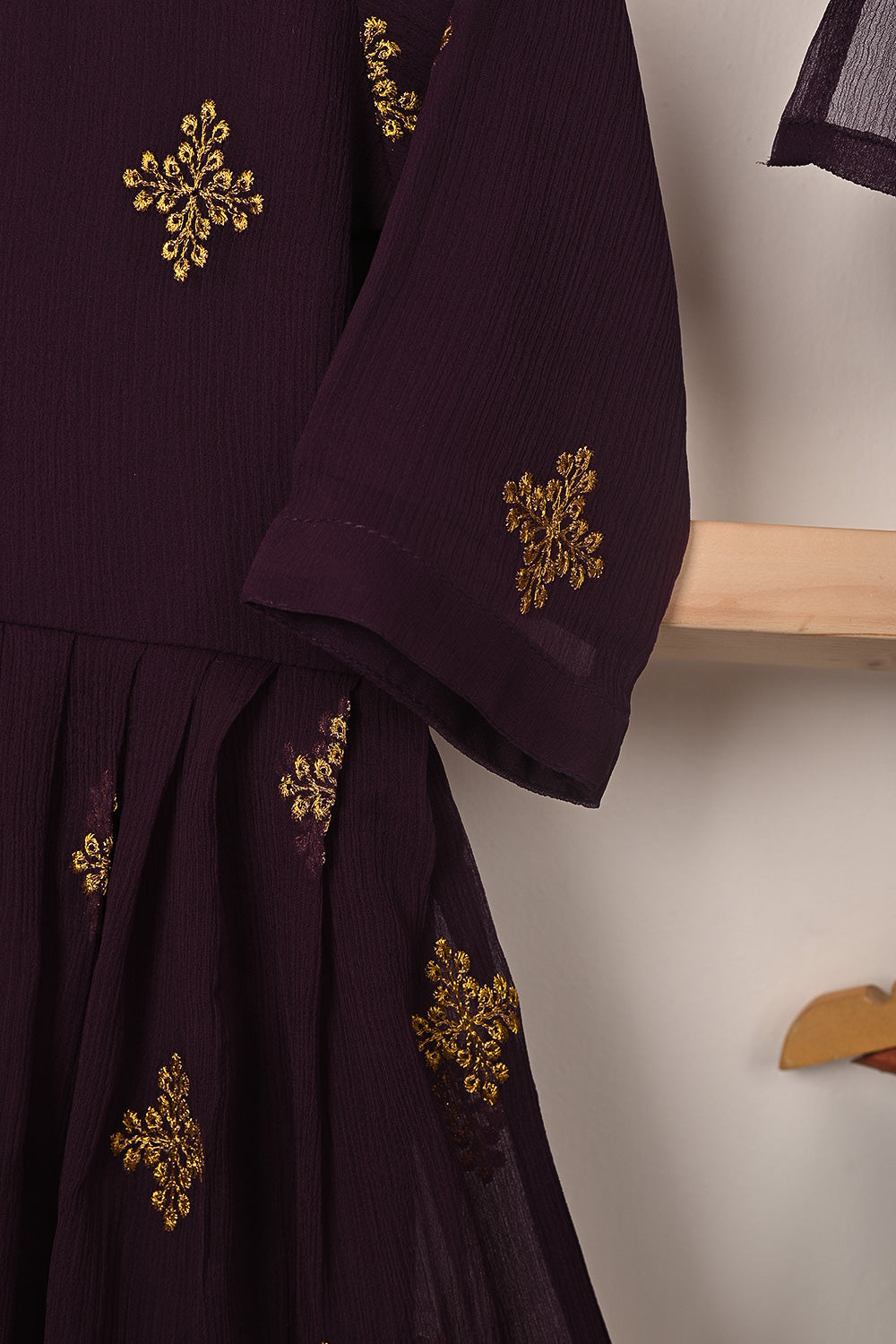 Kids 3Pc Chiffon Embroidered Frock With Malai Trouser