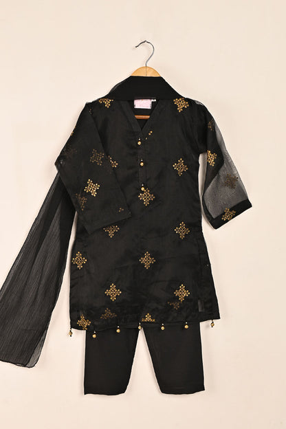 TKF-130-Black - Kids 3Pc Organza Formal Dress