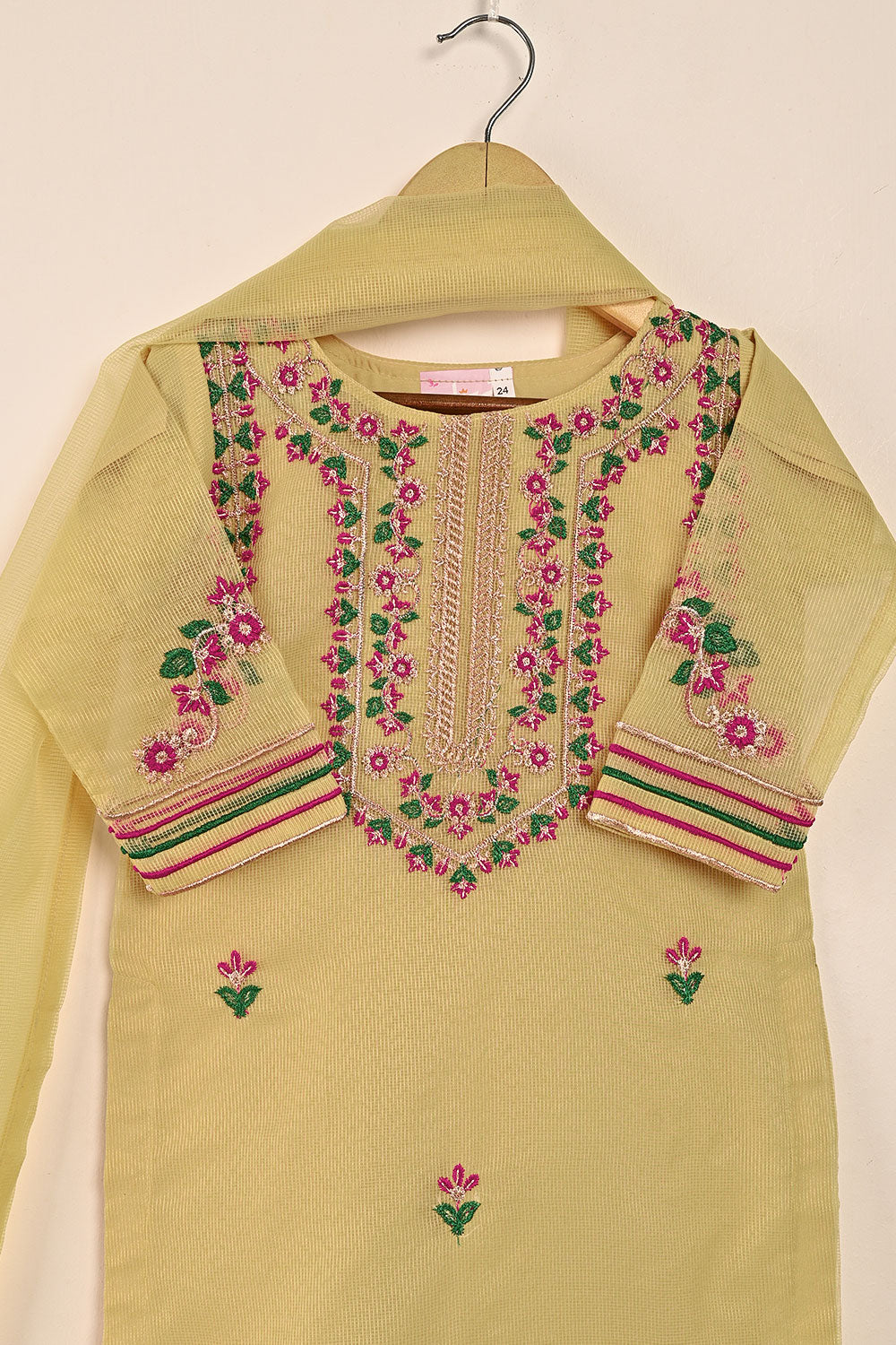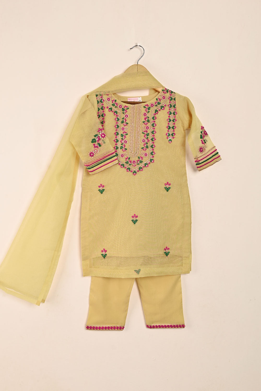 Kids 3Pc  Javeria Net Embroidered Formal Dress