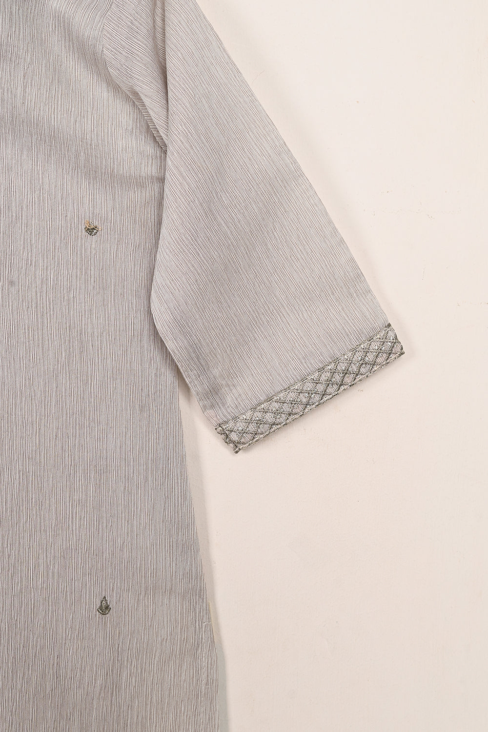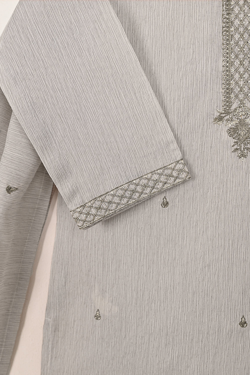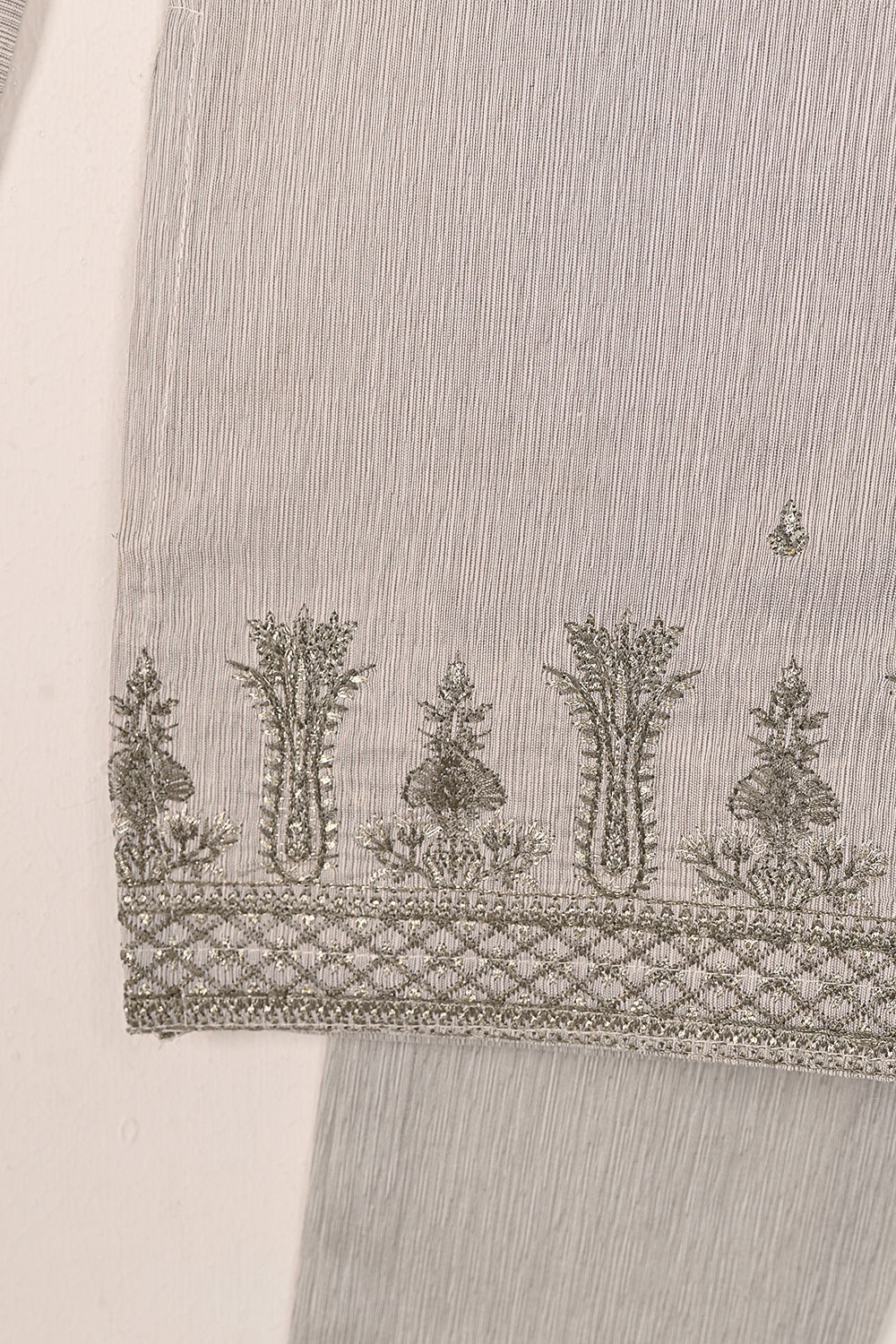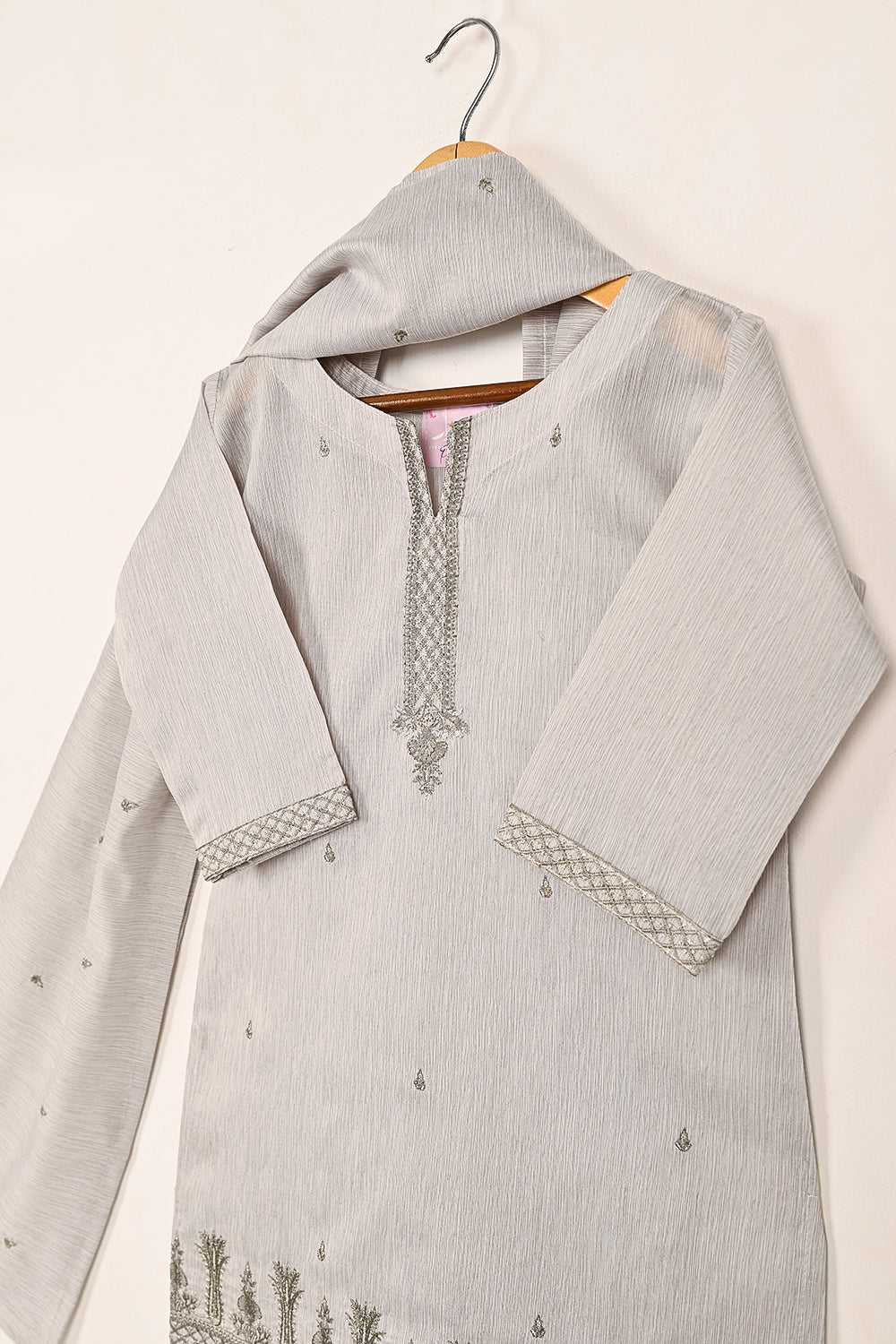 TKF-139-Gray - Kids 3Pc Ready to Wear Embroidered Poly Slub Dress