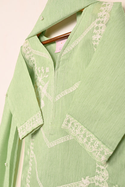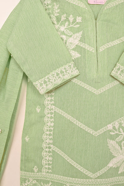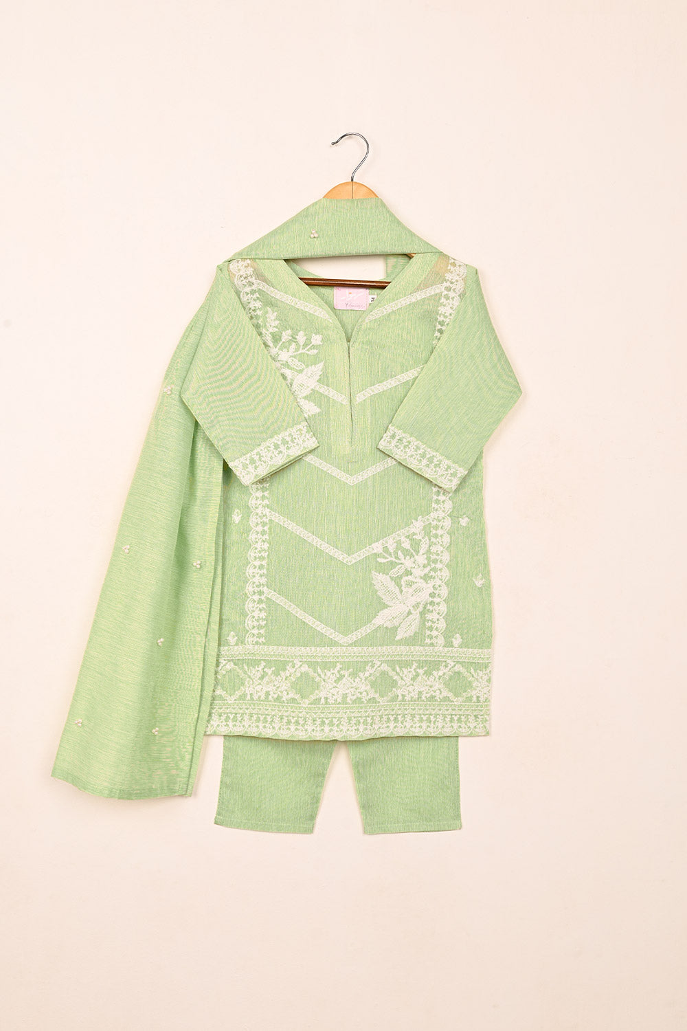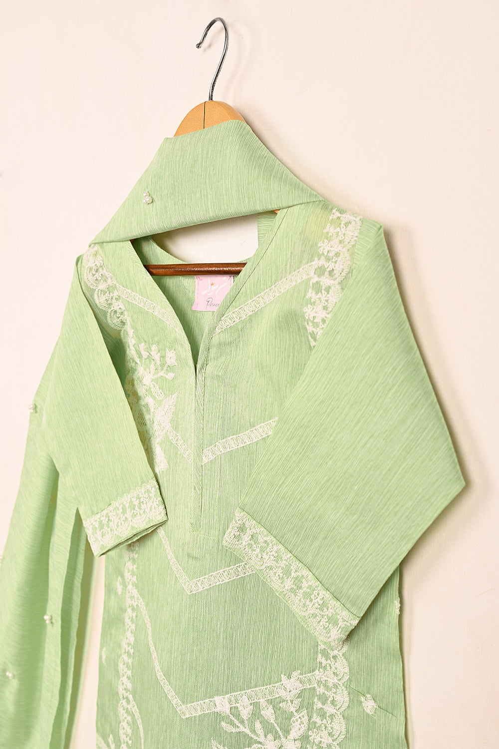 Kids 3Pc Ready to Wear Embroidered Poly Slub Dress