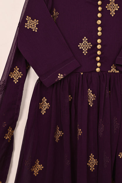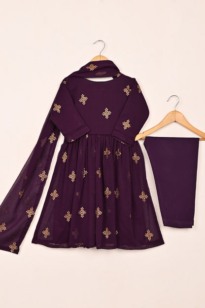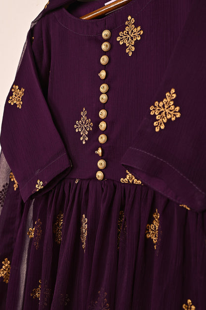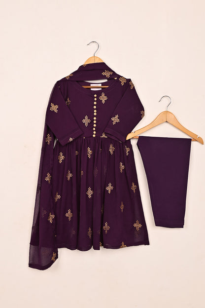 Kids 3Pc Ready to Wear Chiffon Formal Embroidered Frock