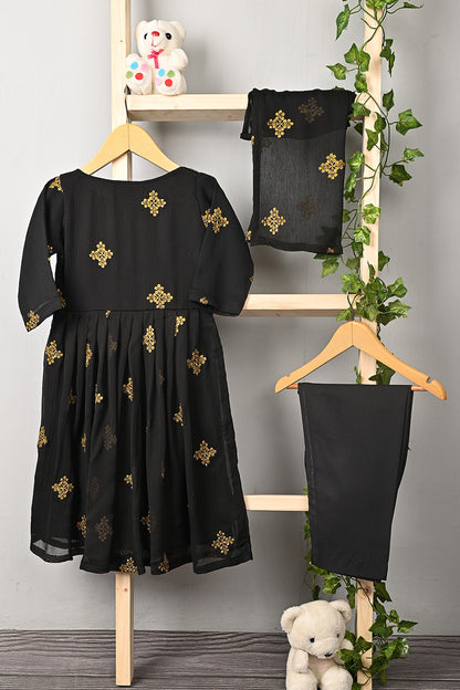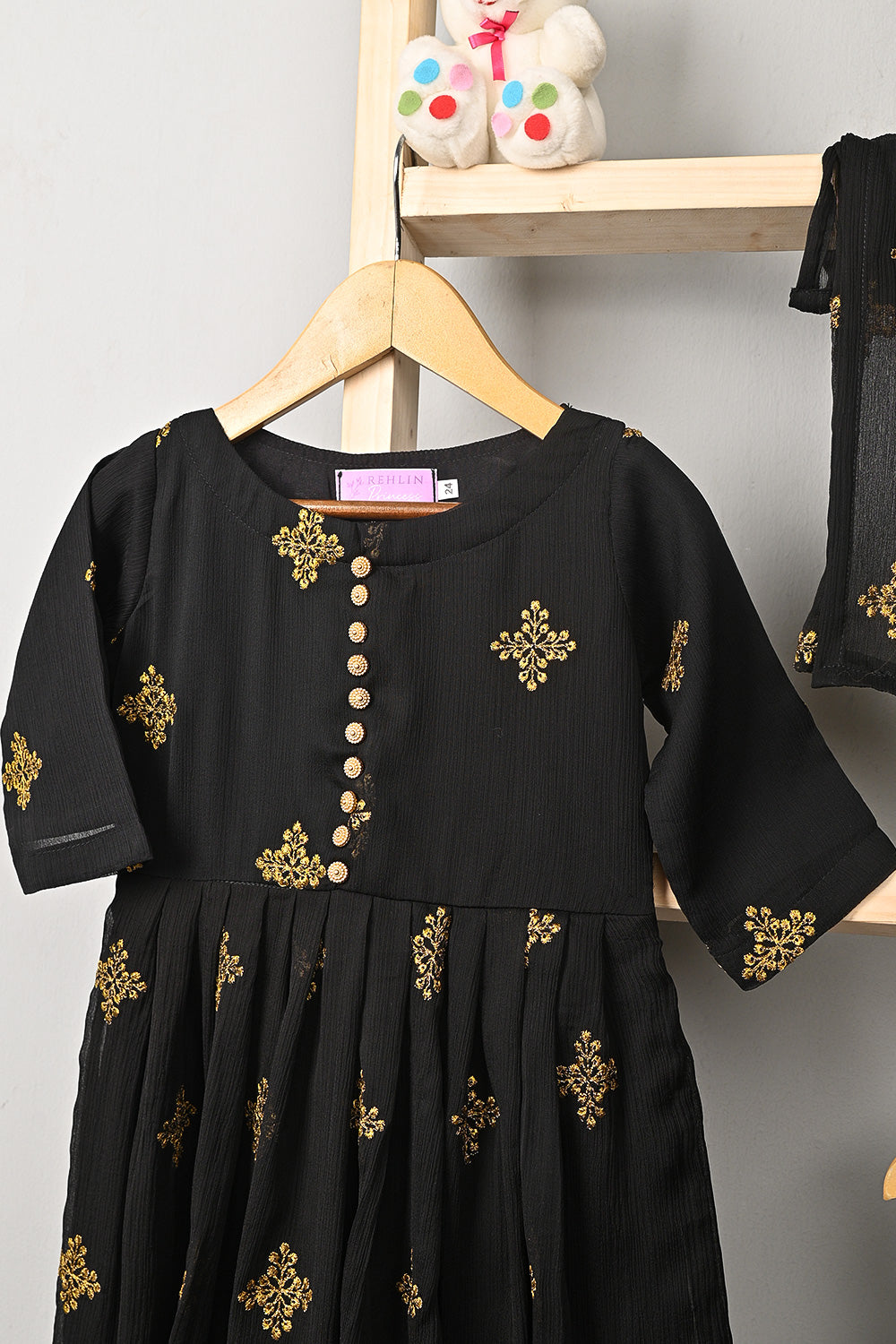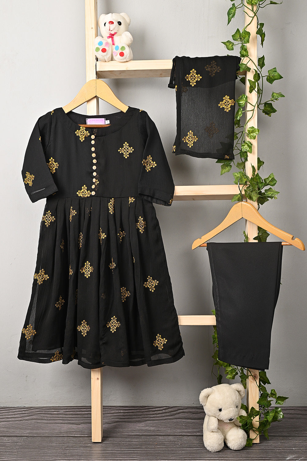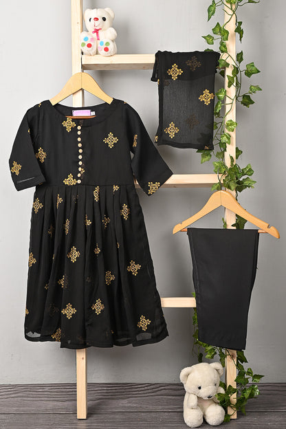 Kids 3Pc Chiffon Formal Embroidered Frock