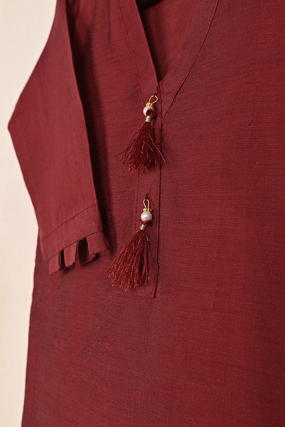 -Khaddi Fabric Shirt Styled with Loops on Cuffs & Daman