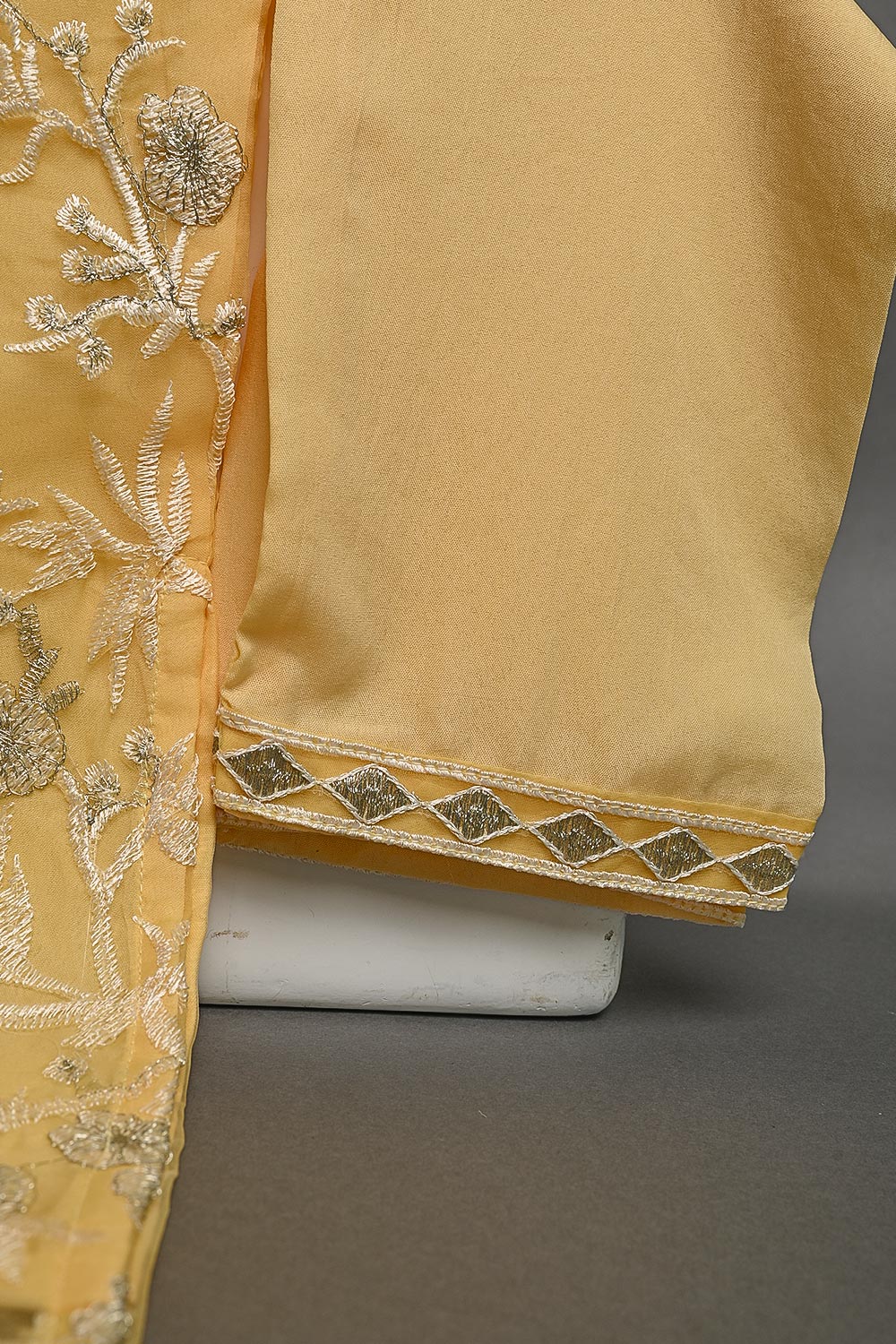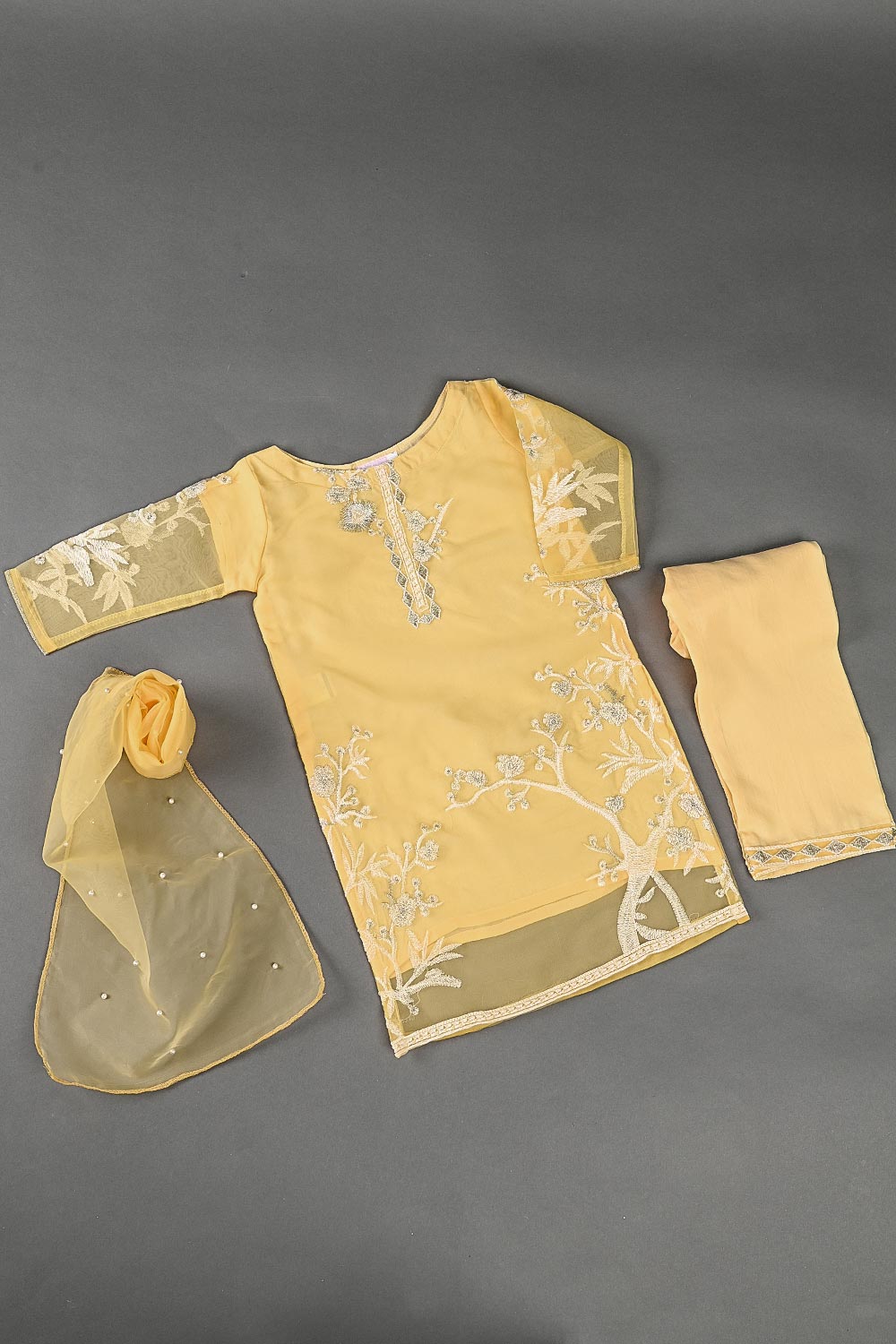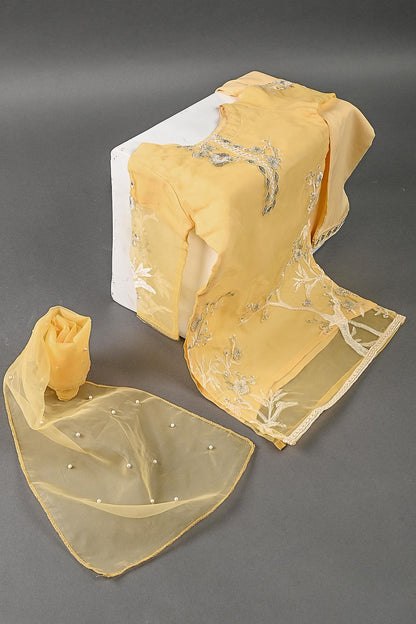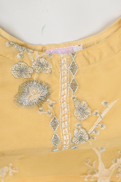 TKF-24B-YELLOW - Kids 3Pc Organza Formal Embroidered Dress With Malai Trouser