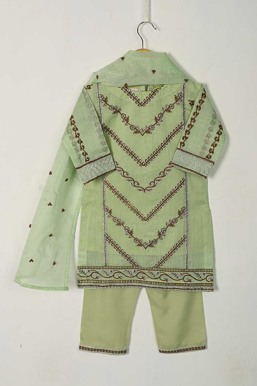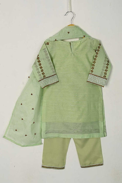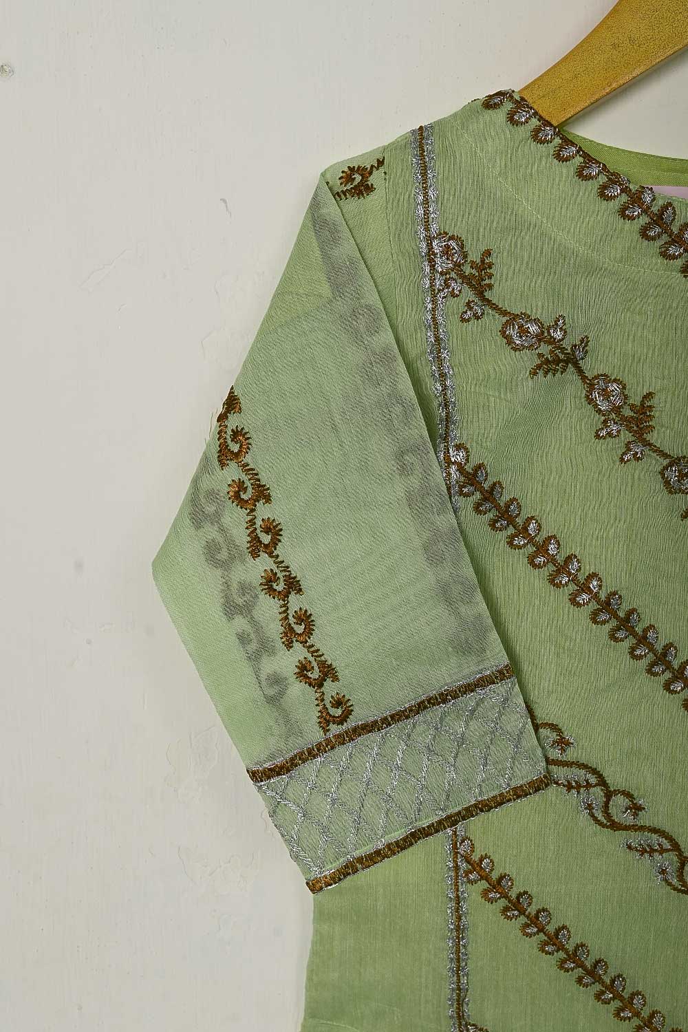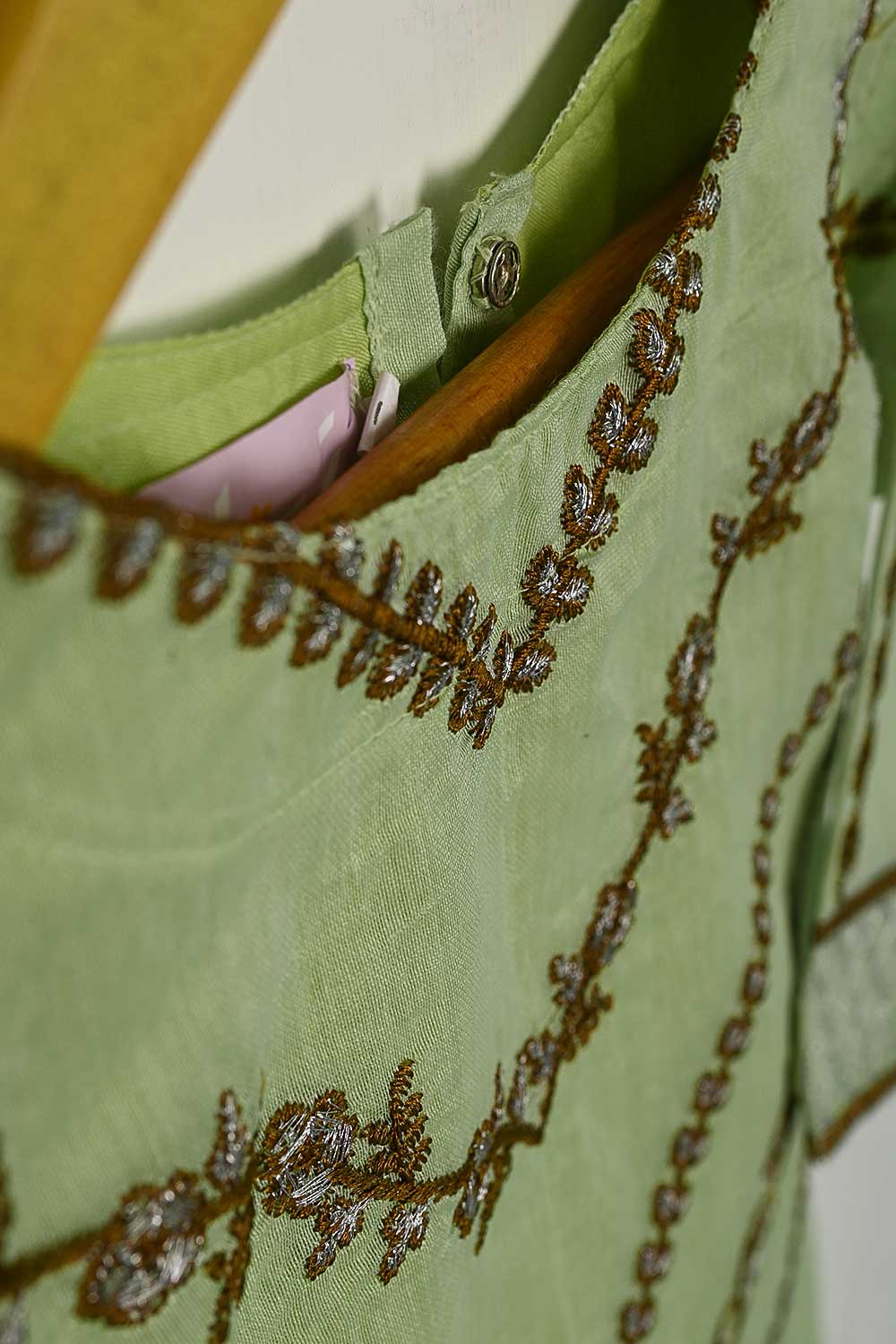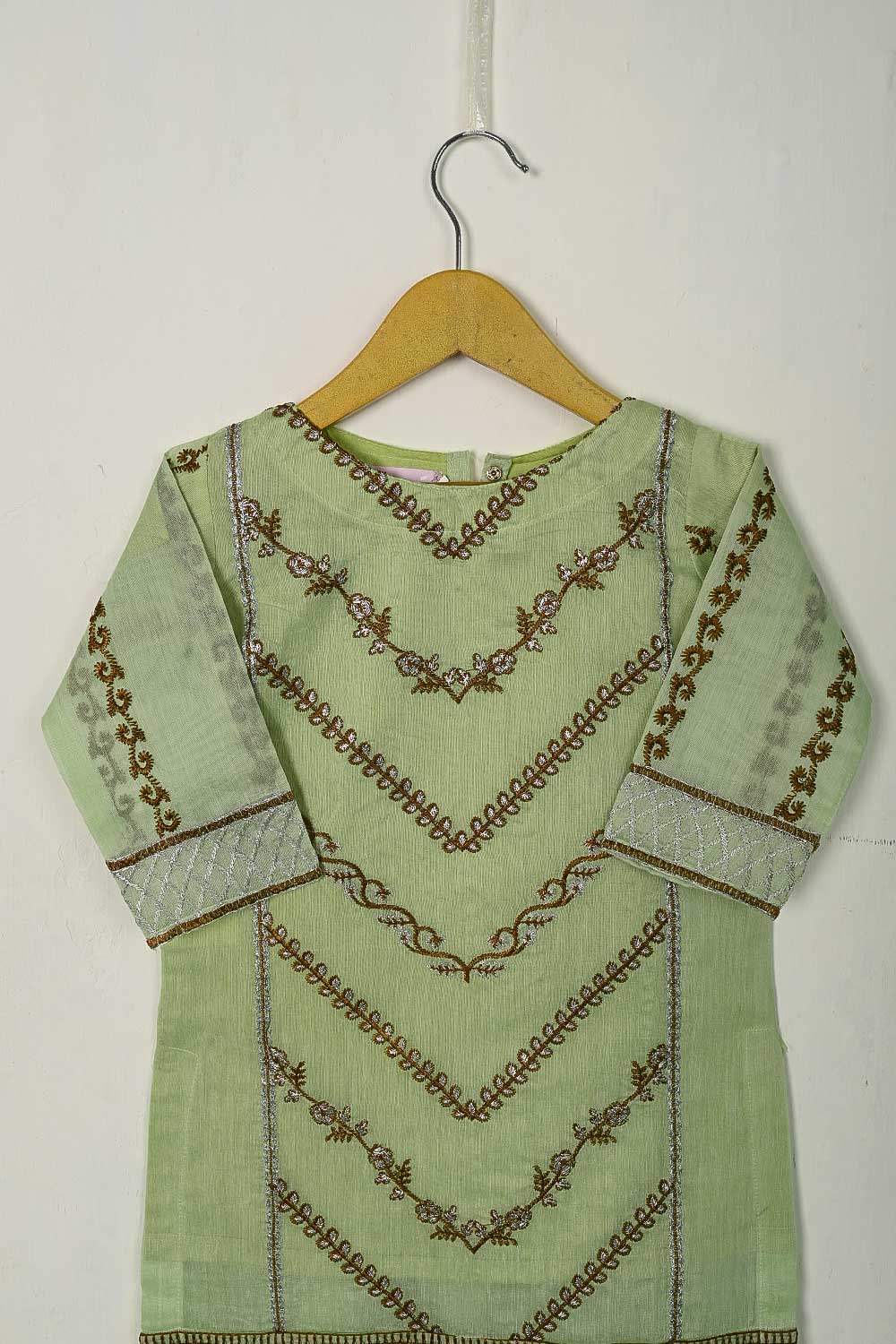 TKF-28-Pista - Kids 3Pc Paper Cotton Dress With Malai Trouser