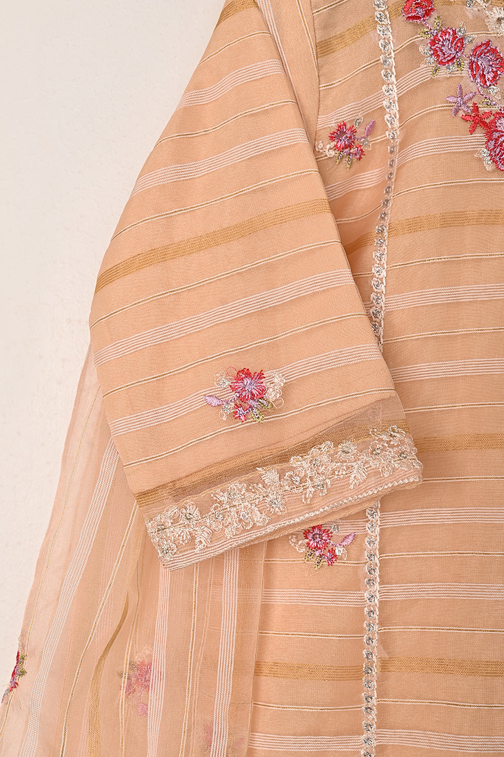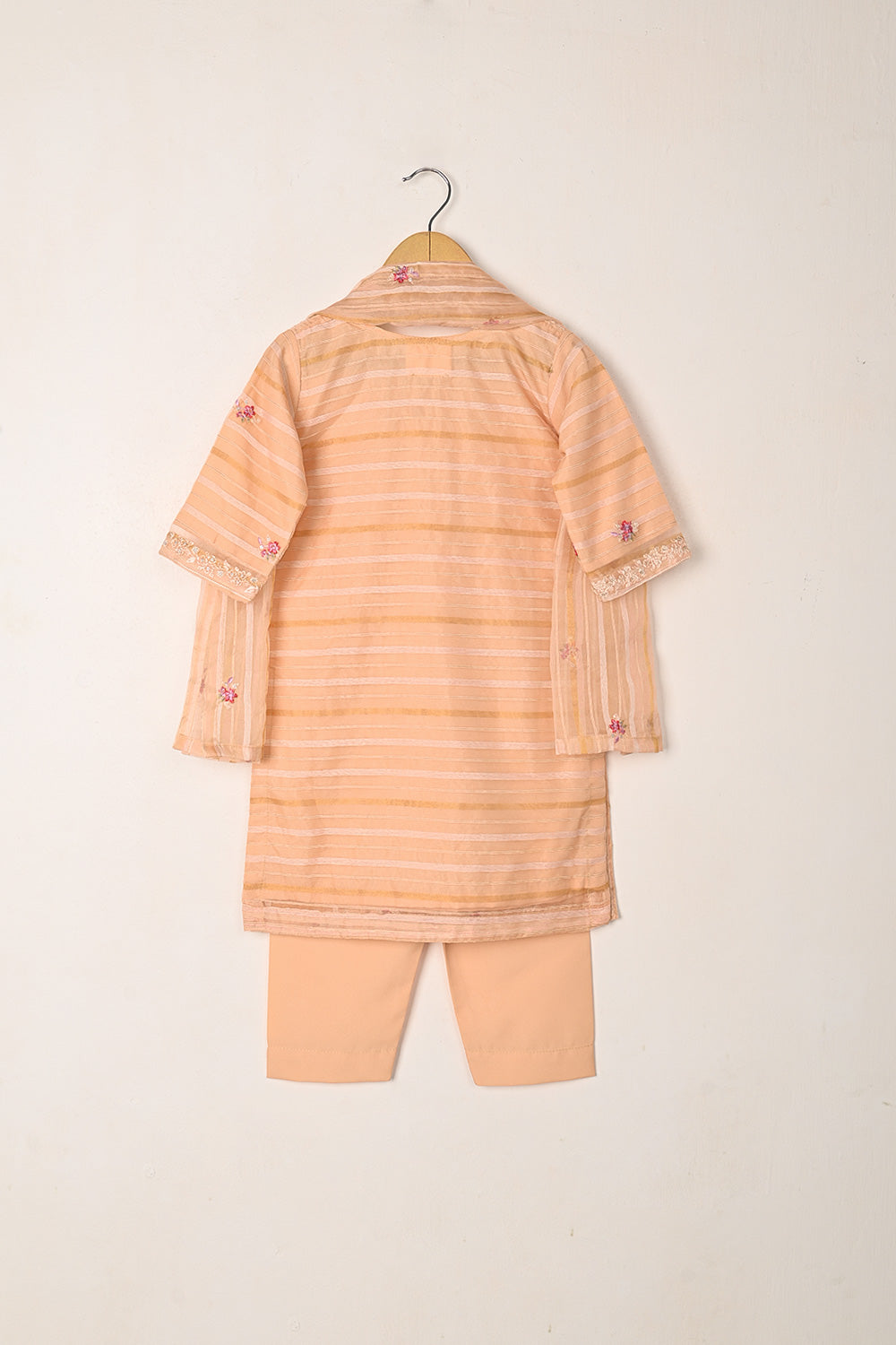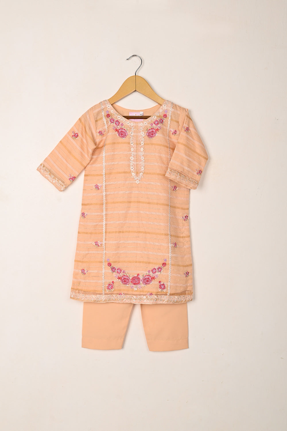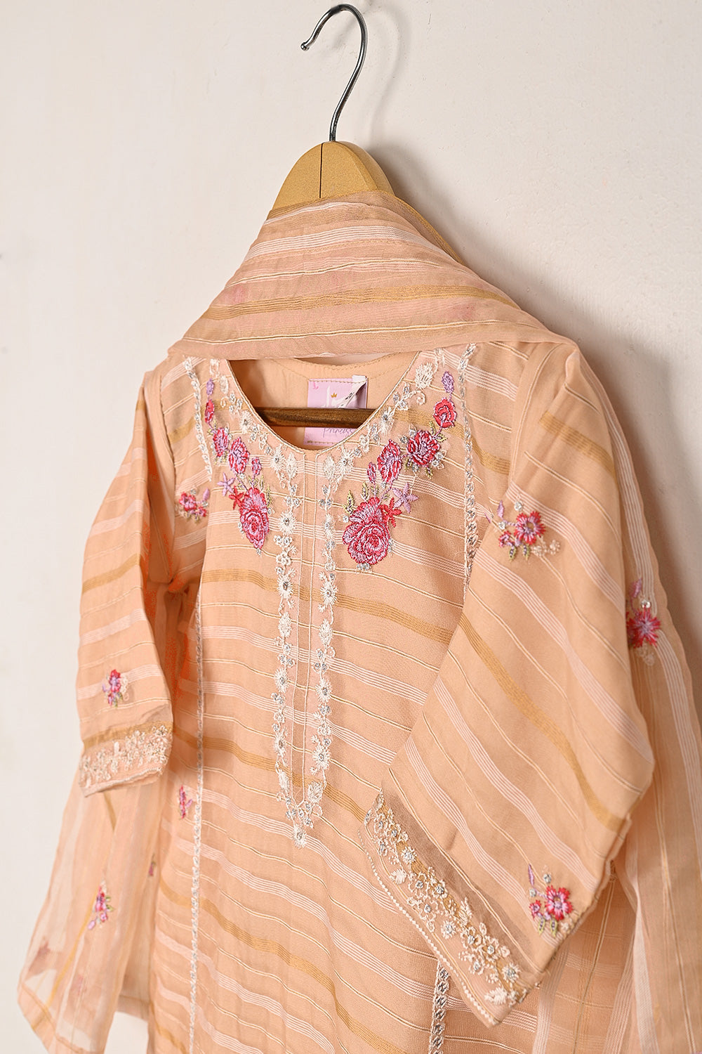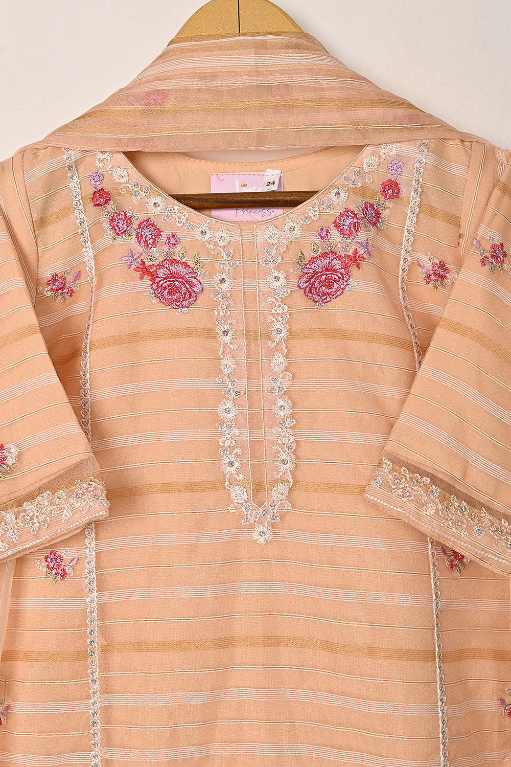 Kids 3Pc Ready to Wear Jacquard Organza Embroidered Dress