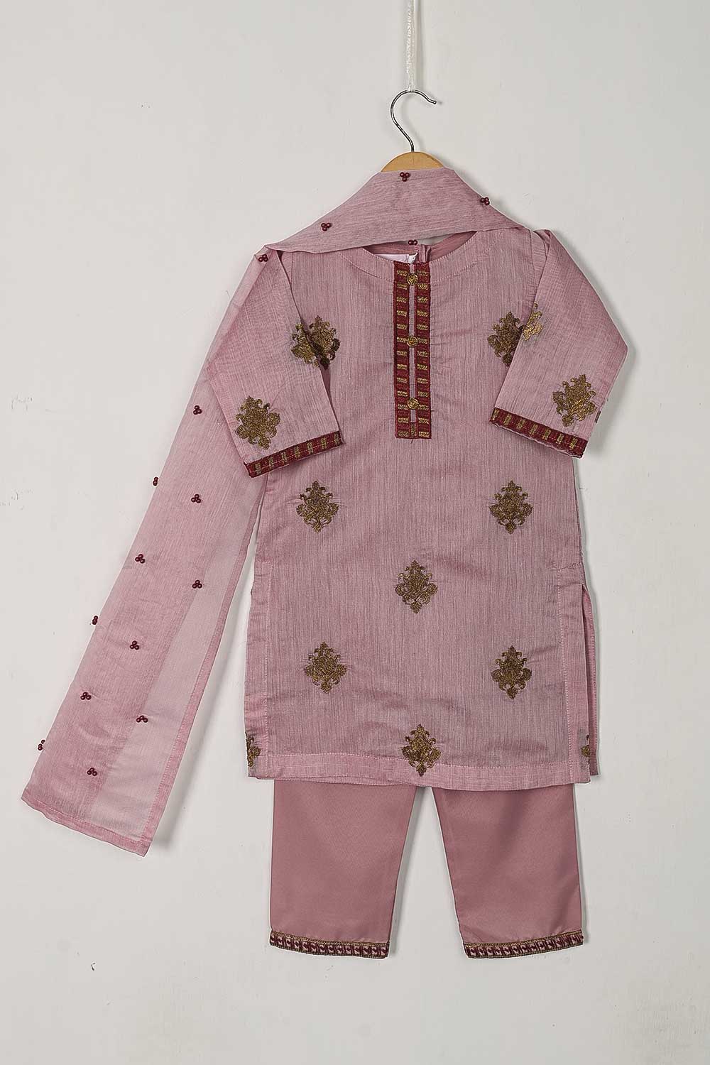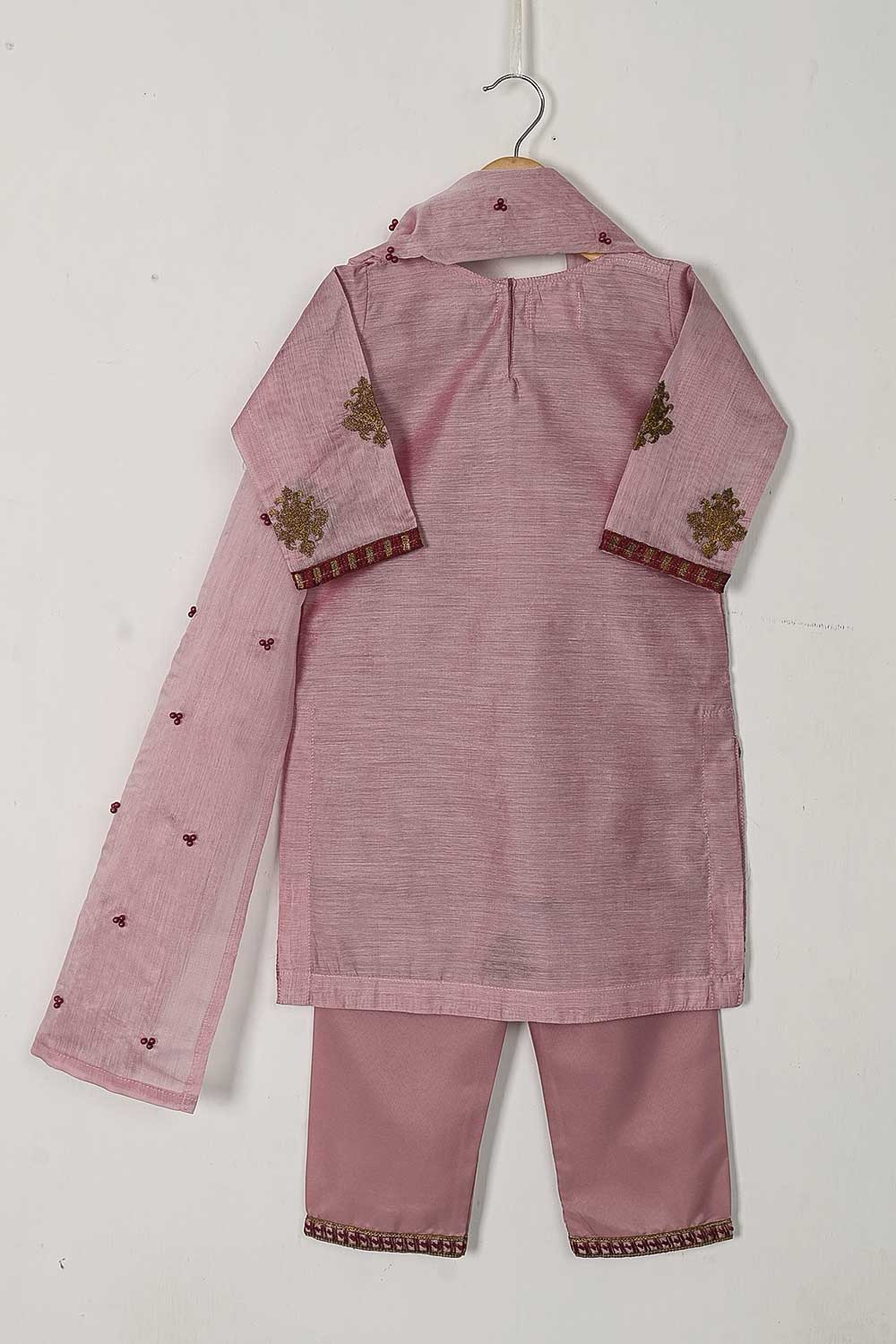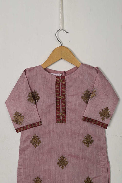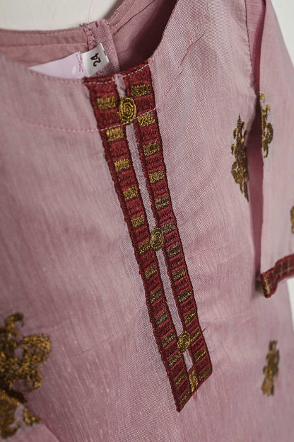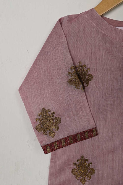 TKF-33-Pink - Kids 3Pc Paper Cotton Dress With Malai Trouser