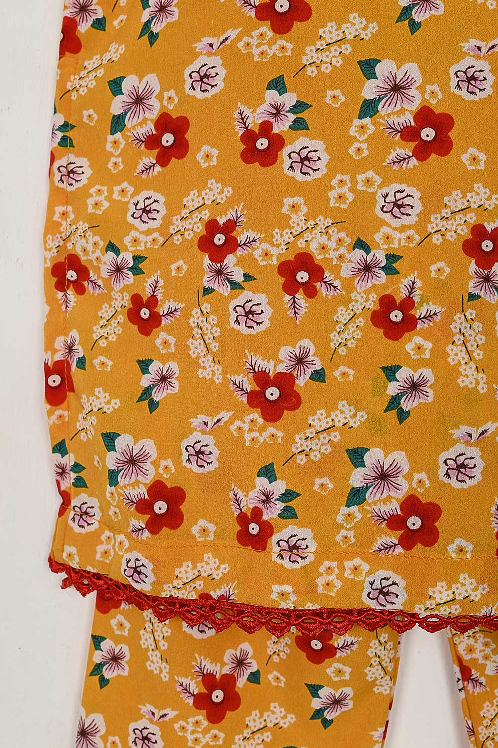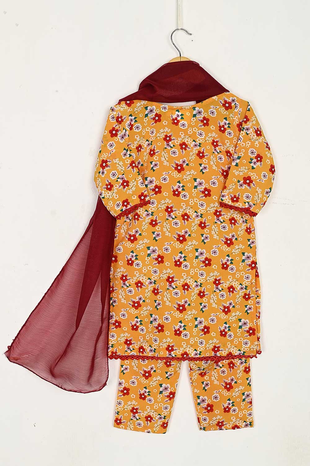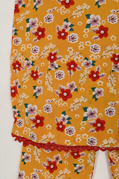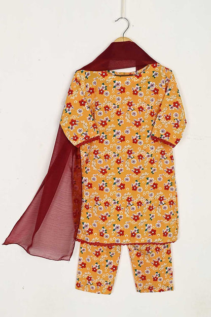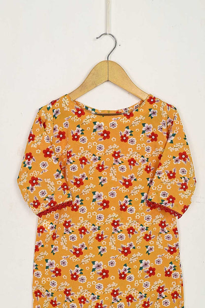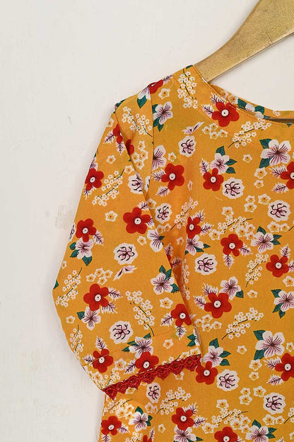 TKF-34-Yellow - Kids 3Pc Digital Printed Georgette Dress With Digital Printed Georgette
