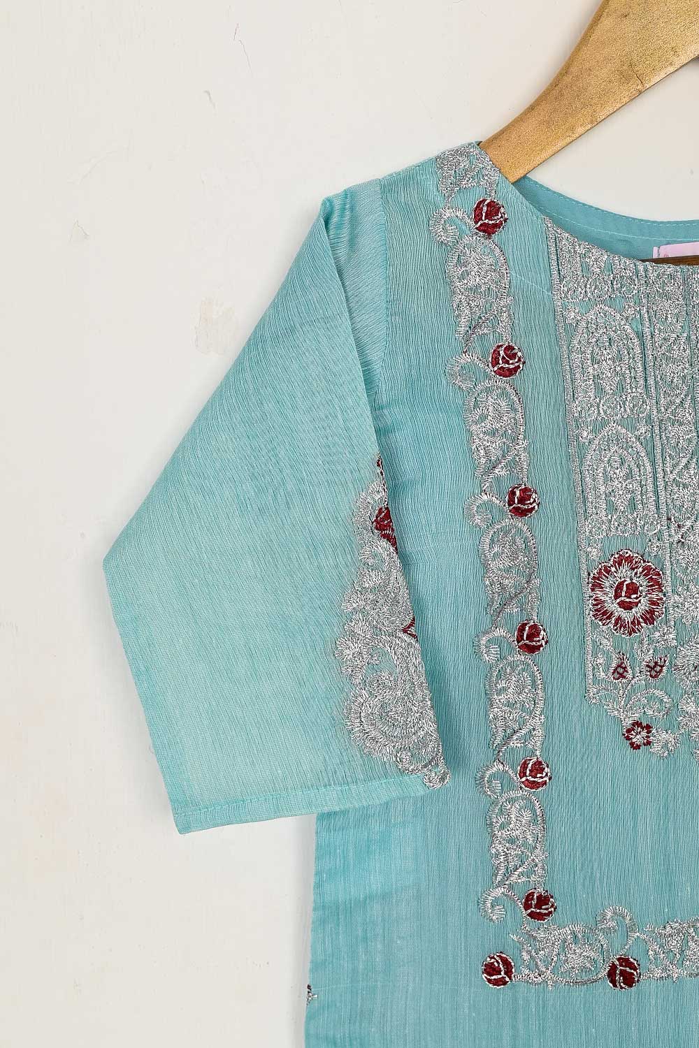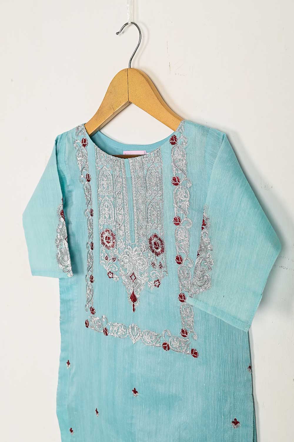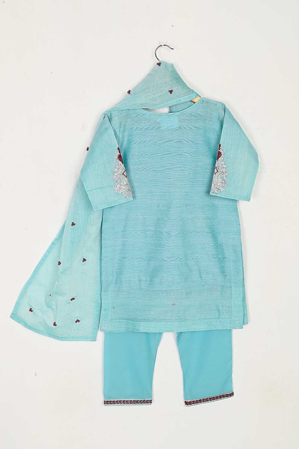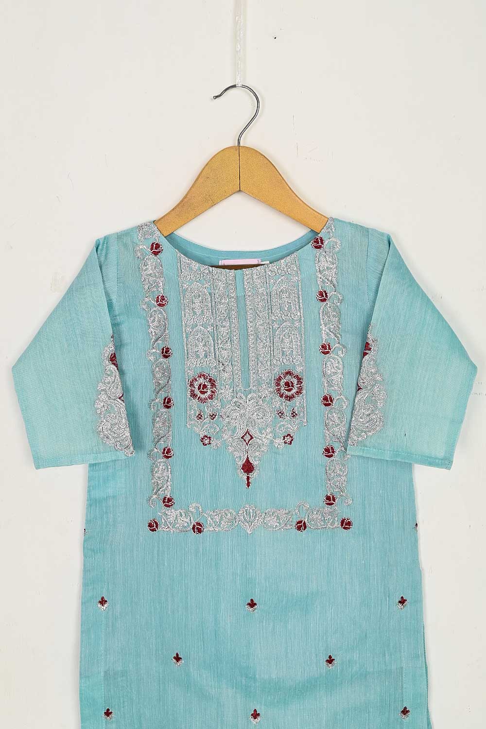 TKF-35-SkyBlue - Kids 3Pc Paper Cotton Dress With Malai Trouser