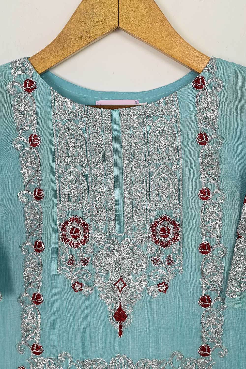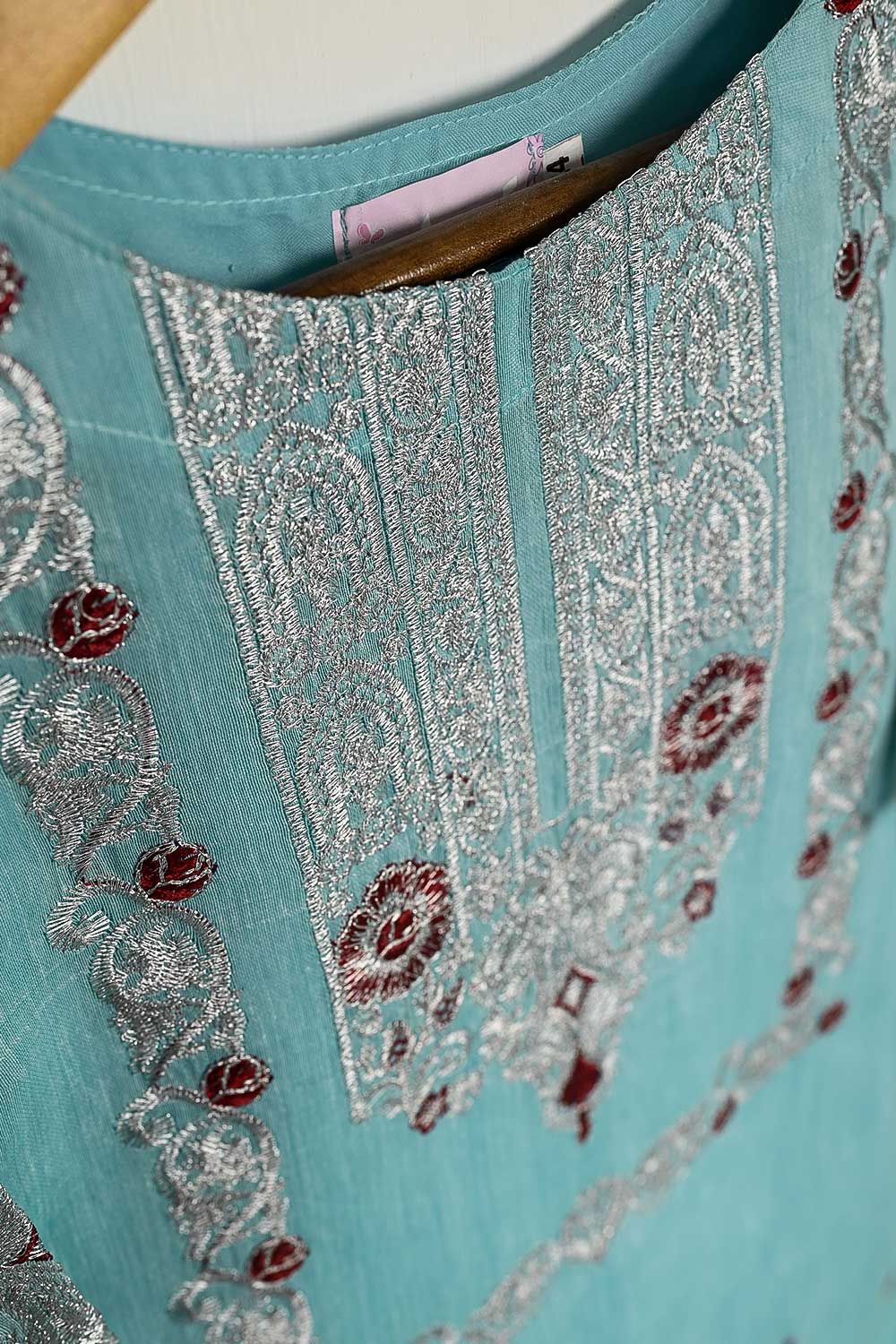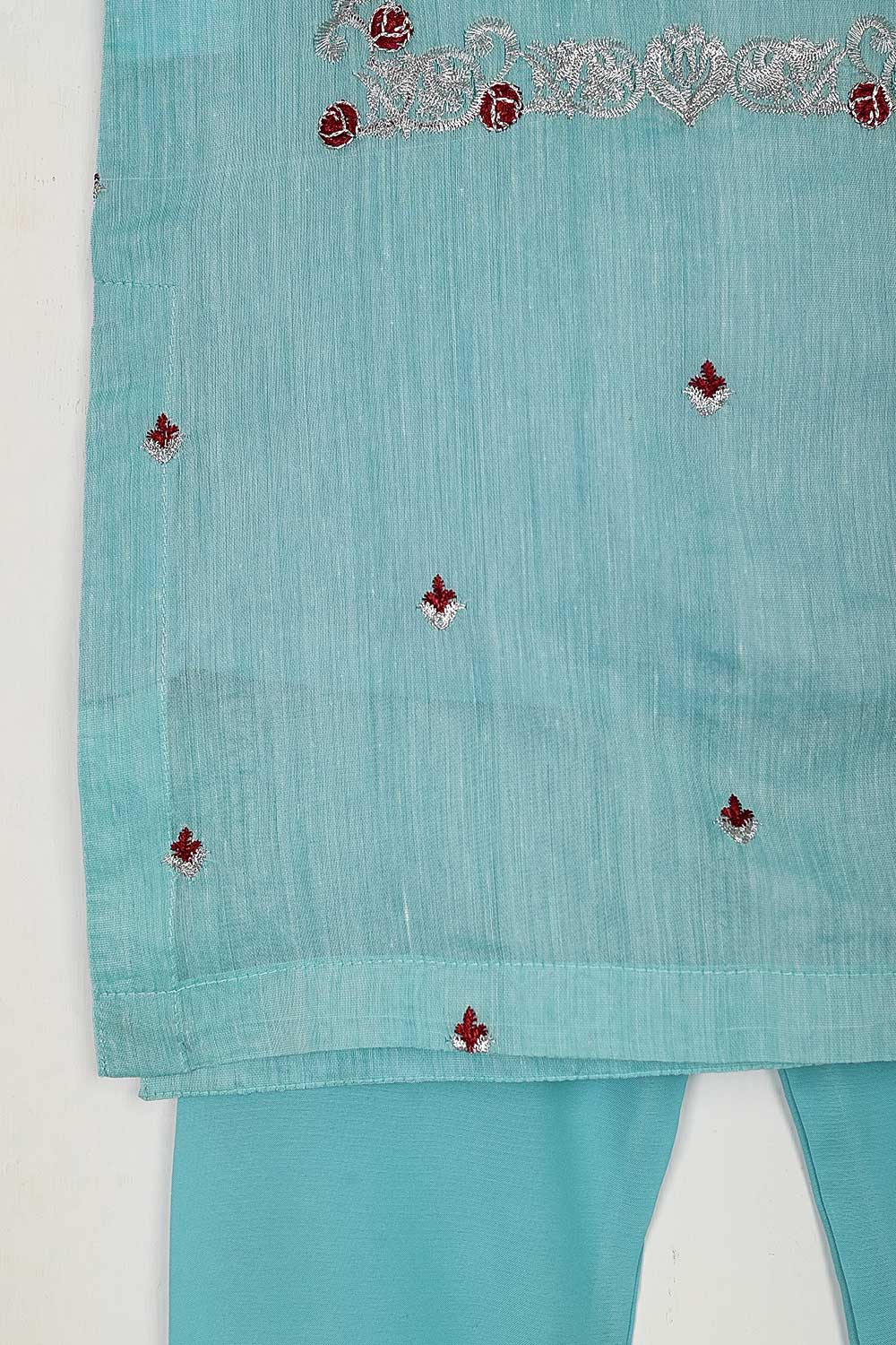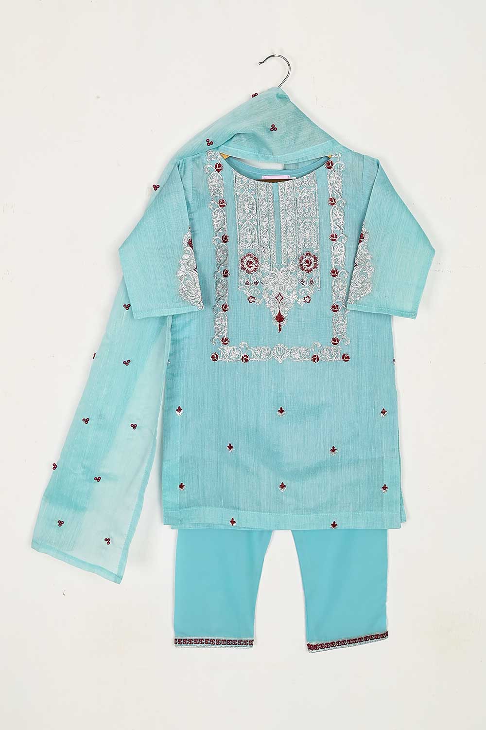 TKF-35-SkyBlue - Kids 3Pc Paper Cotton Dress With Malai Trouser