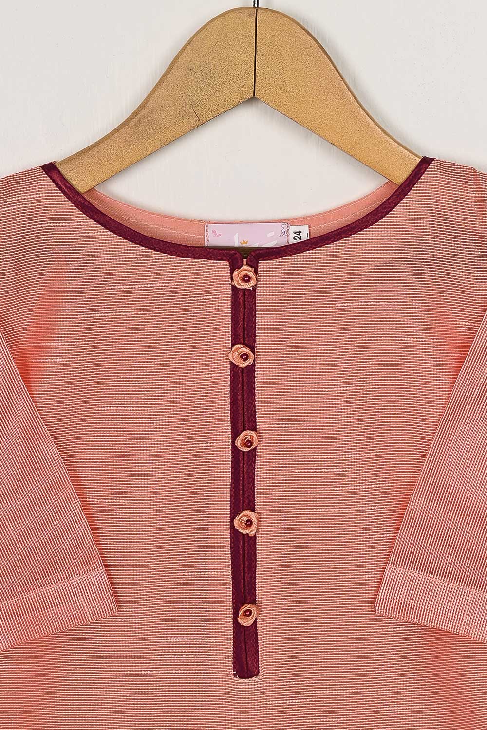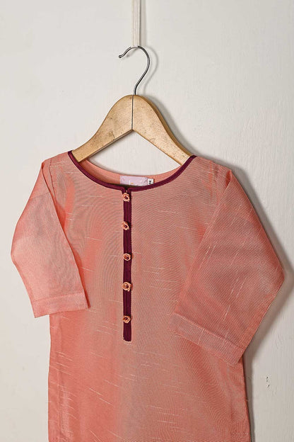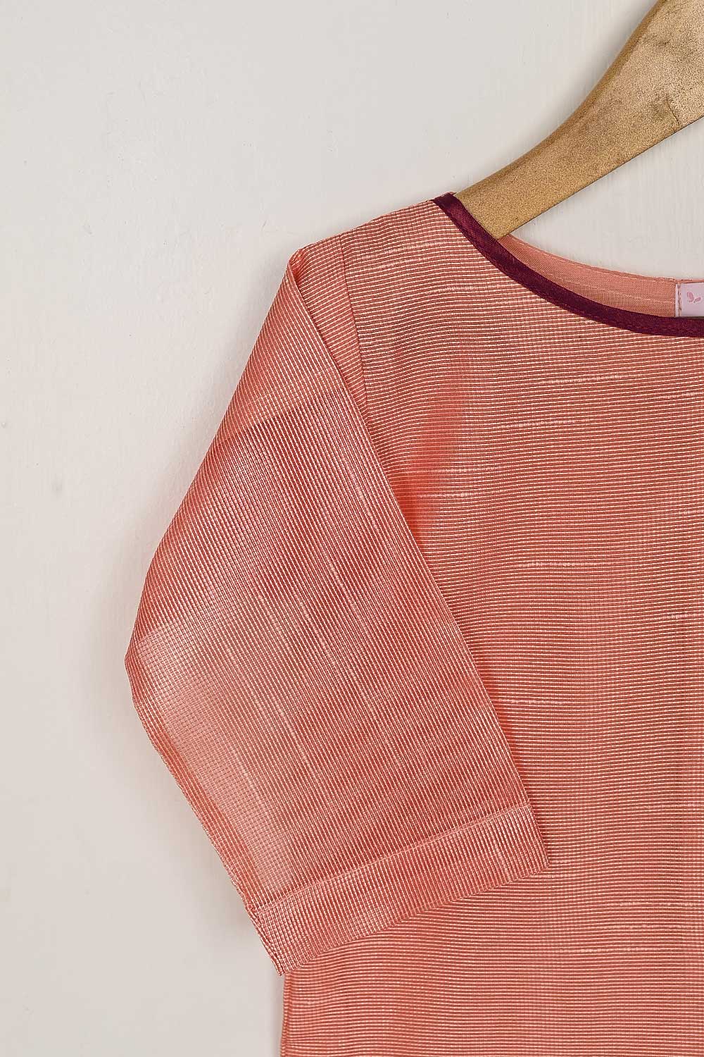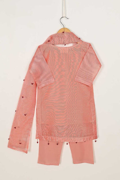 TKF-54-Peach - Kids 3Pc Javeria Net Dress With Malai Trouser Stitched