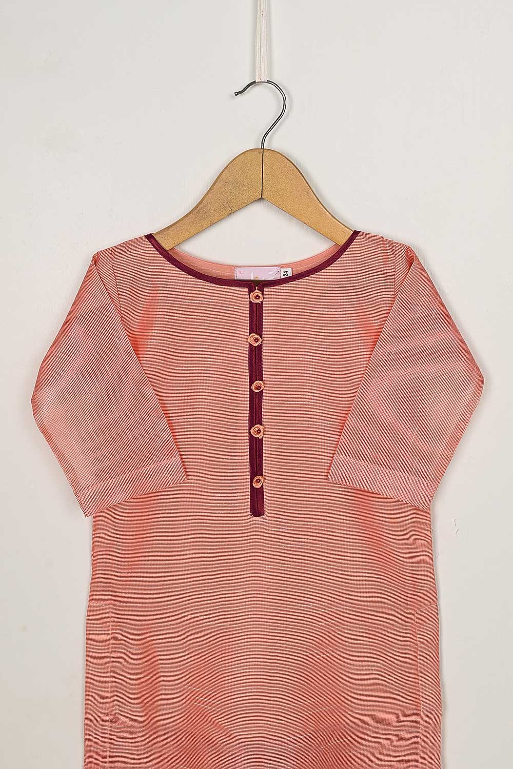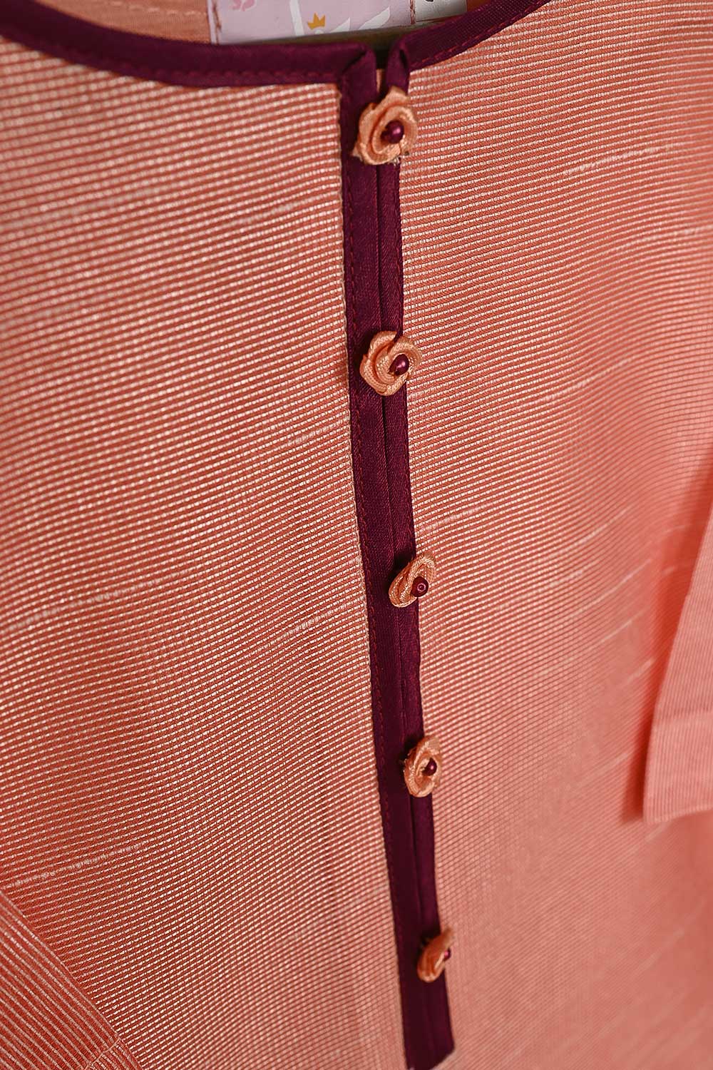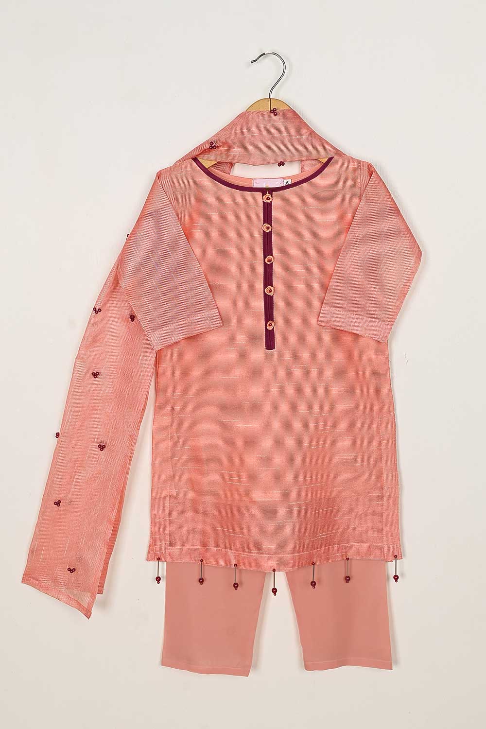 TKF-54-Peach - Kids 3Pc Javeria Net Dress With Malai Trouser Stitched