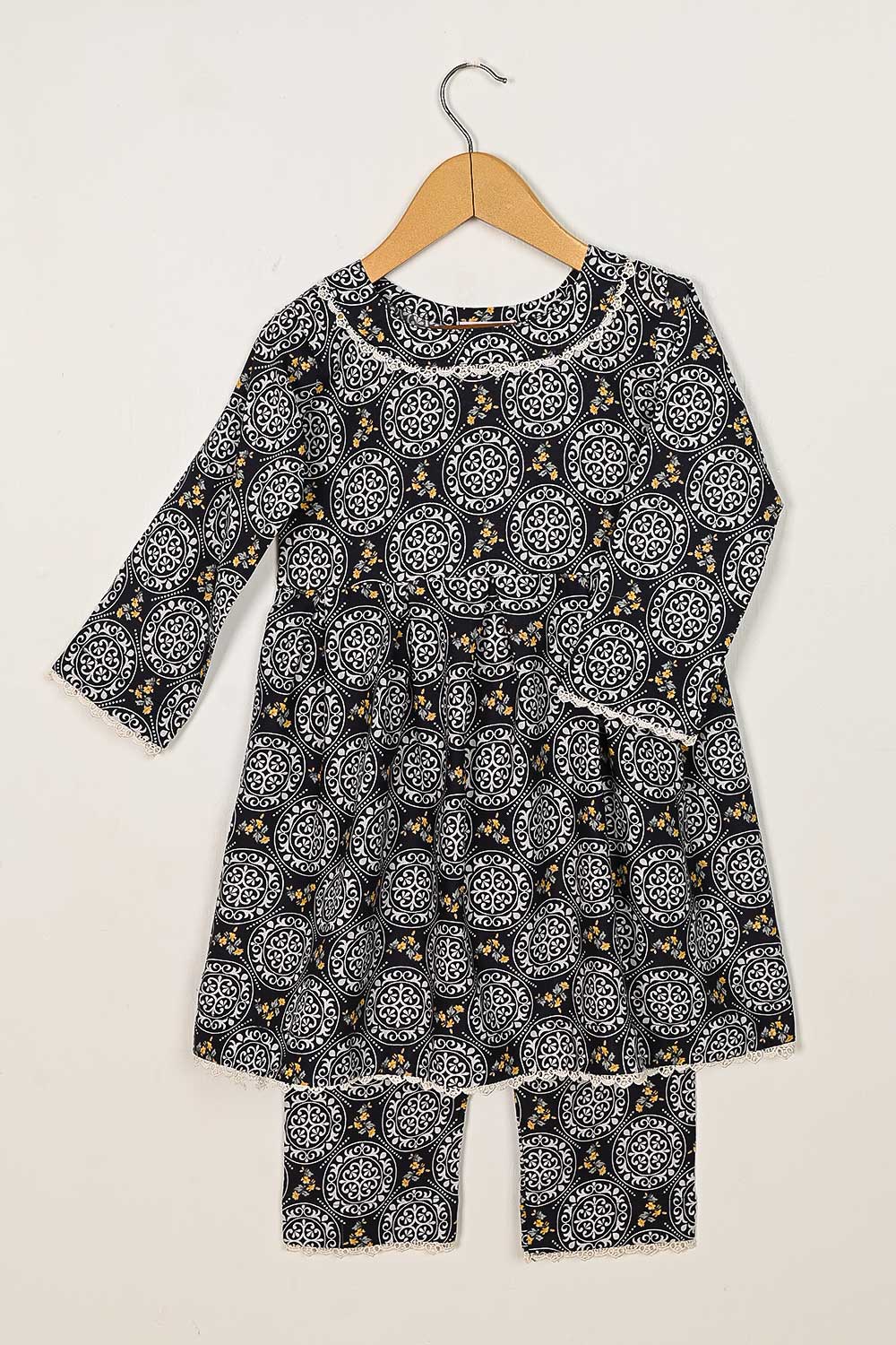 Kids 3Pc Digital Cotton Printed Frock With Digital Cotton Printed Trouser Stitched
