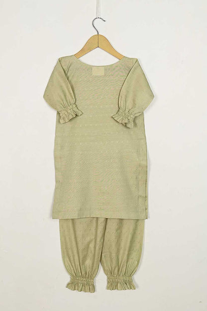 Kids 2Pc Pc Cotton Jacquard Dress With Pc Cotton Jacquard Trouser