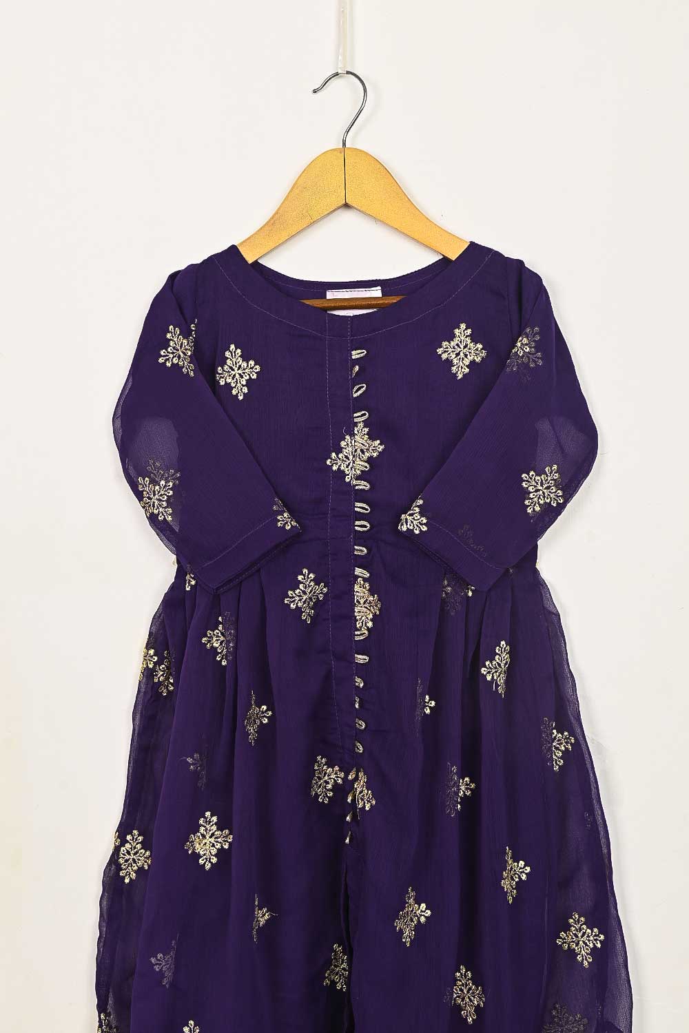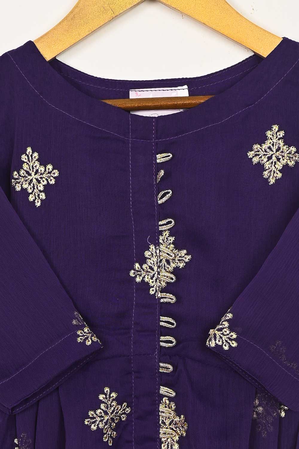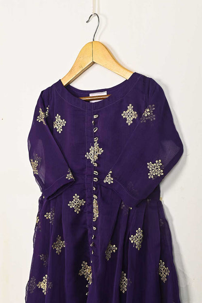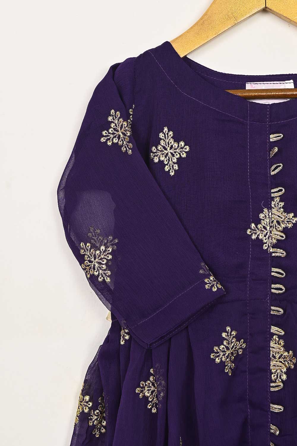 TKF-93-Purple - Kids 3Pc Chiffon Embroidered Frock