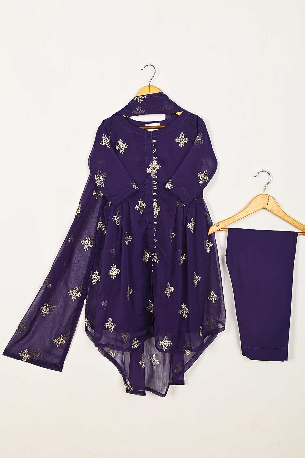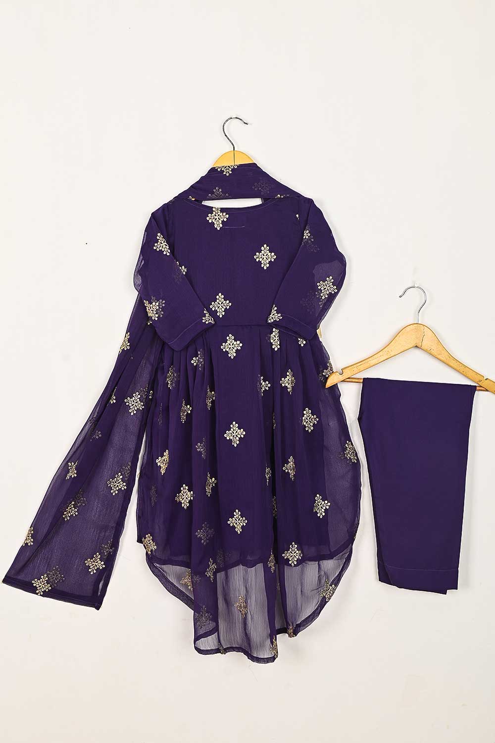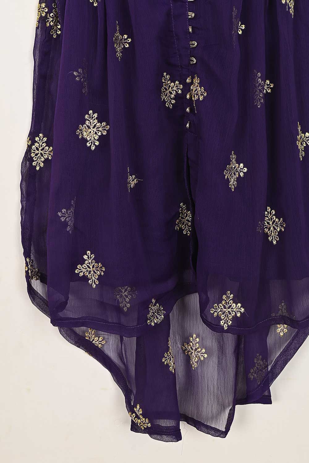 TKF-93-Purple - Kids 3Pc Chiffon Embroidered Frock
