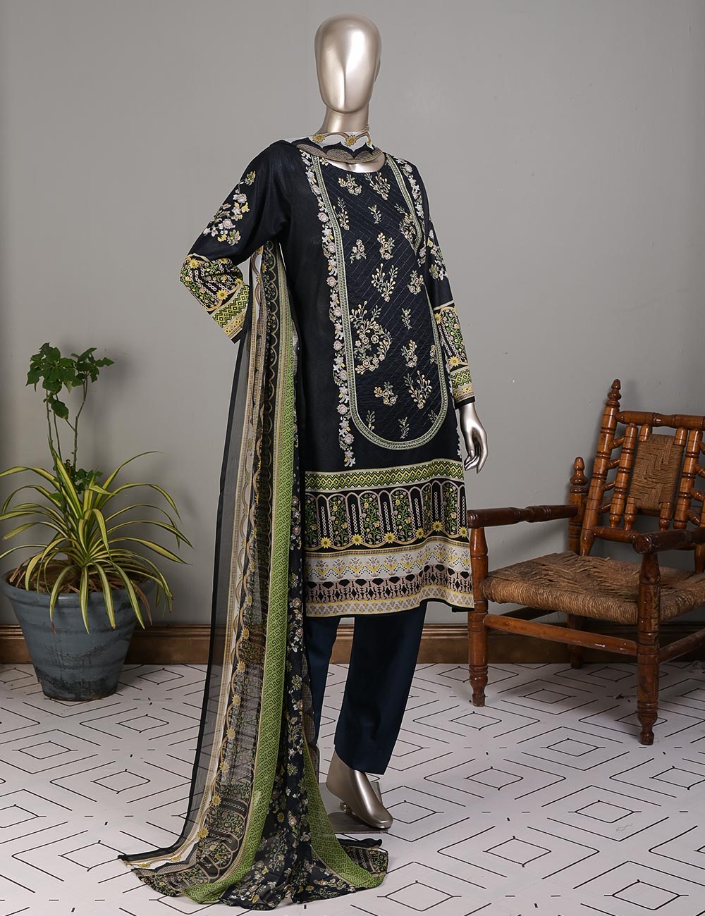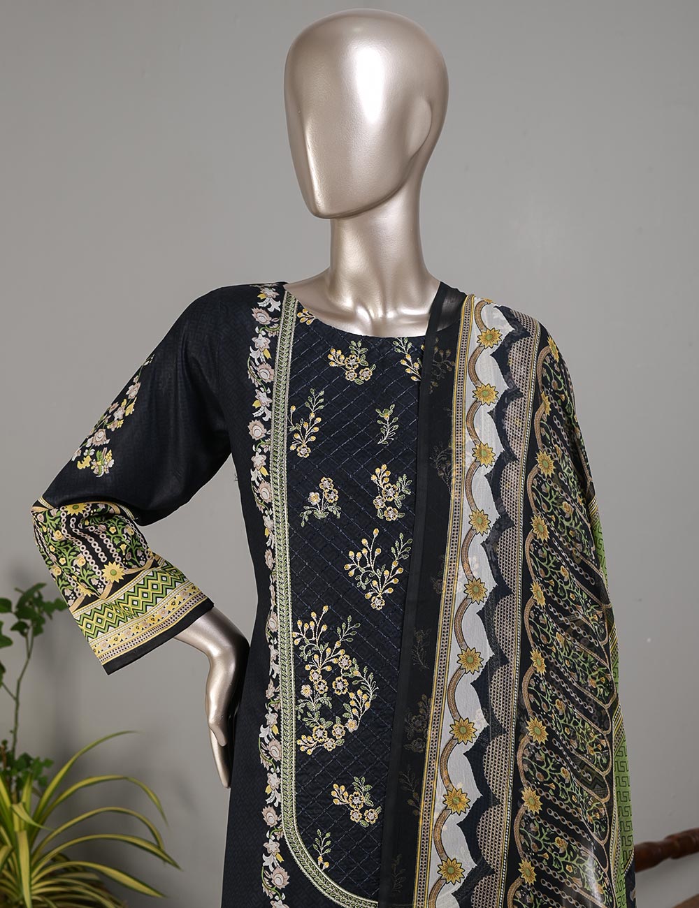 3 Pc Unstitched Embroidered Lawn Dress with Chiffon Printed Dupatta
