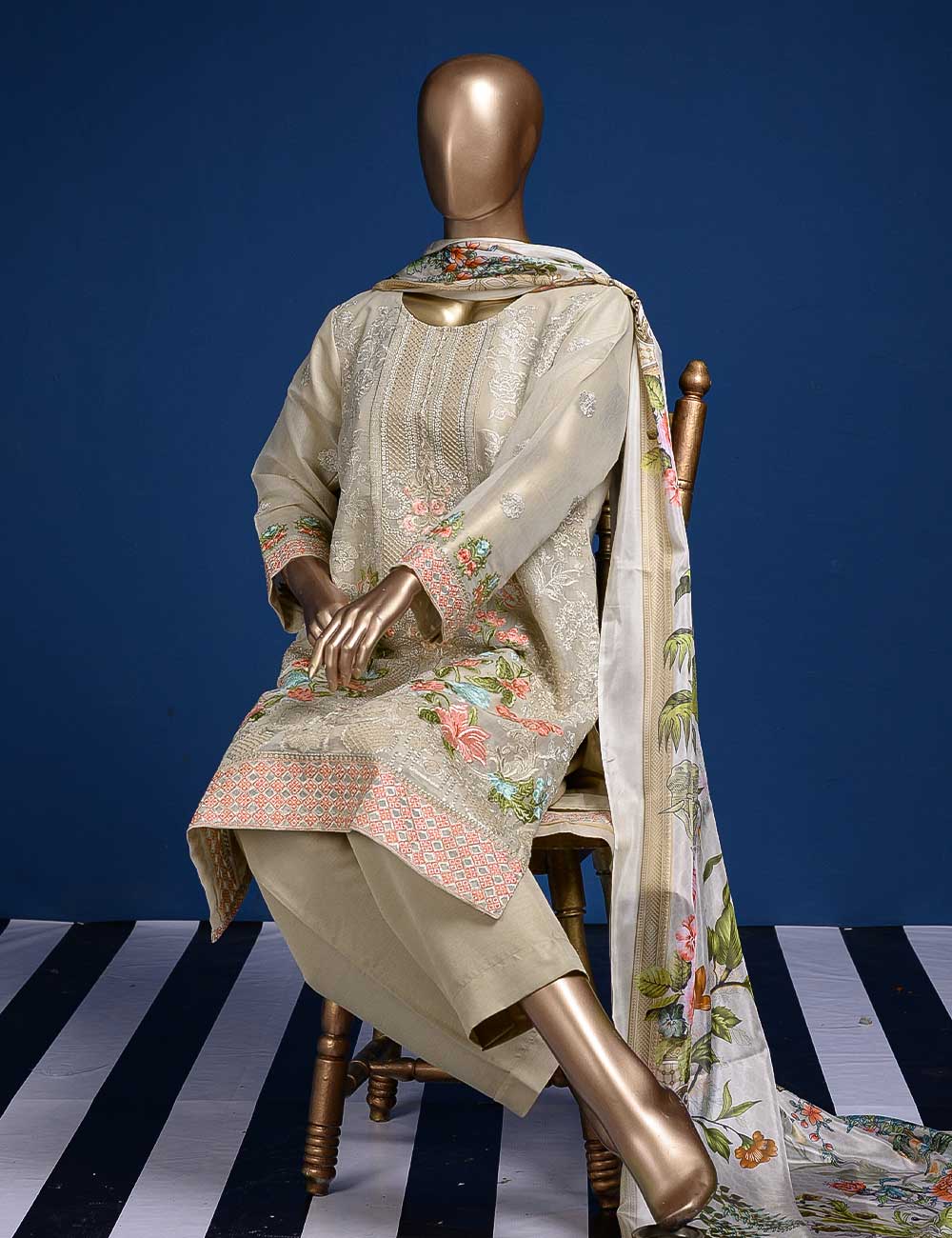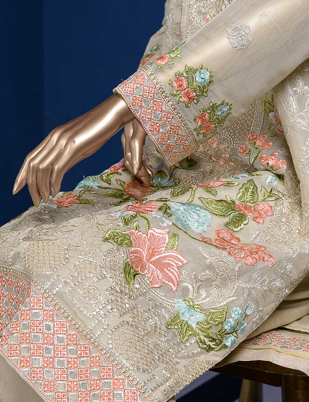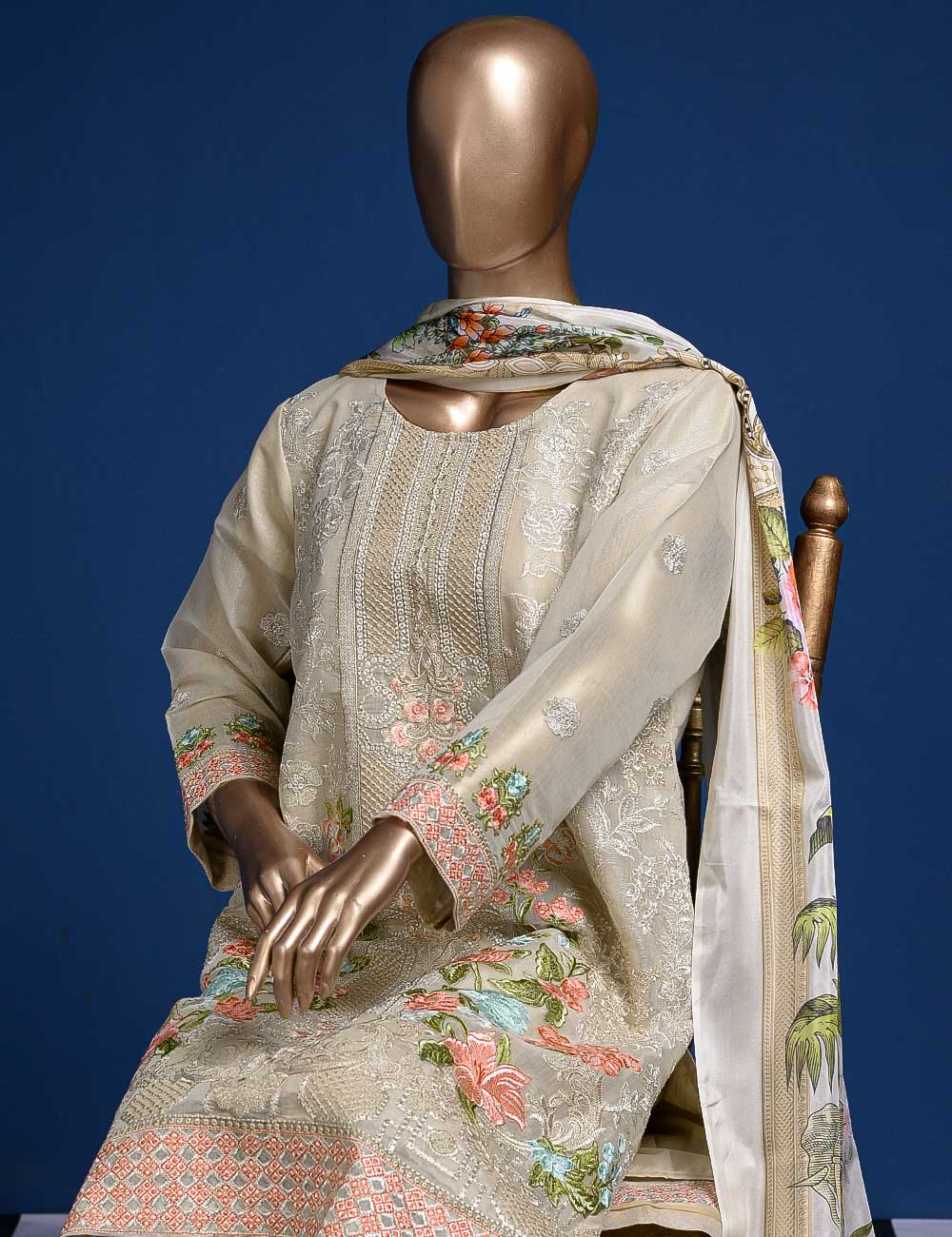 • Unsitched Khaddi Lawn Embroidered Shirt