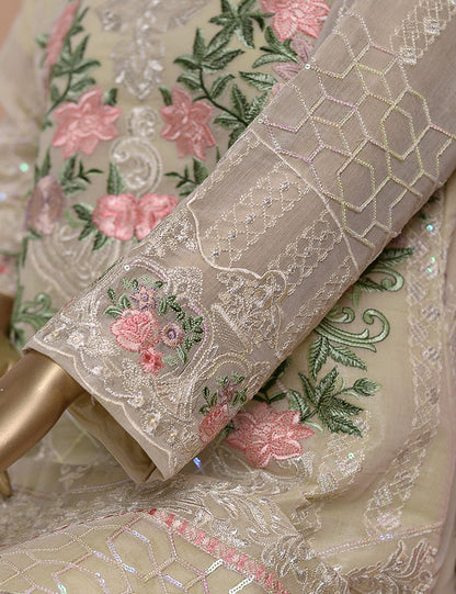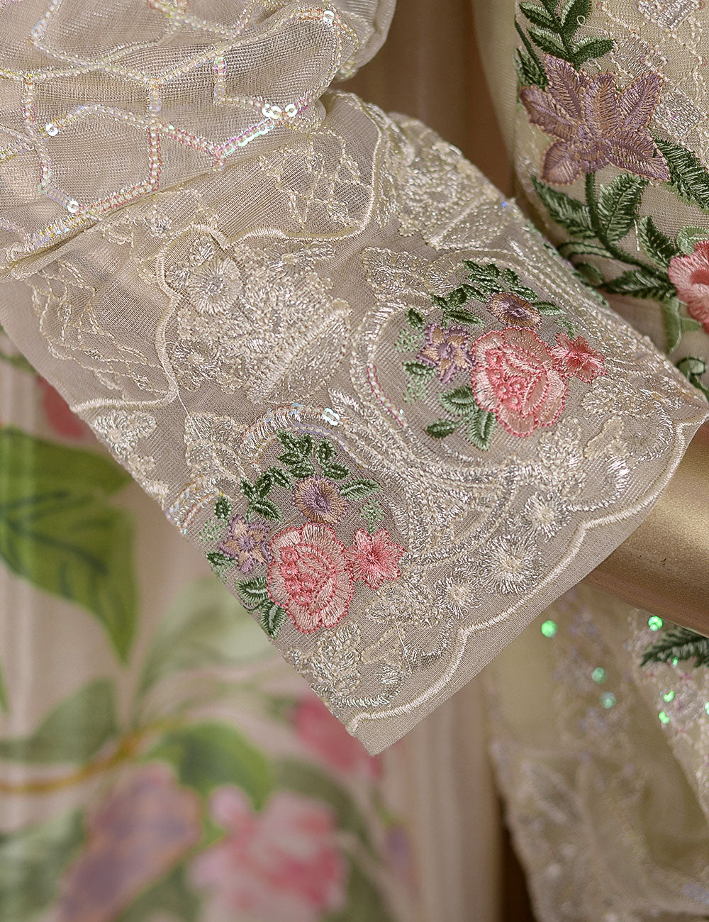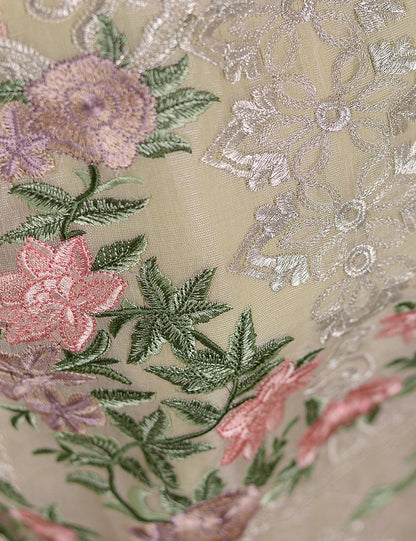 An assemblage of soft pastel colors, enhancing exquisitely crafted embroidered motifs with gorgeous appeal.