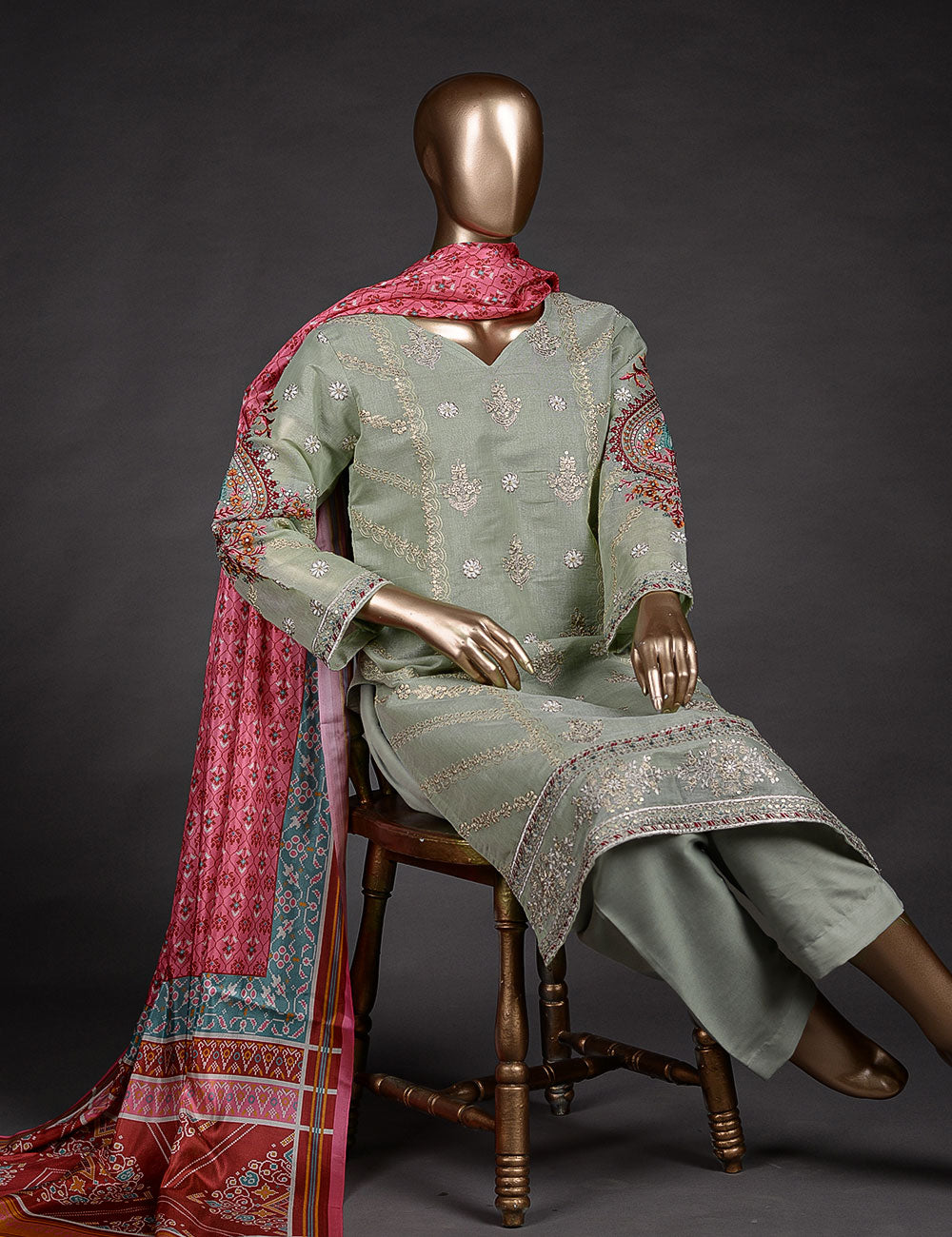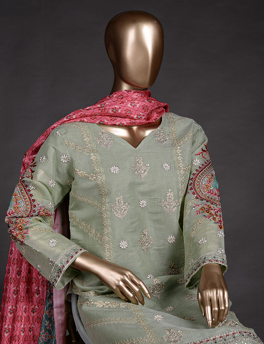 • Unsitched Khaddi Lawn Embroidered Shirt