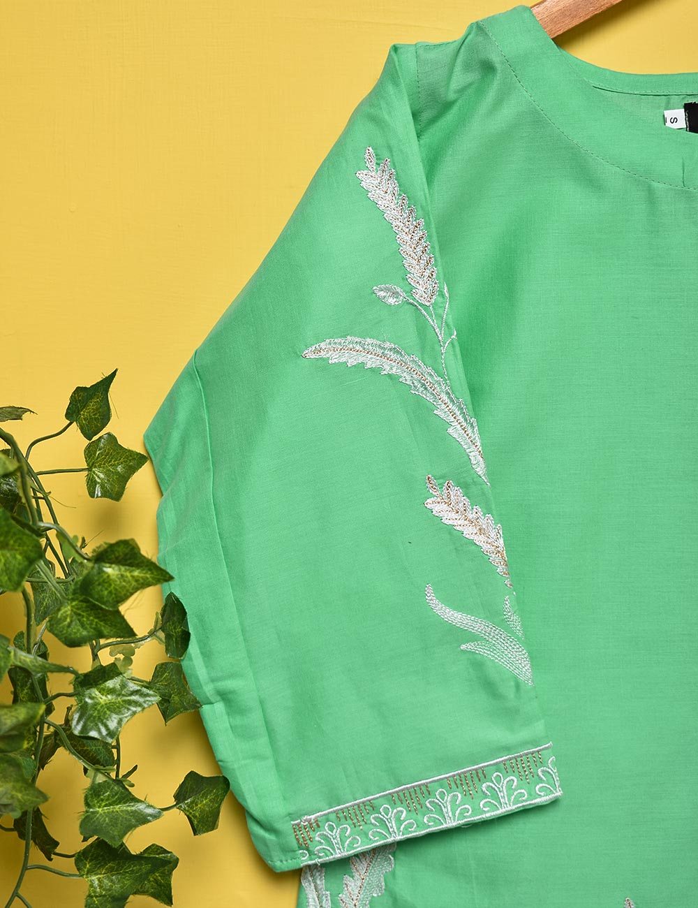 Cotton Embroidered Stitched Kurti - Dazzling Freesia (TS-005A-LightGreen)