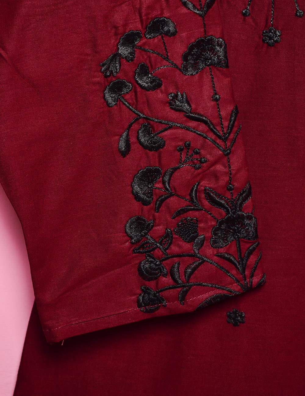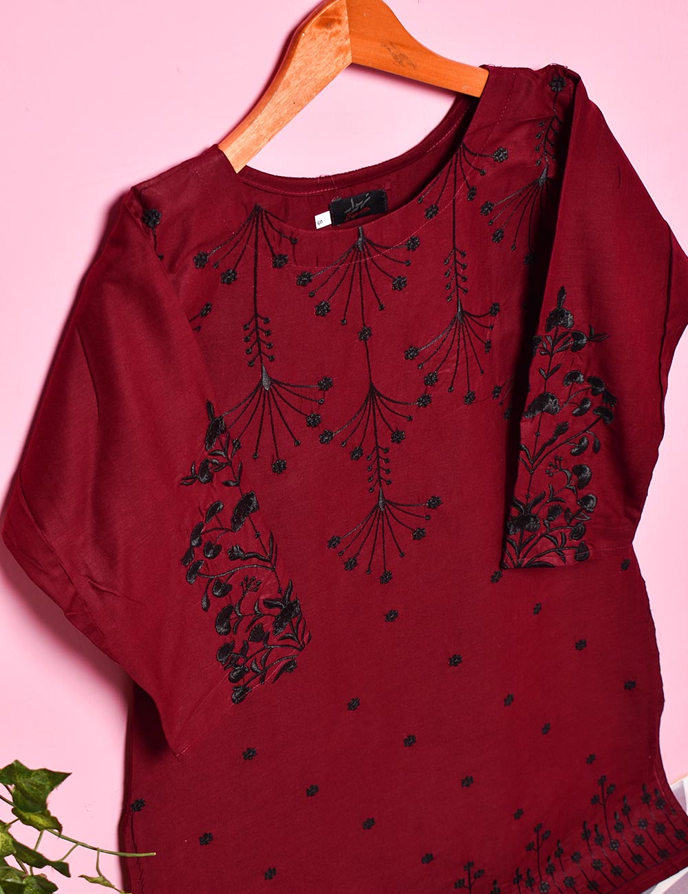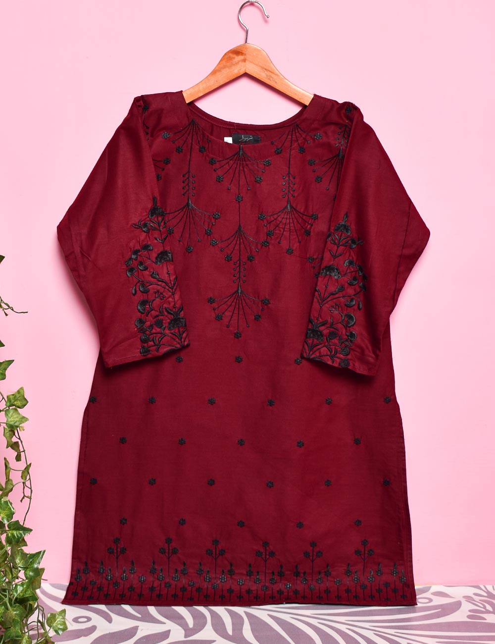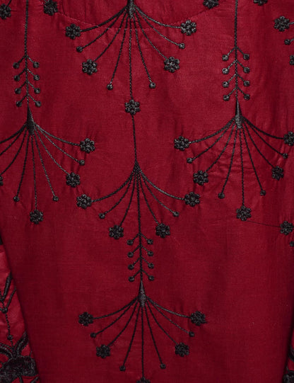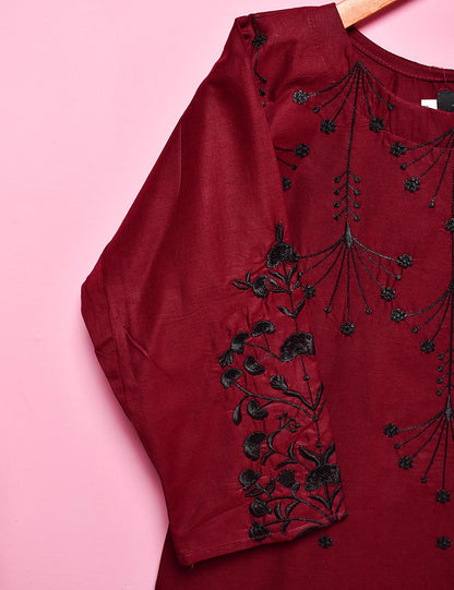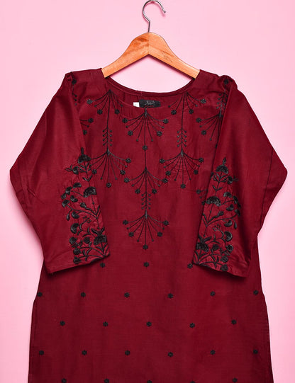 Cotton Embroidered Stitched Kurti - Luminous Galaxy (TS-017A-Maroon)