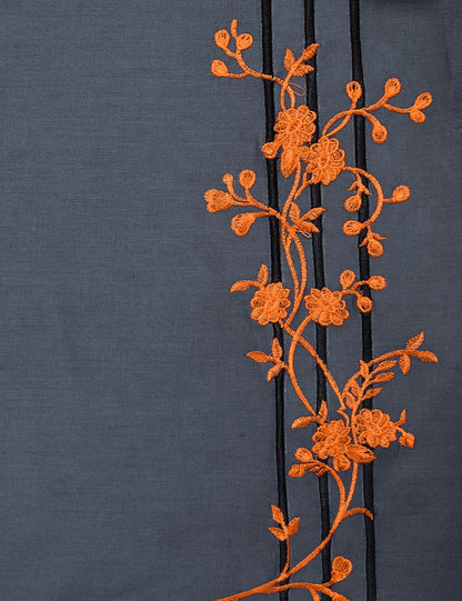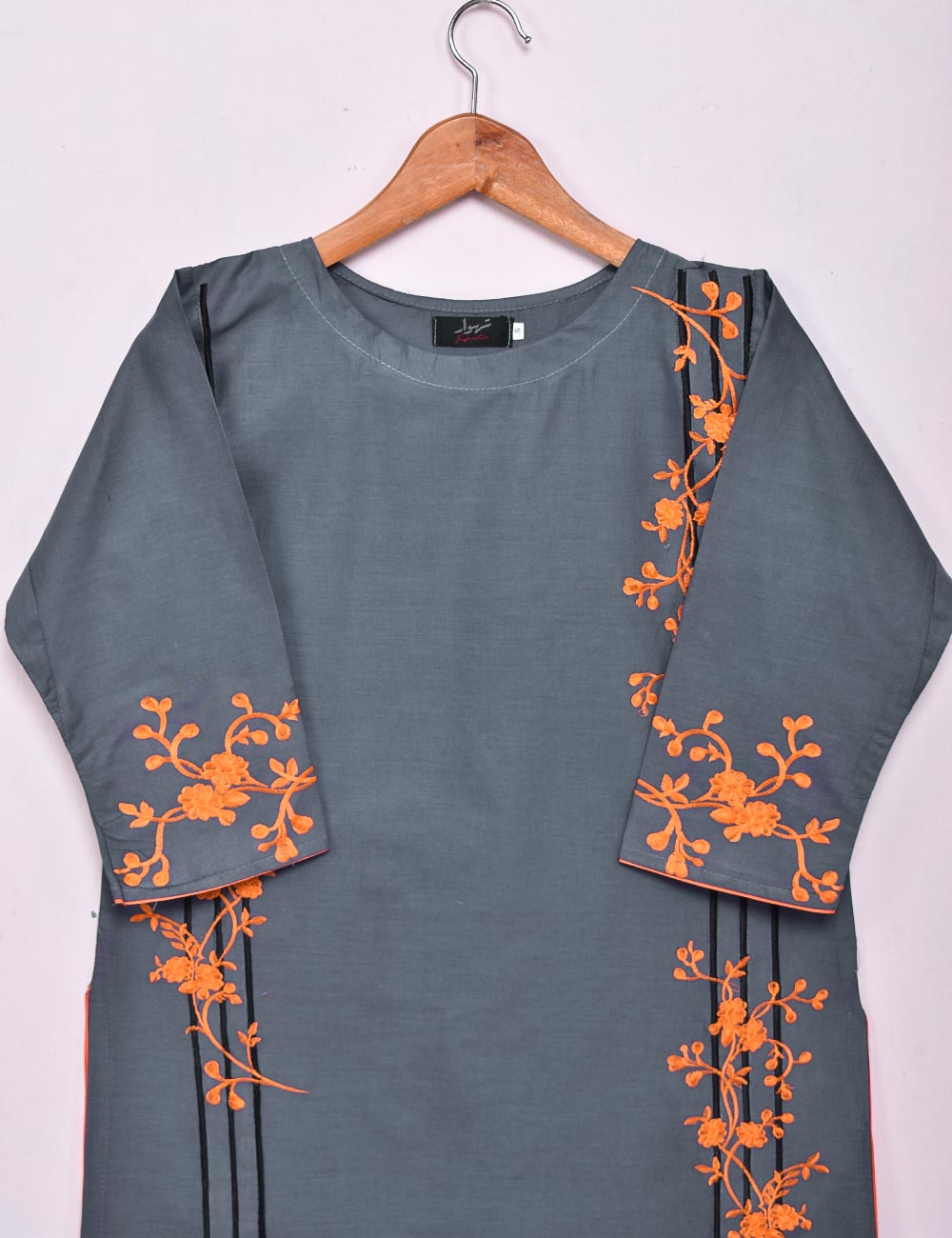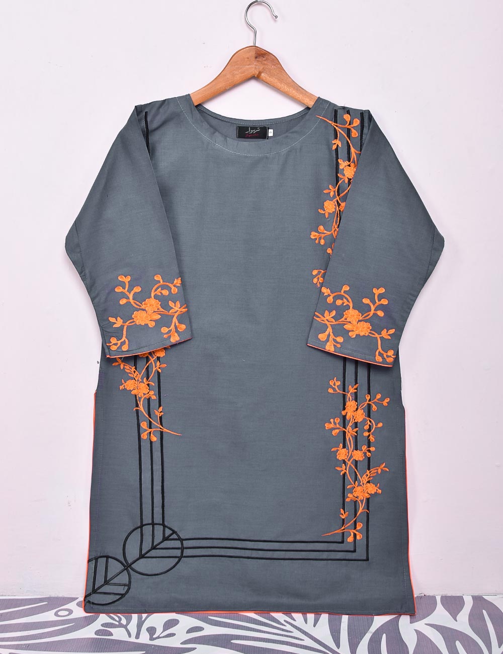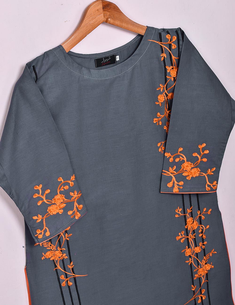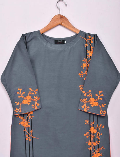 Cotton Embroidered Stitched Kurti - Splish Splash (TS-037B-GreyishBlue)
