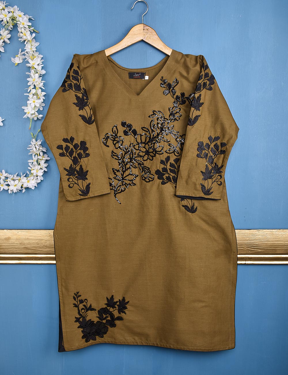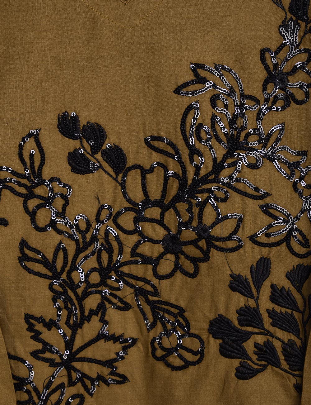 Cotton Embroidered Stitched Kurti - Euphonium (TS-053A-Brown)