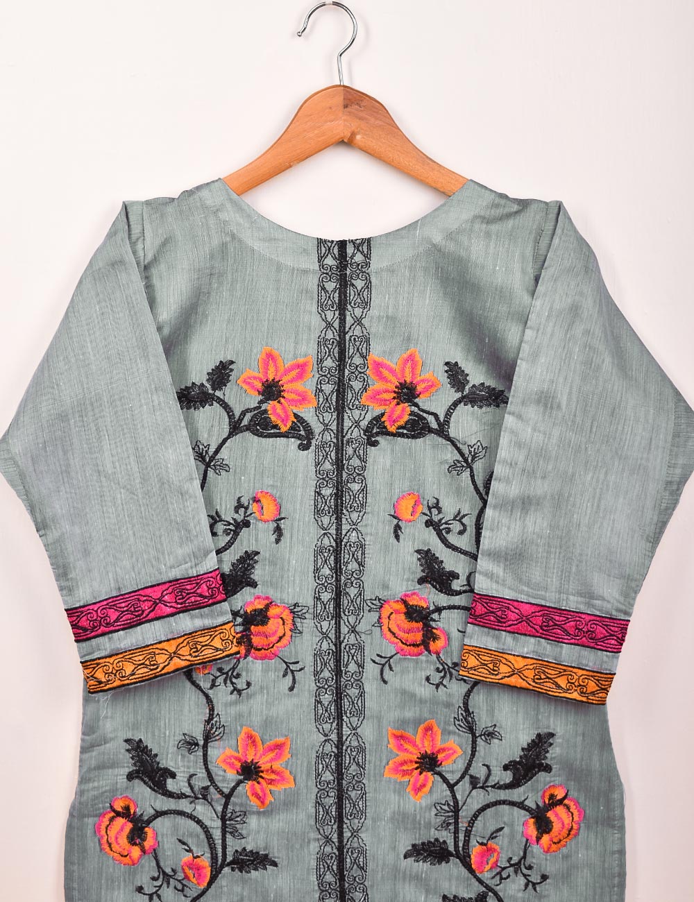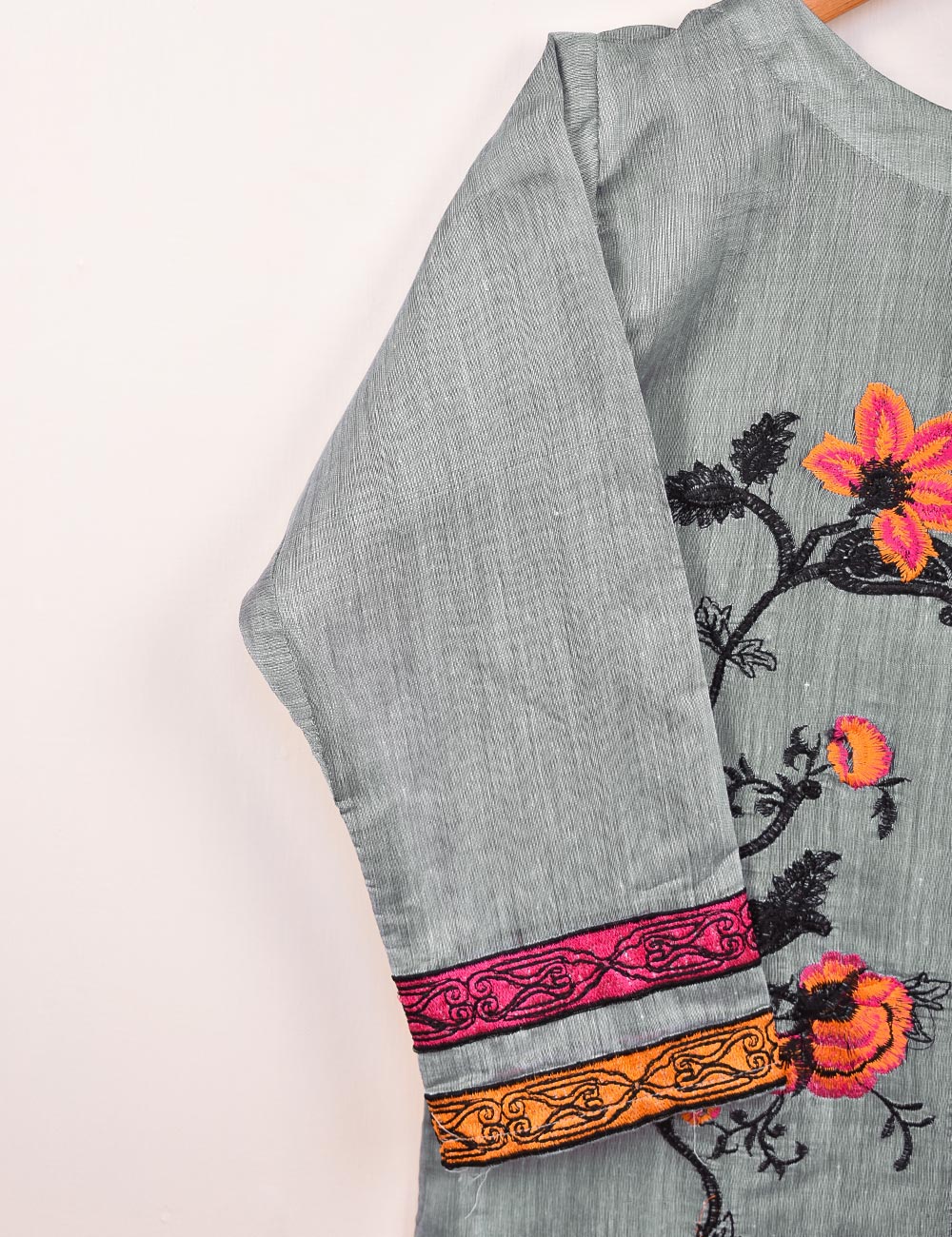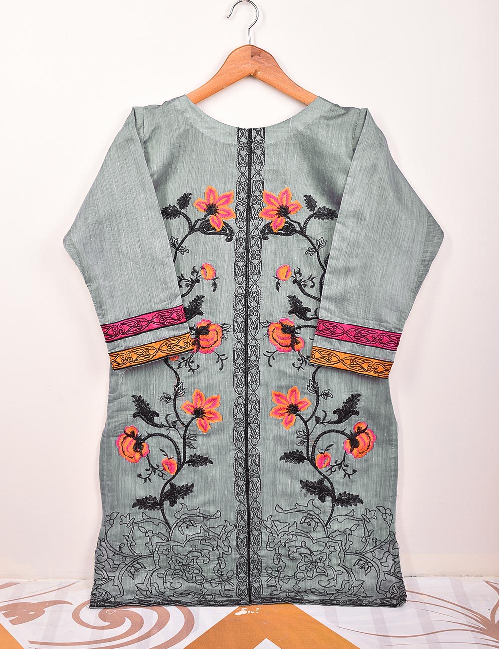 Paper Cotton Embroidered Stitched Kurti - (TS-063B-Grey)