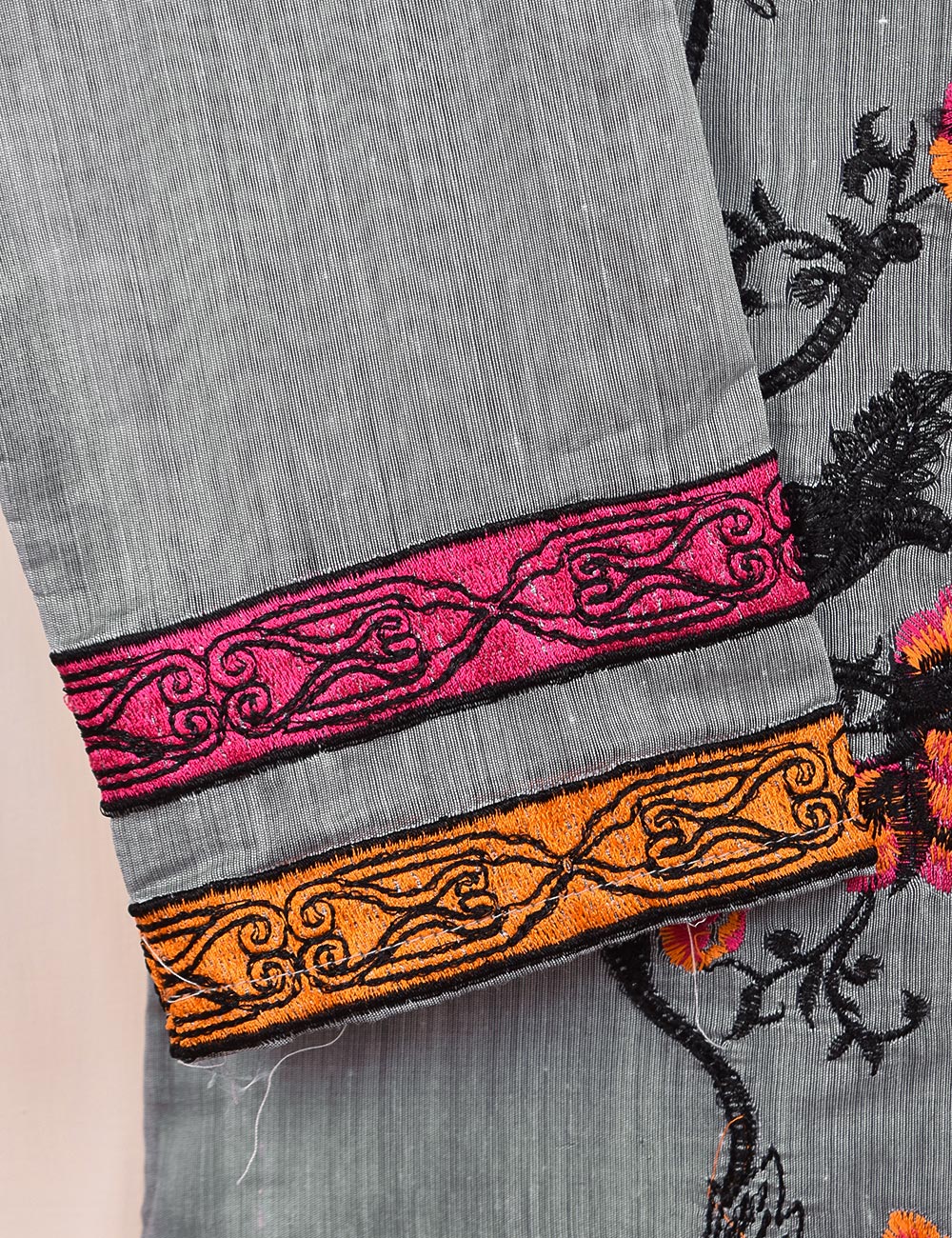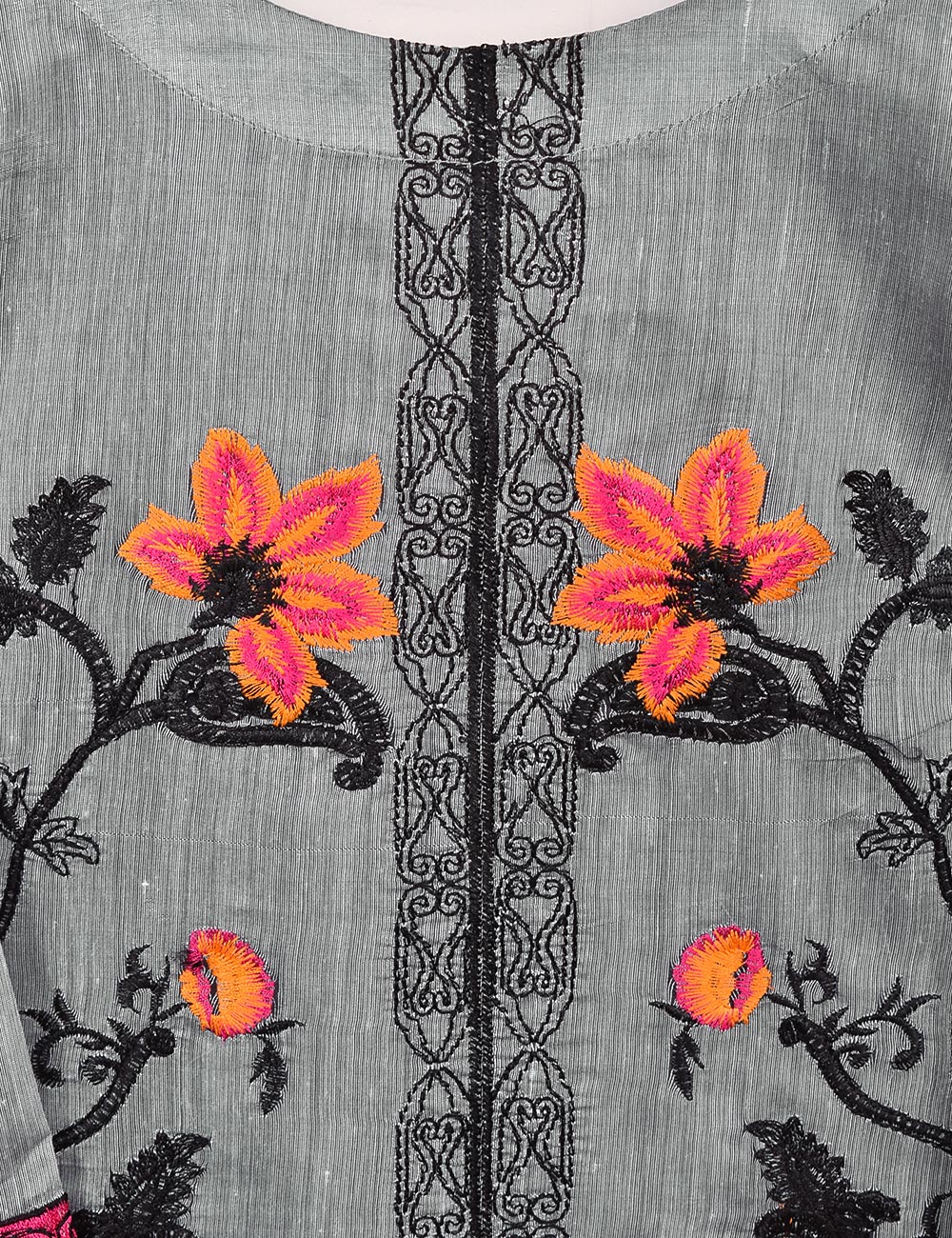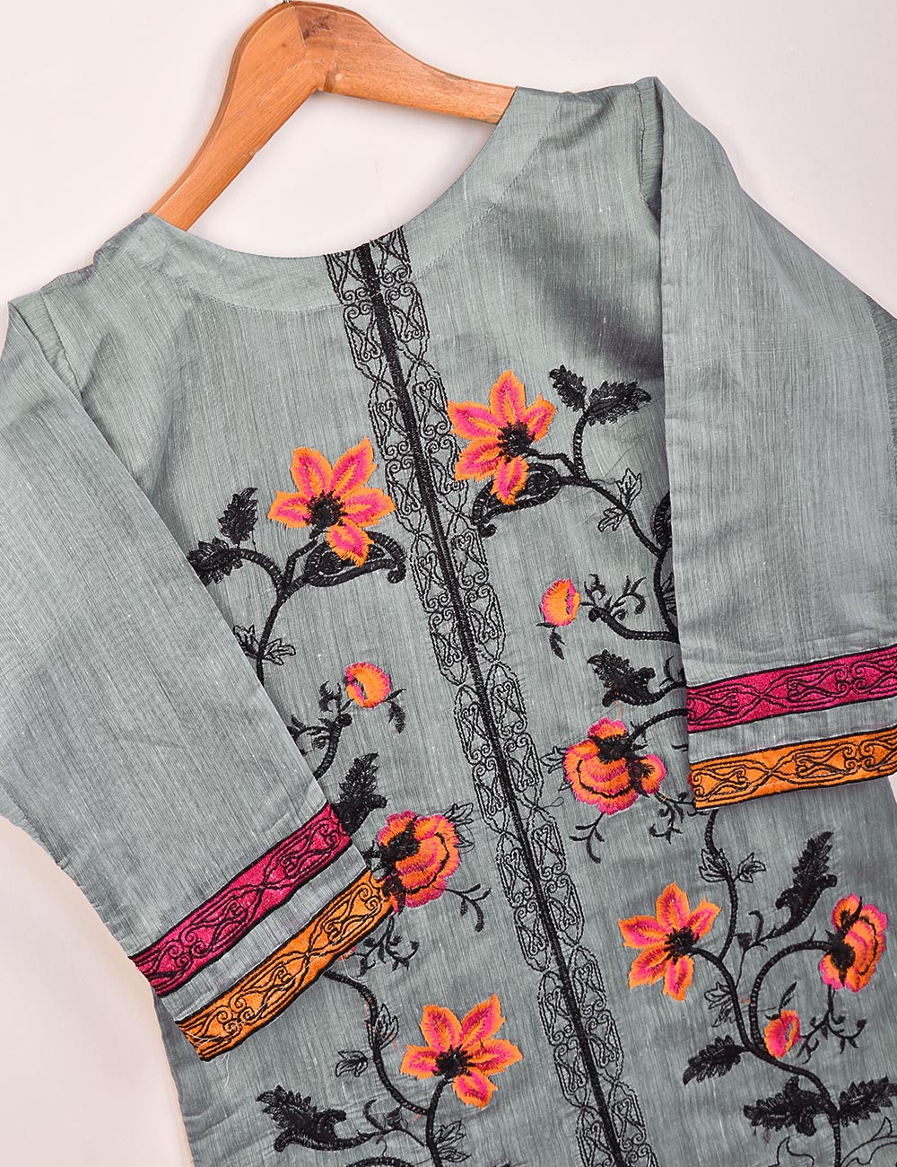 Paper Cotton Embroidered Stitched Kurti - (TS-063B-Grey)