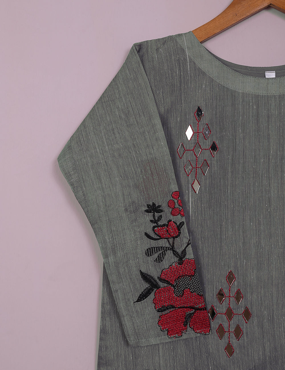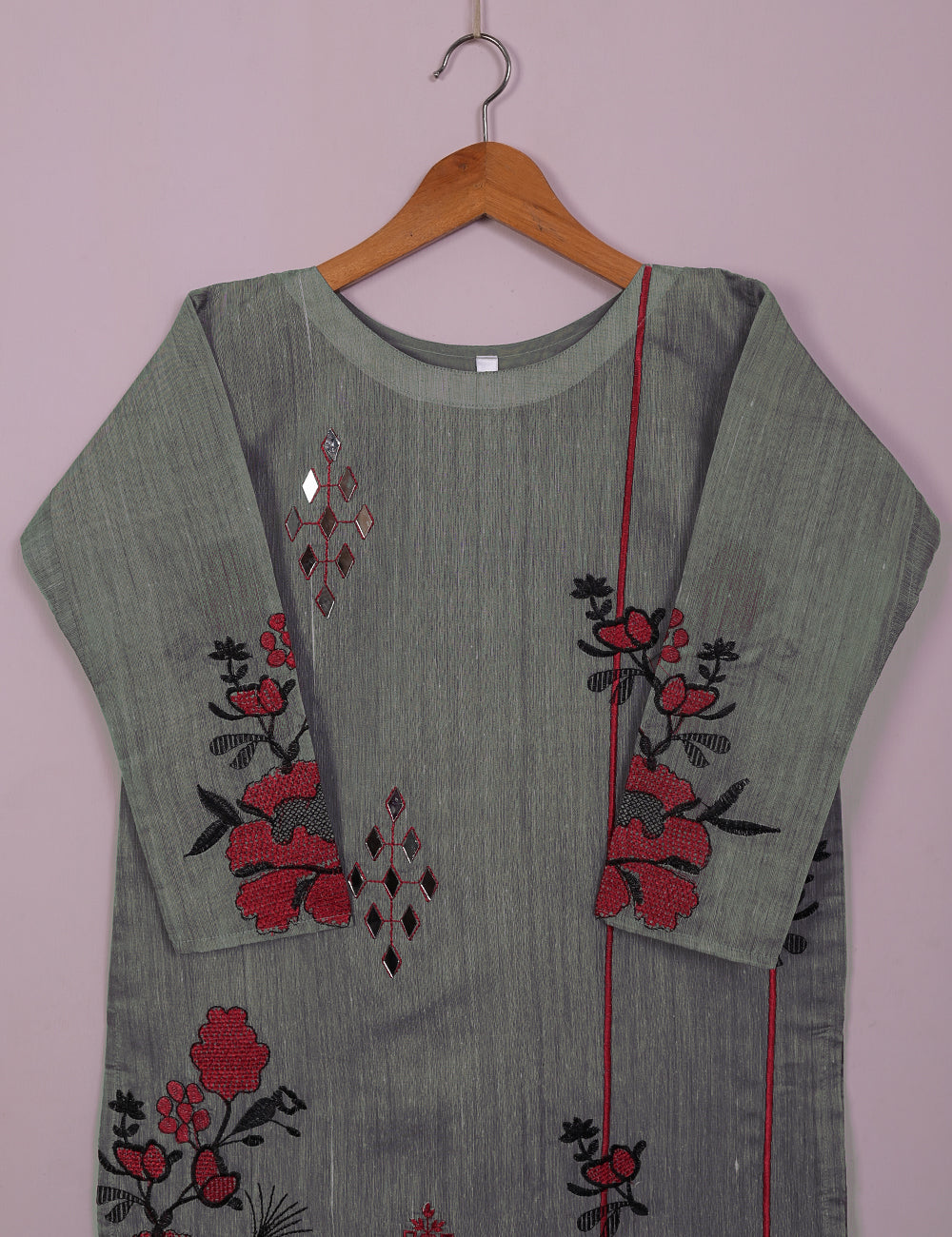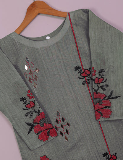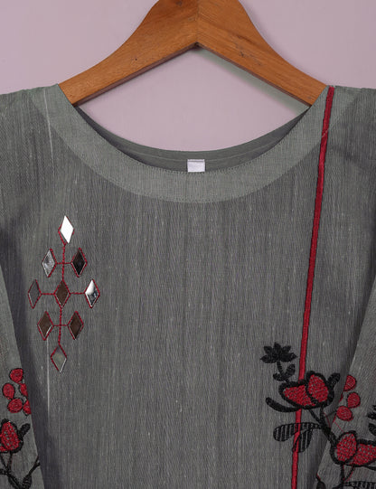 TS-071D-Grey - Falak - Paper Cotton Embroidered Stitched Kurti