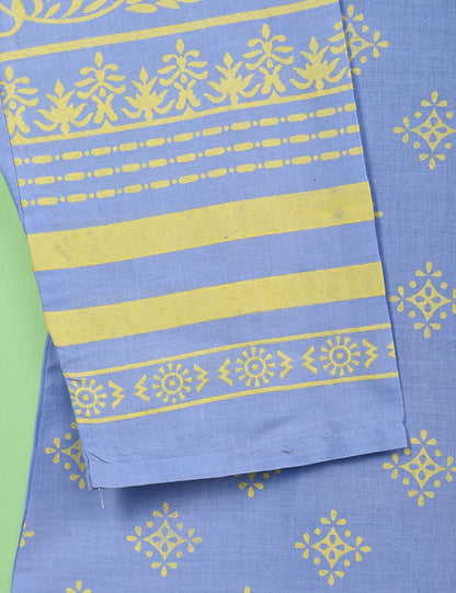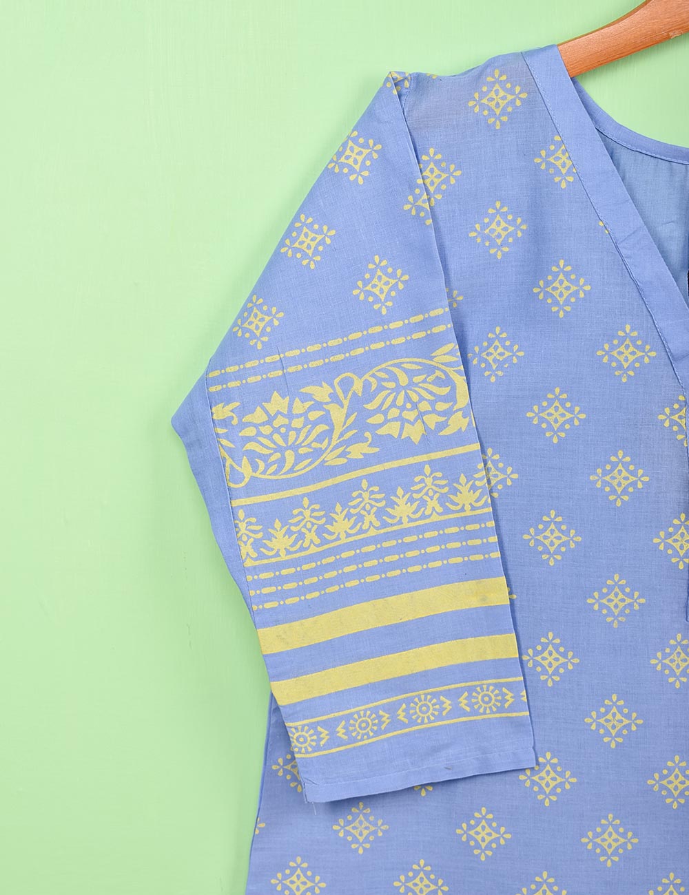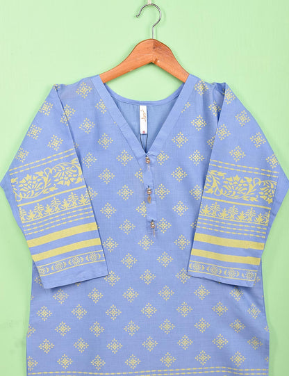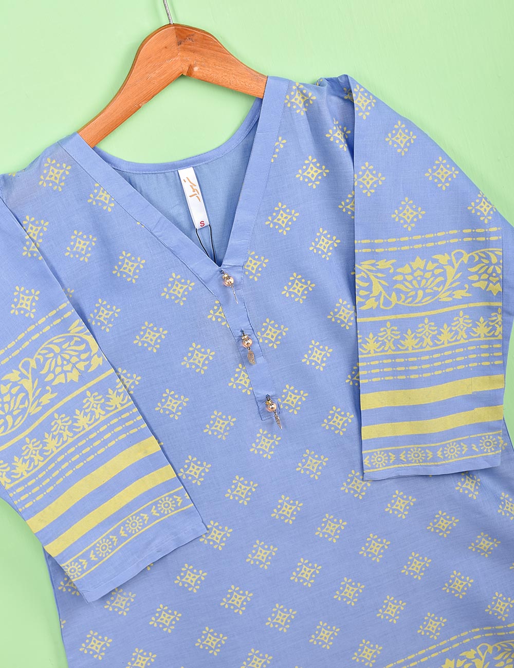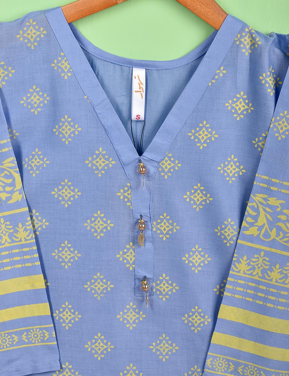 Cotton Printed Stitched Kurti Embellished With Tassels On Neckline - (TS-073A-BluishPurple)