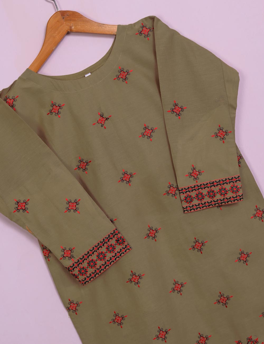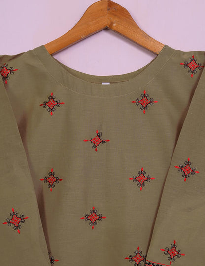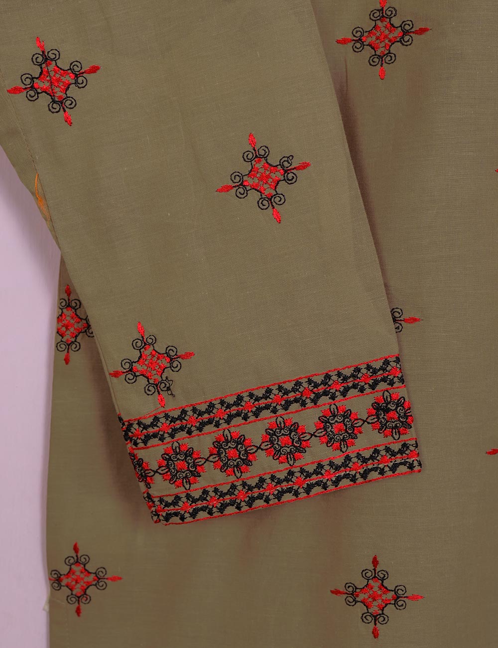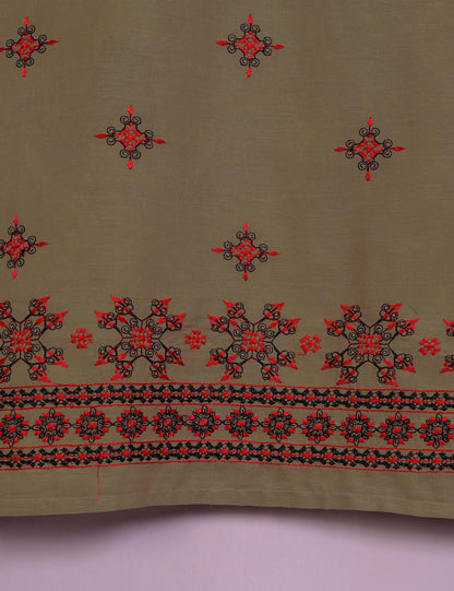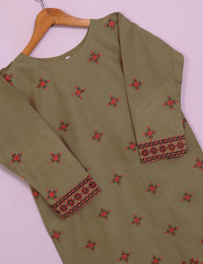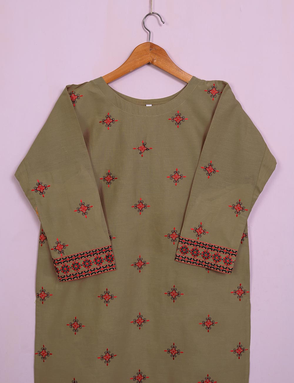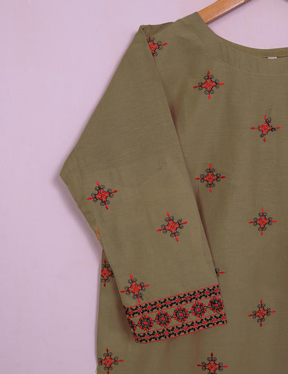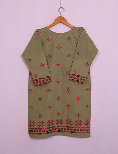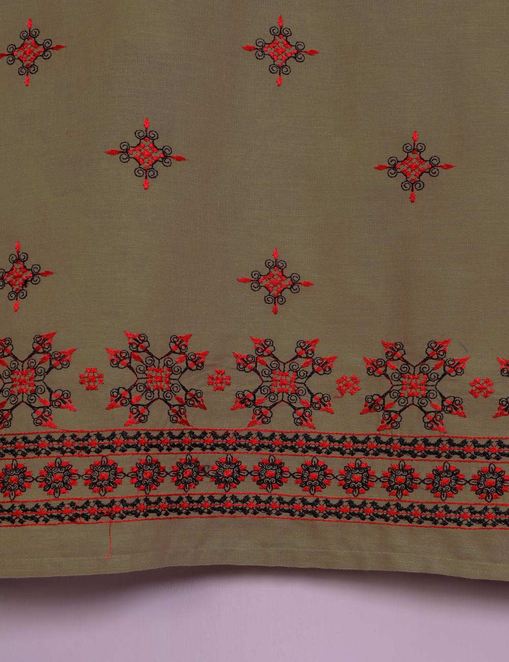 TS-110A-Khaki - Cotton Embroidered Stitched Kurti