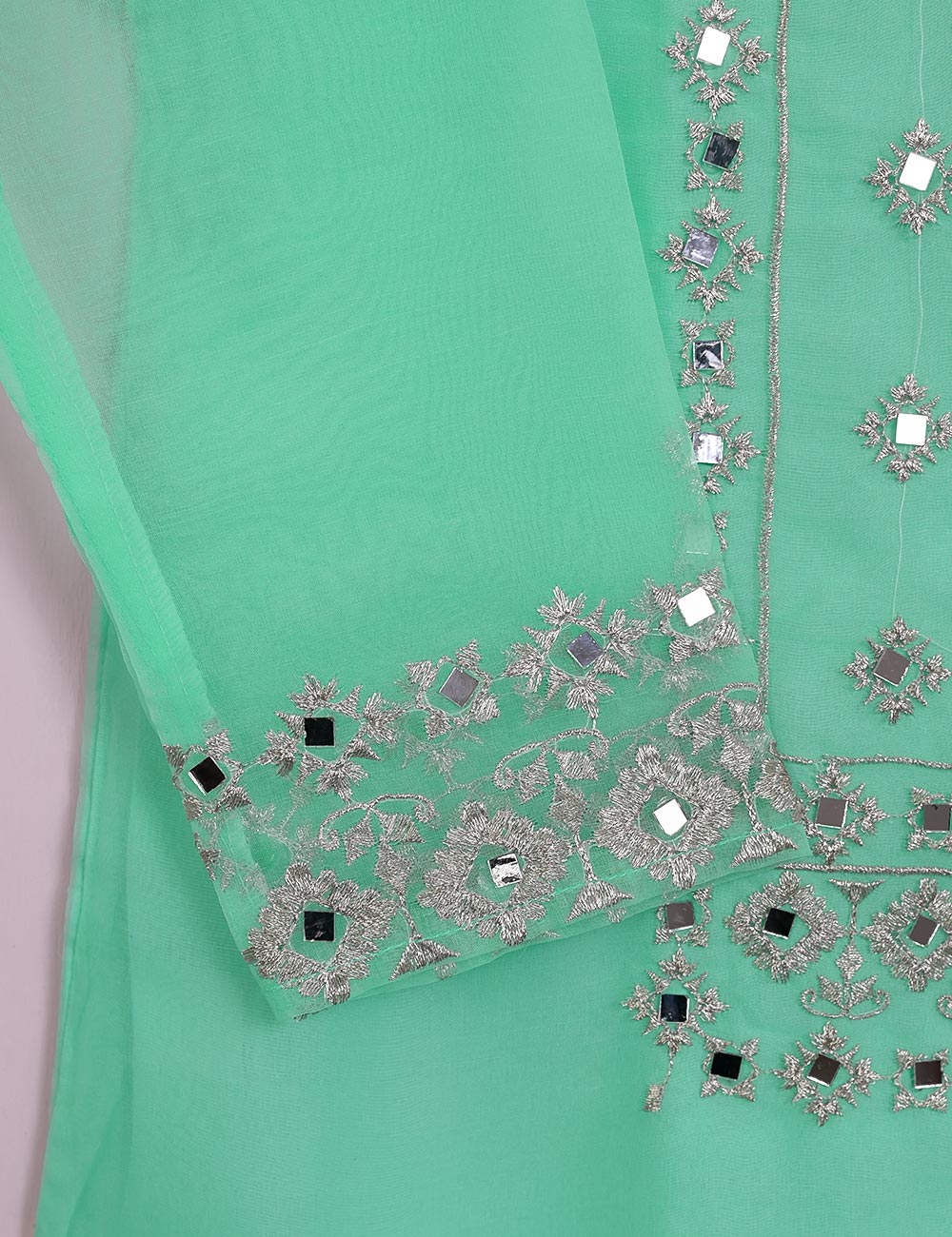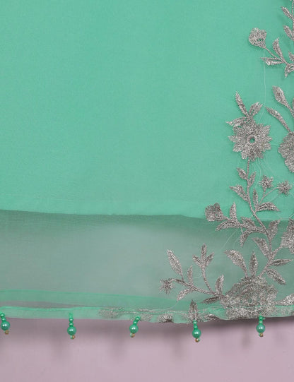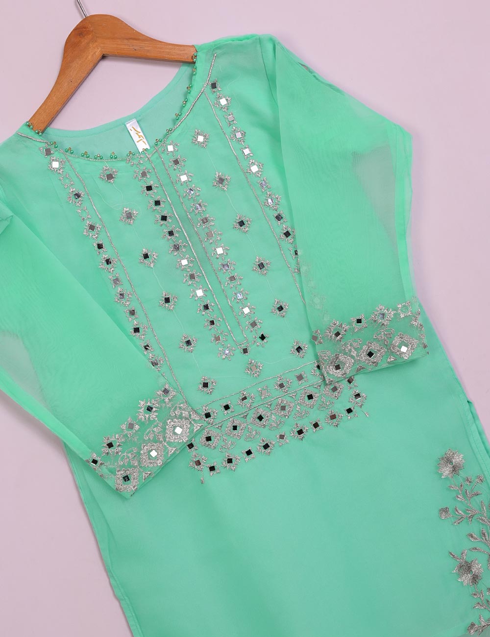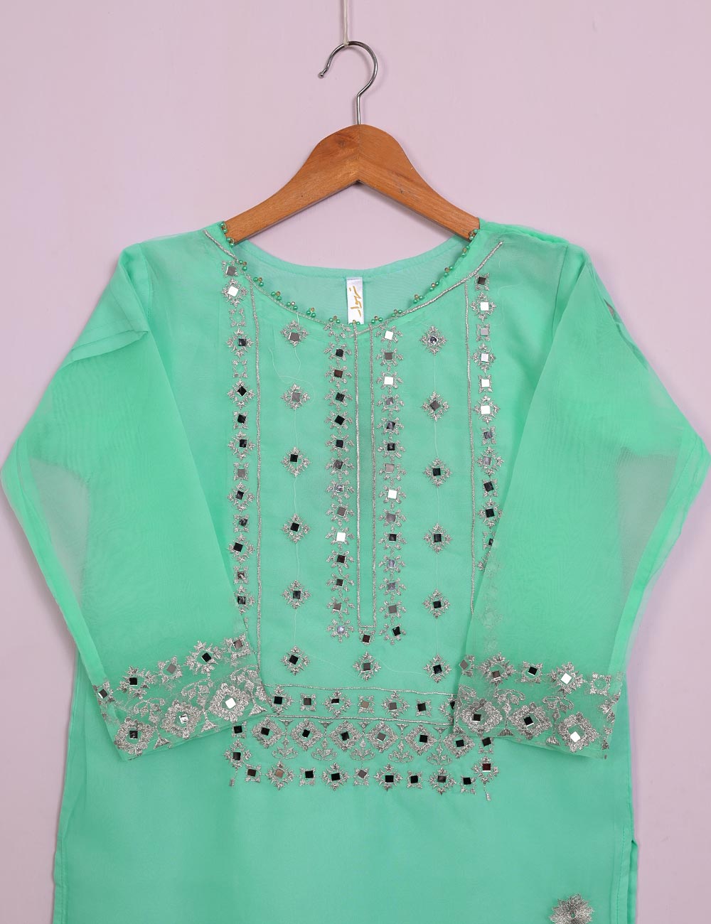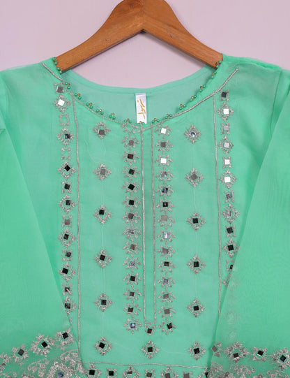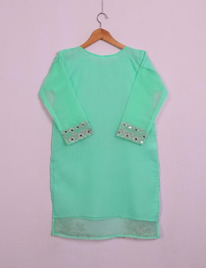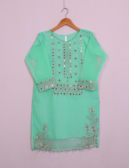 TS-113A-AquaGreen - Organza Embroidered Stitched Kurti With Mirror Work