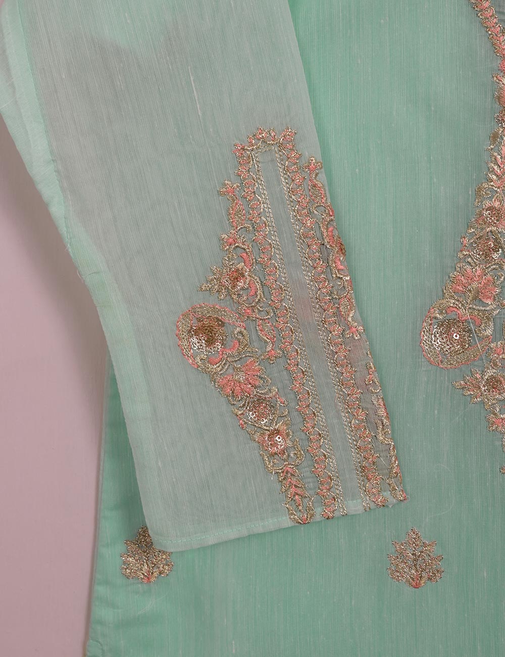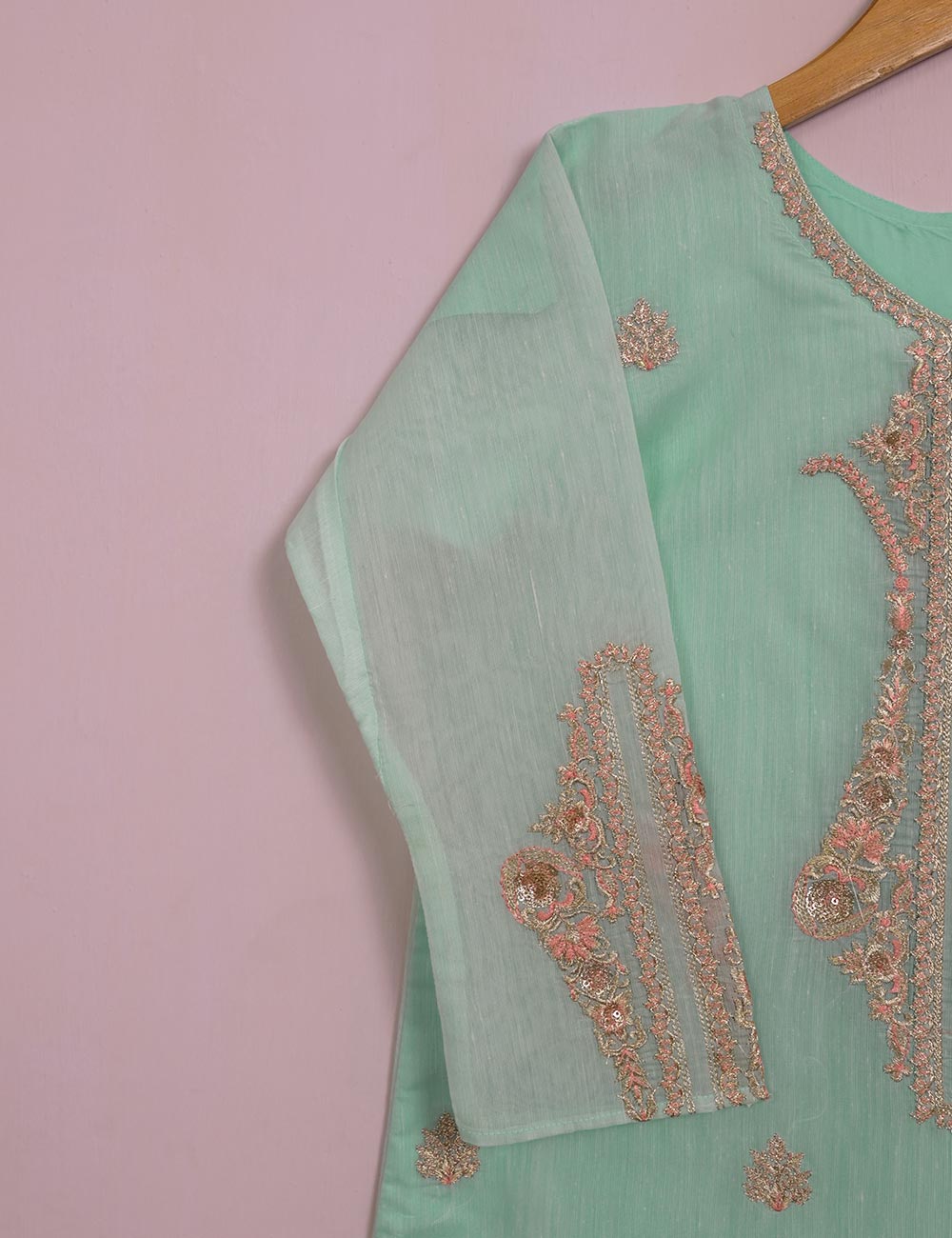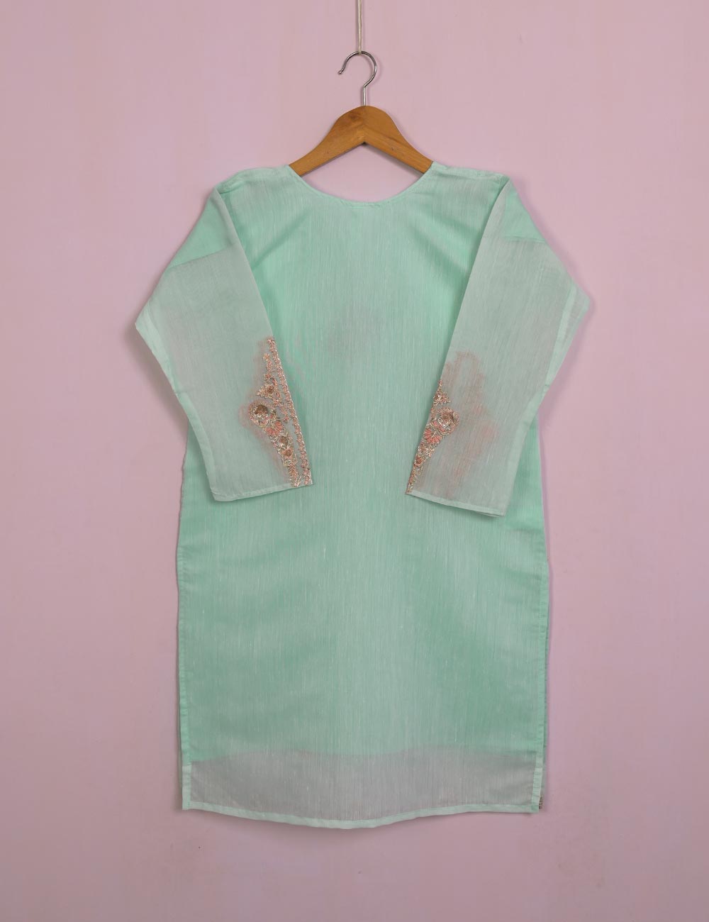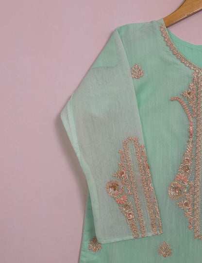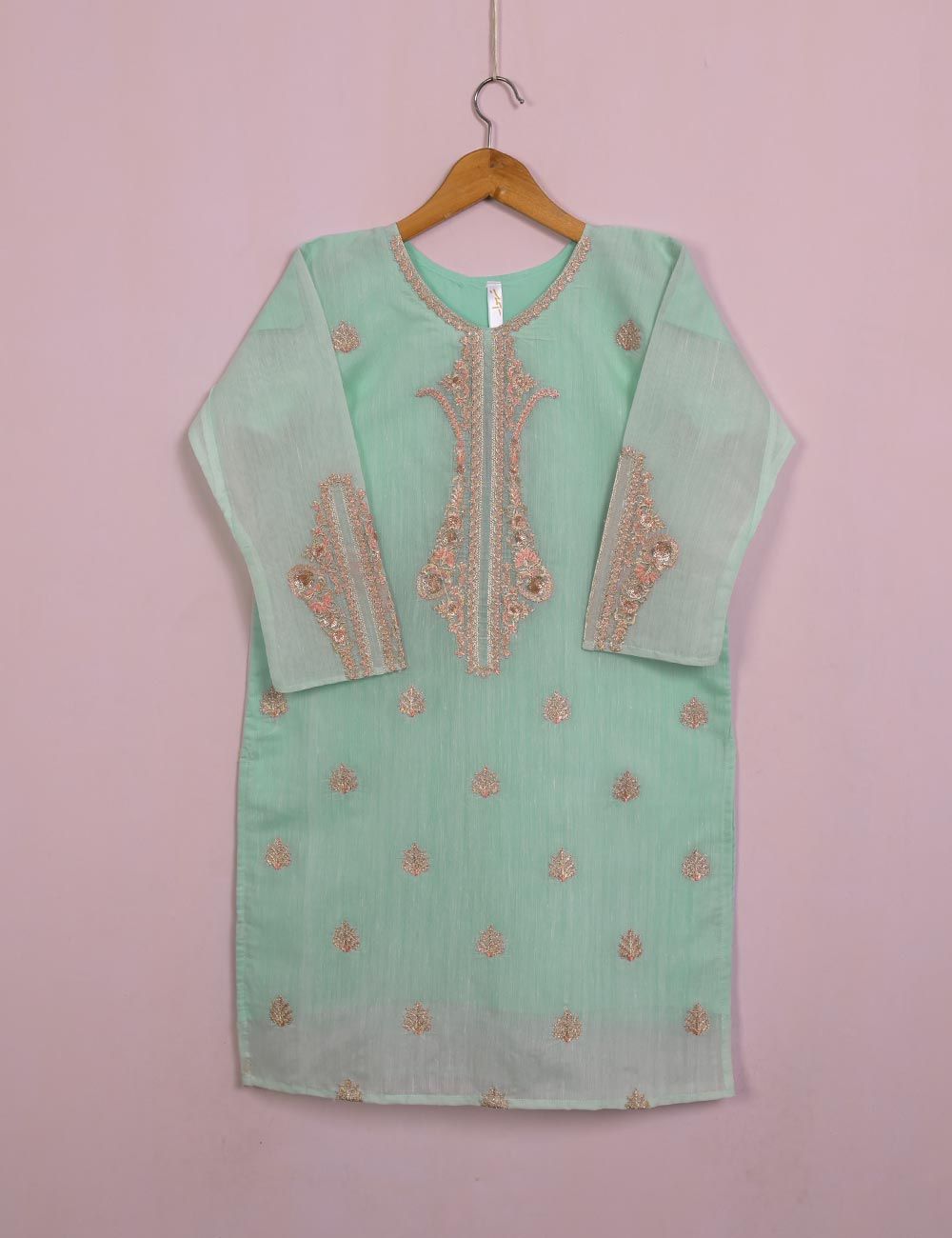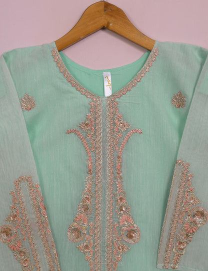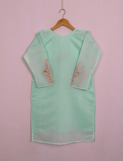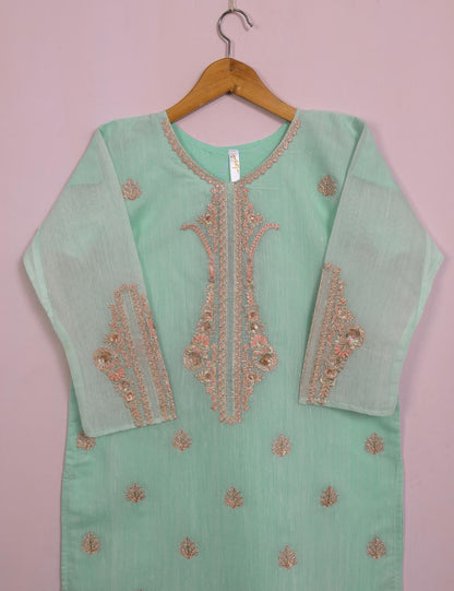 TS-116A-AquaGreen - Paper Cotton Embroidered Stitched Kurti