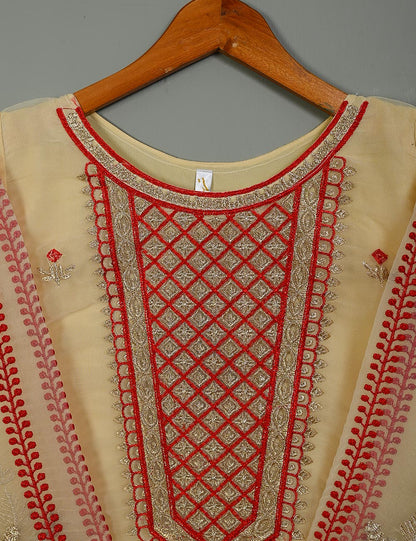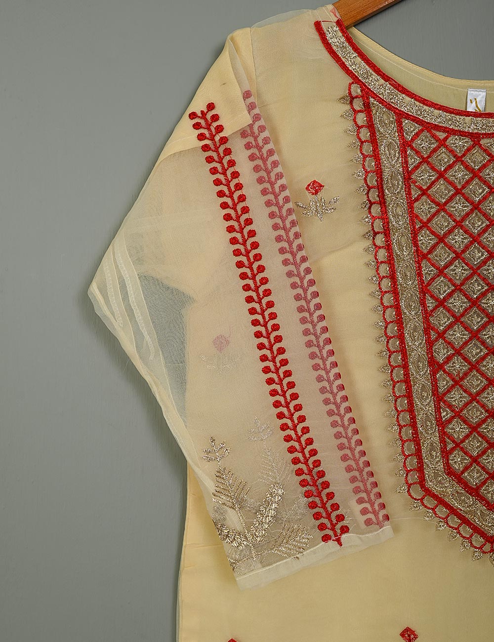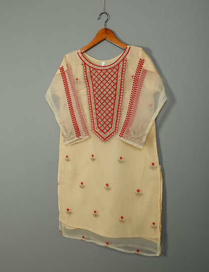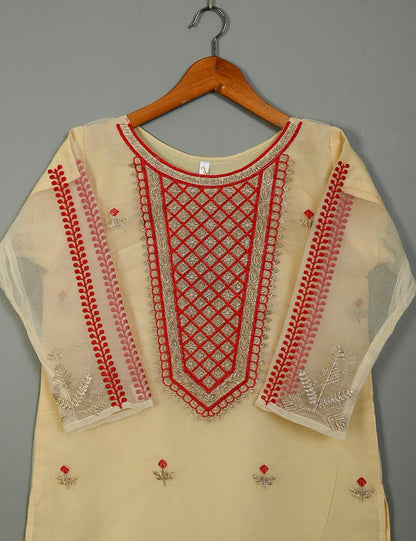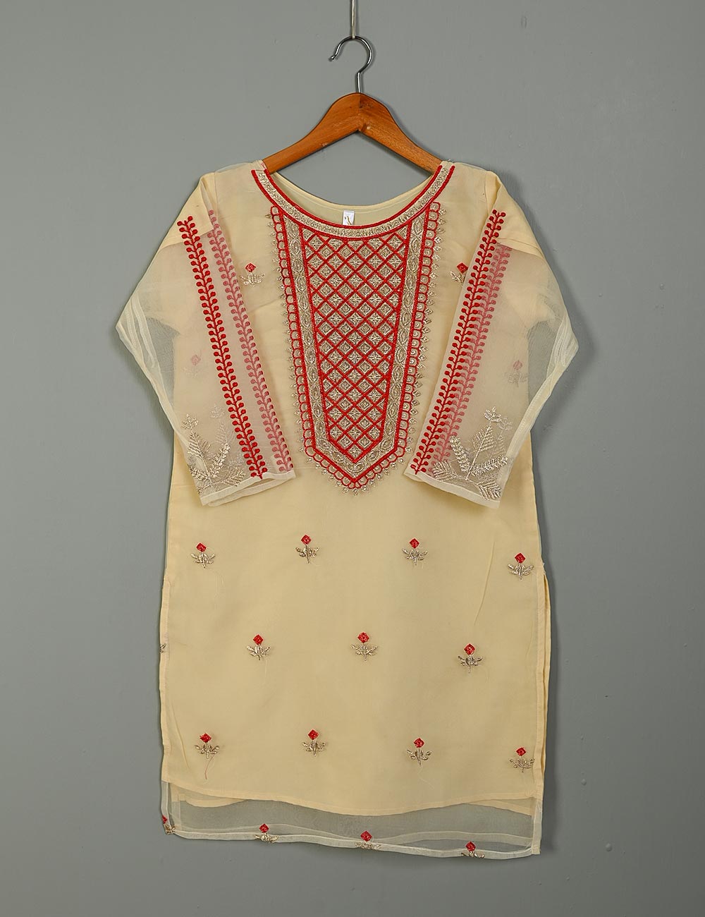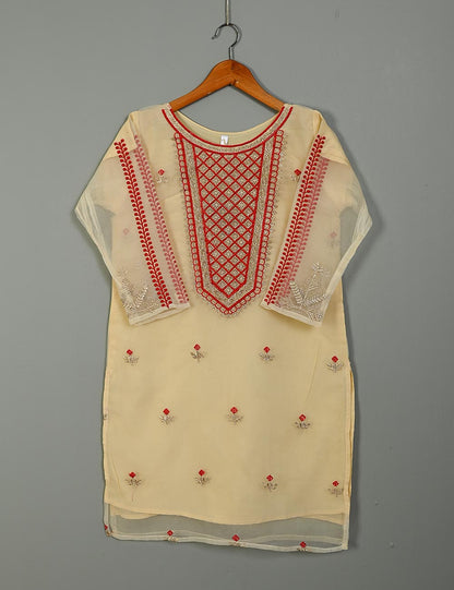 TS-118A-Skin - Organza Embroidered Stitched Kurti