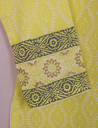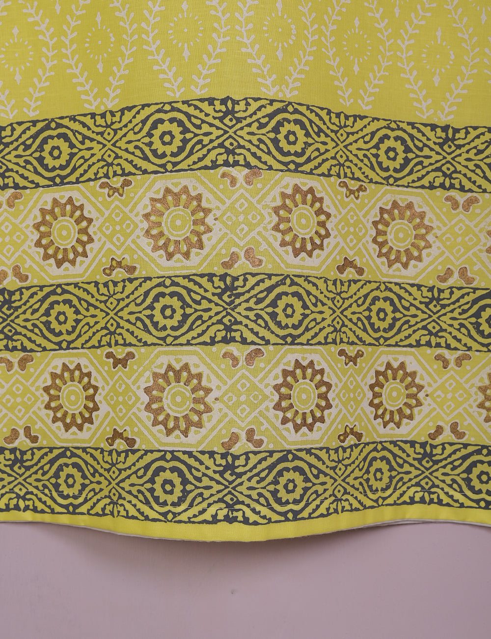 TS-119A-Yellow - Cotton Block Printed Stitched