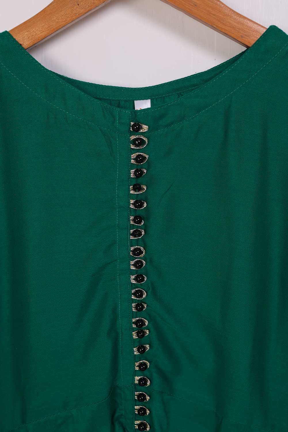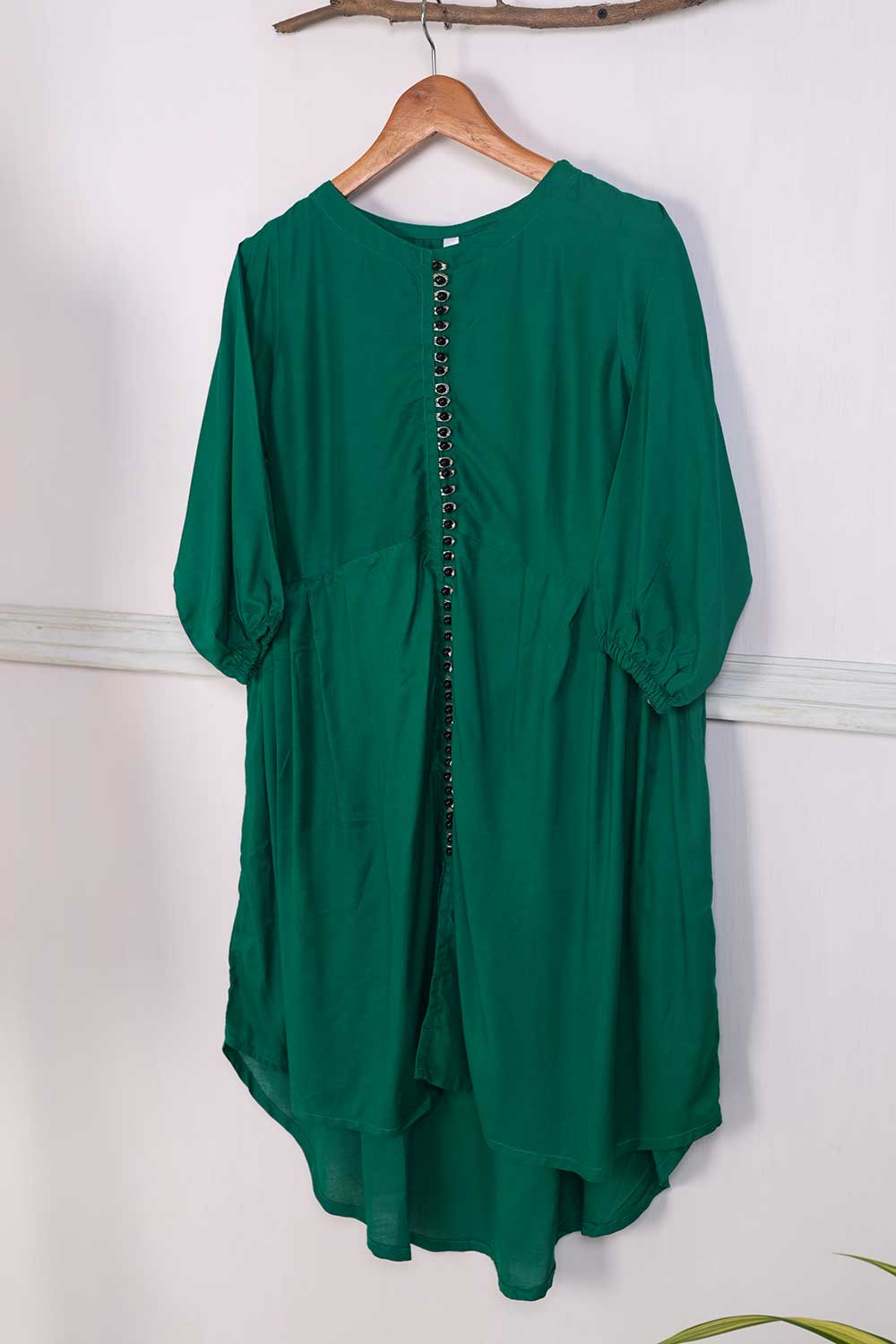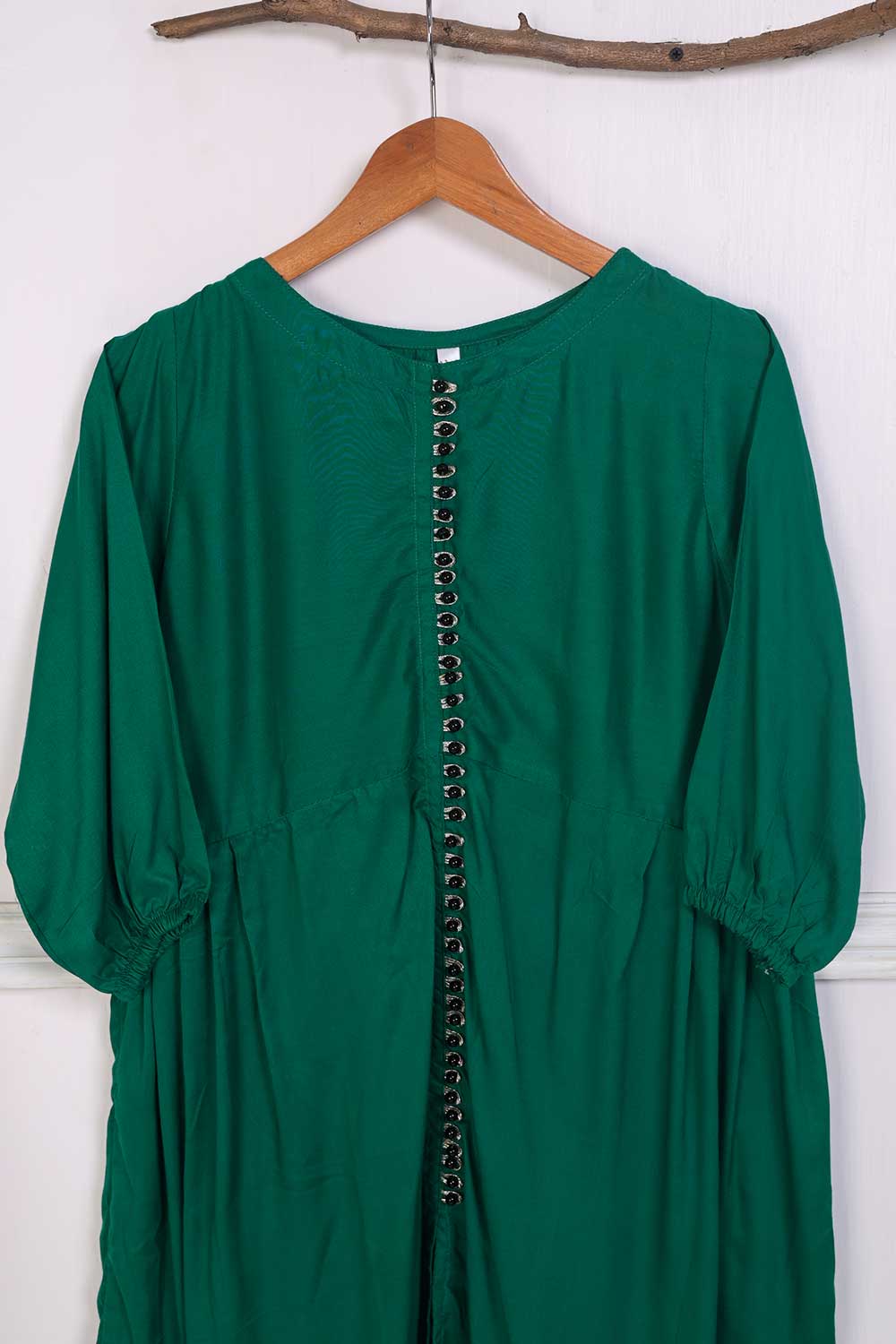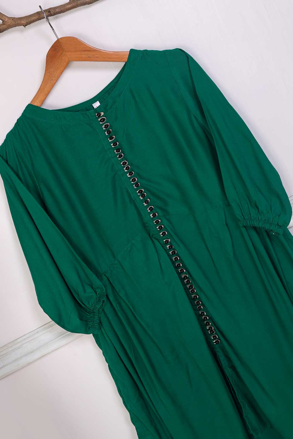Linen Stitched Frock With Beautiful Pearls Neckline.