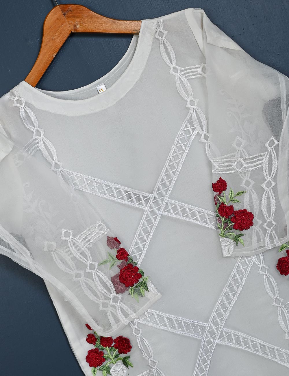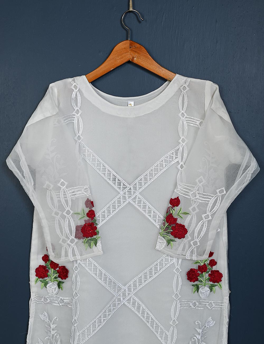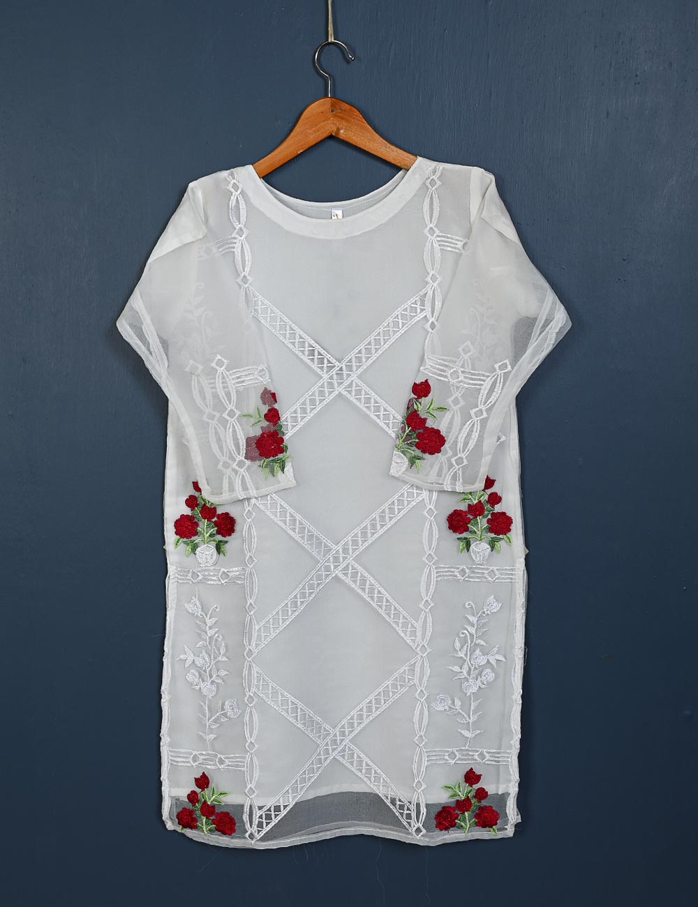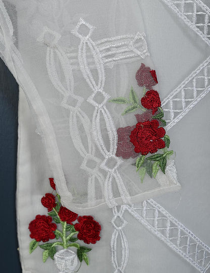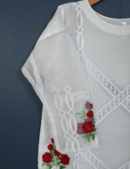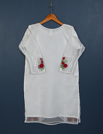 TS-149-White - Amaryllis - Organza Embroidered Kurti