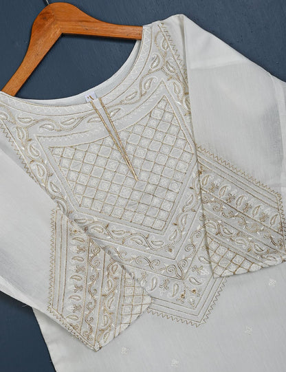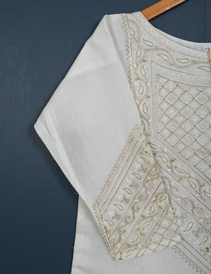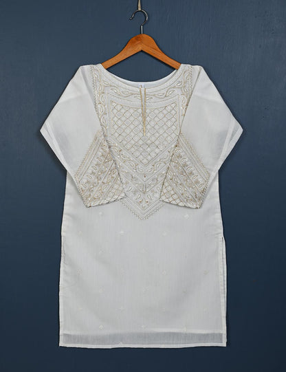 TS-154-White - Exotic Patterns - Paper Cotton Embroidered Kurti