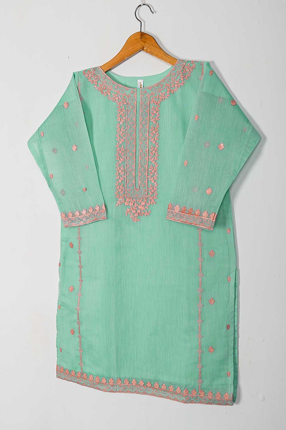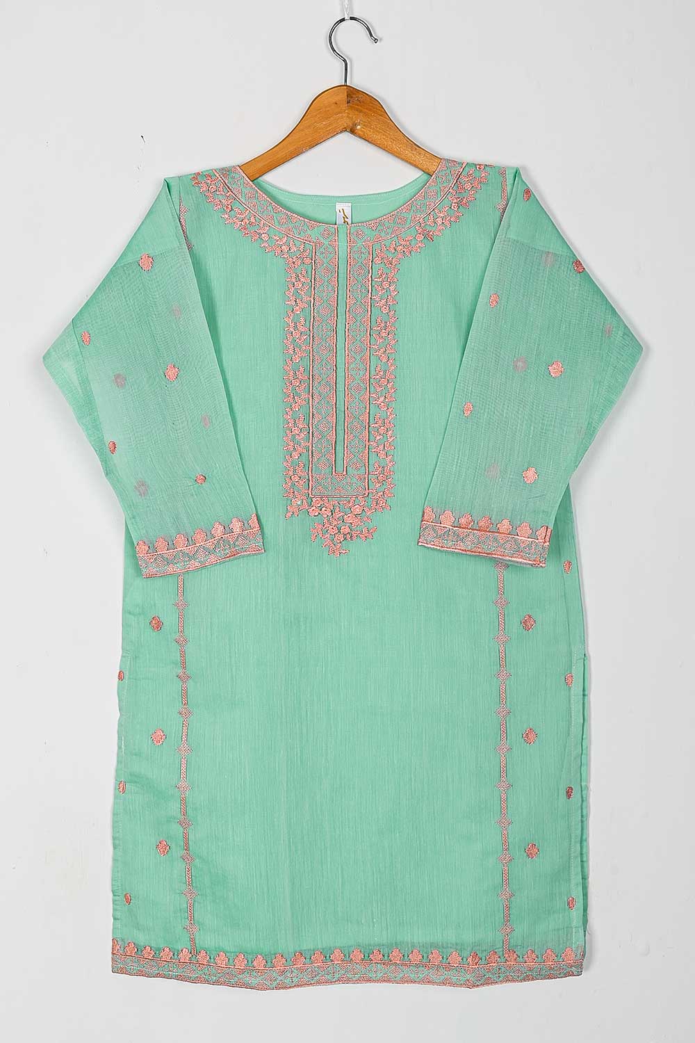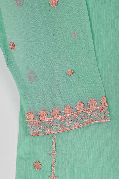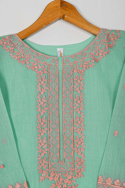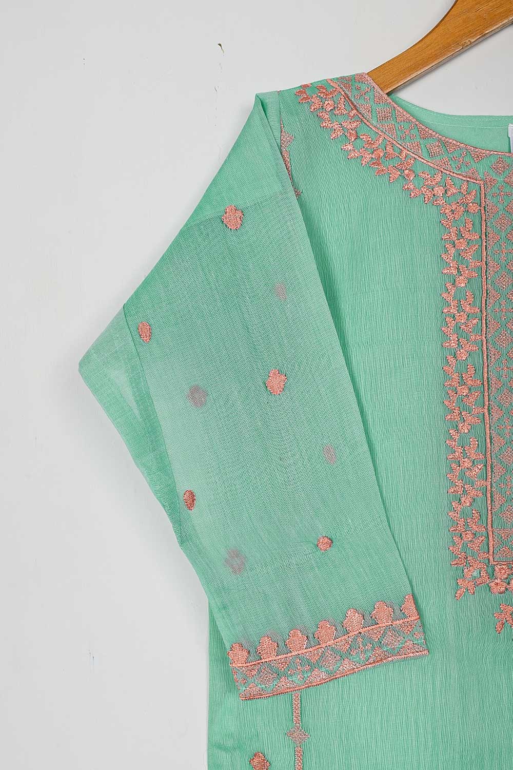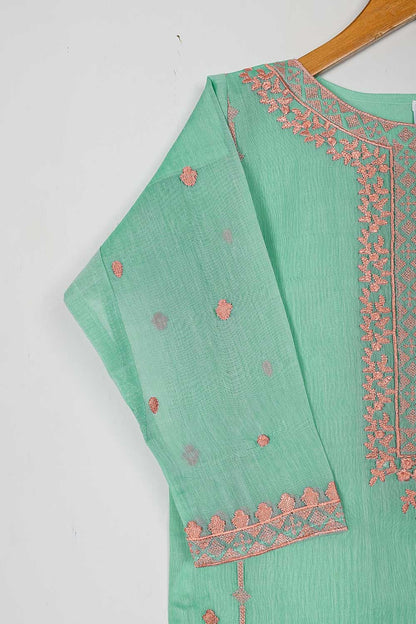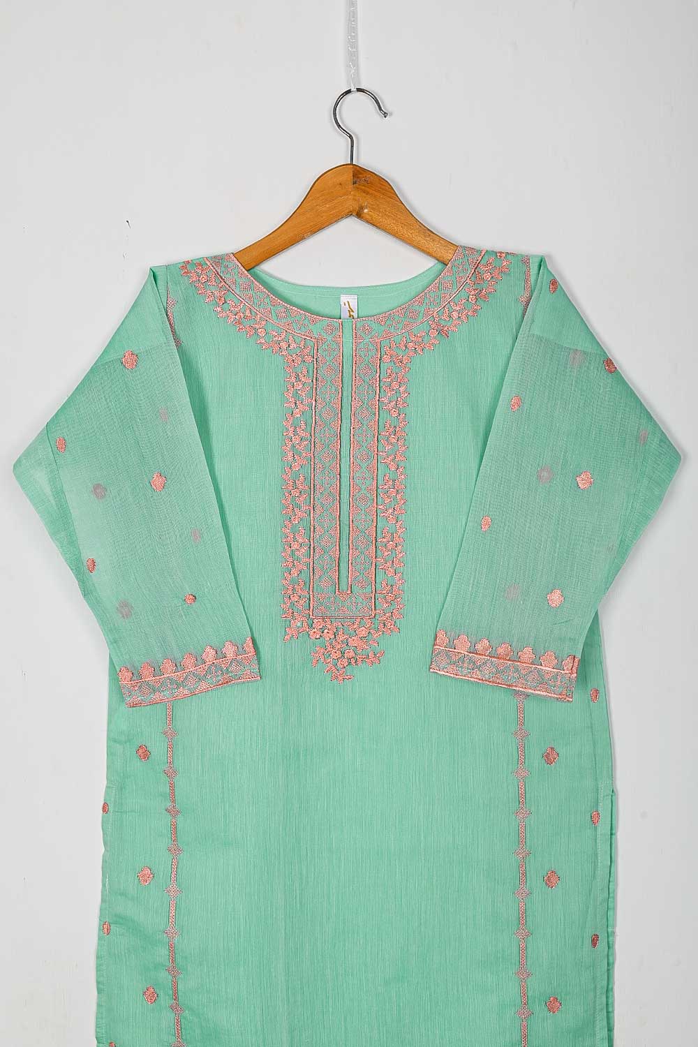 TS-168-SeaGreen - Paper Cotton Embroidered Kurti