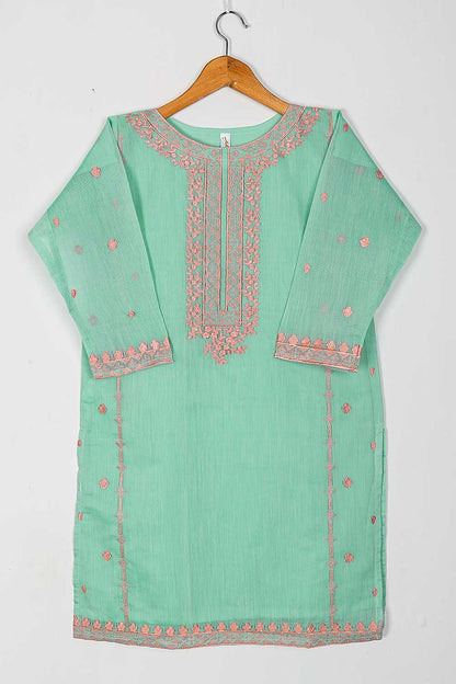 Paper Cotton Embroidered Stitched Kurti.
