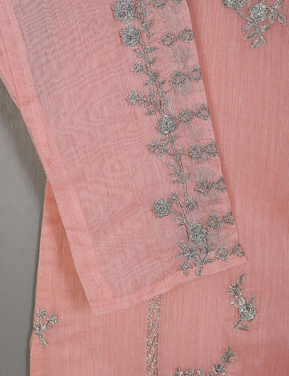 TS-201A-Pink - Paper Cotton Embroidered Kurti