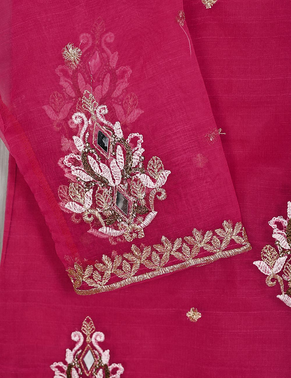 TS-209-Pink - Eccentric Fuse - Organza Embroidered Kurti