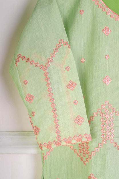TS-211A-Pista - Paper Cotton Embroidered Kurti