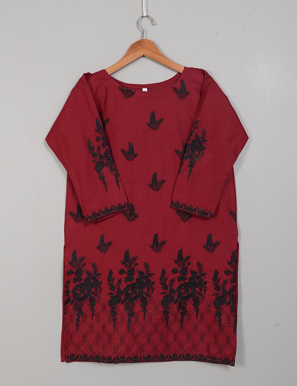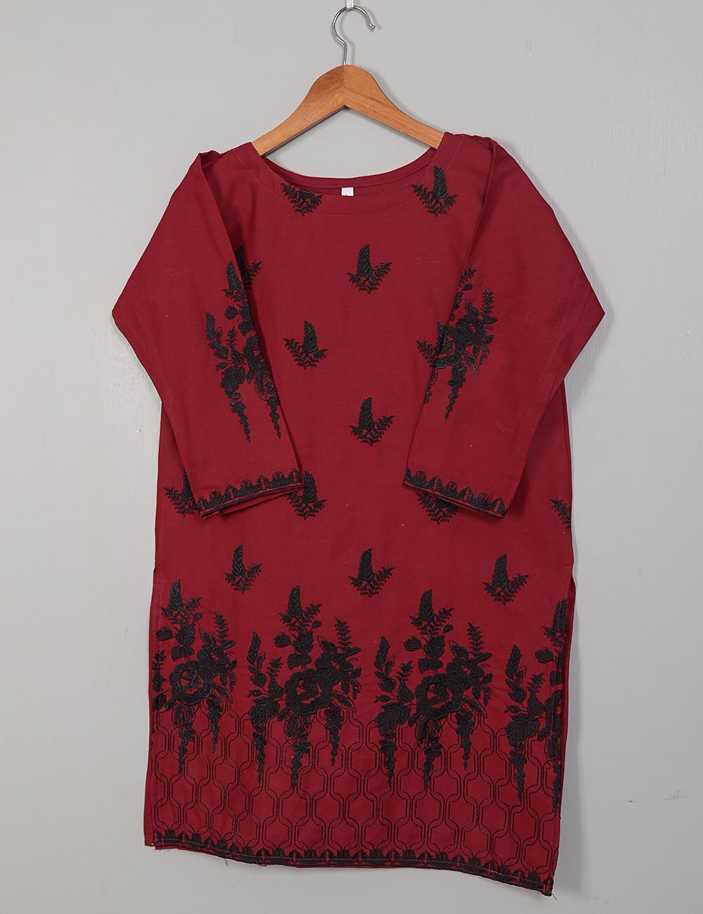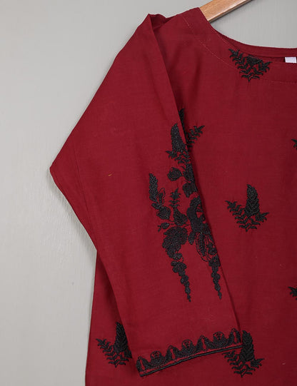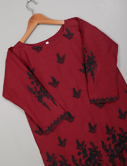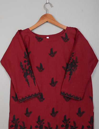 TS-214A-Maroon - Cotton Embroidered Stitched Kurti