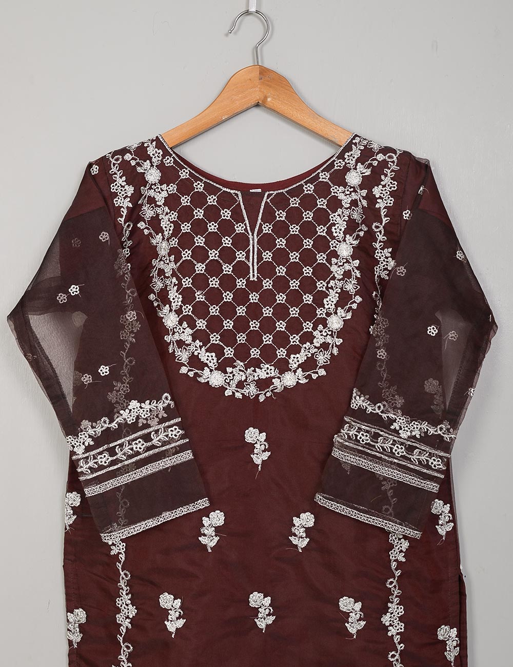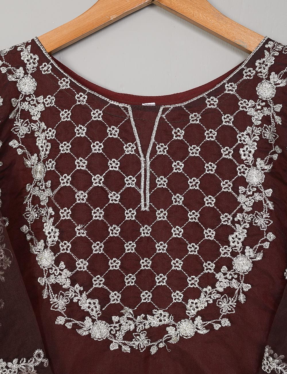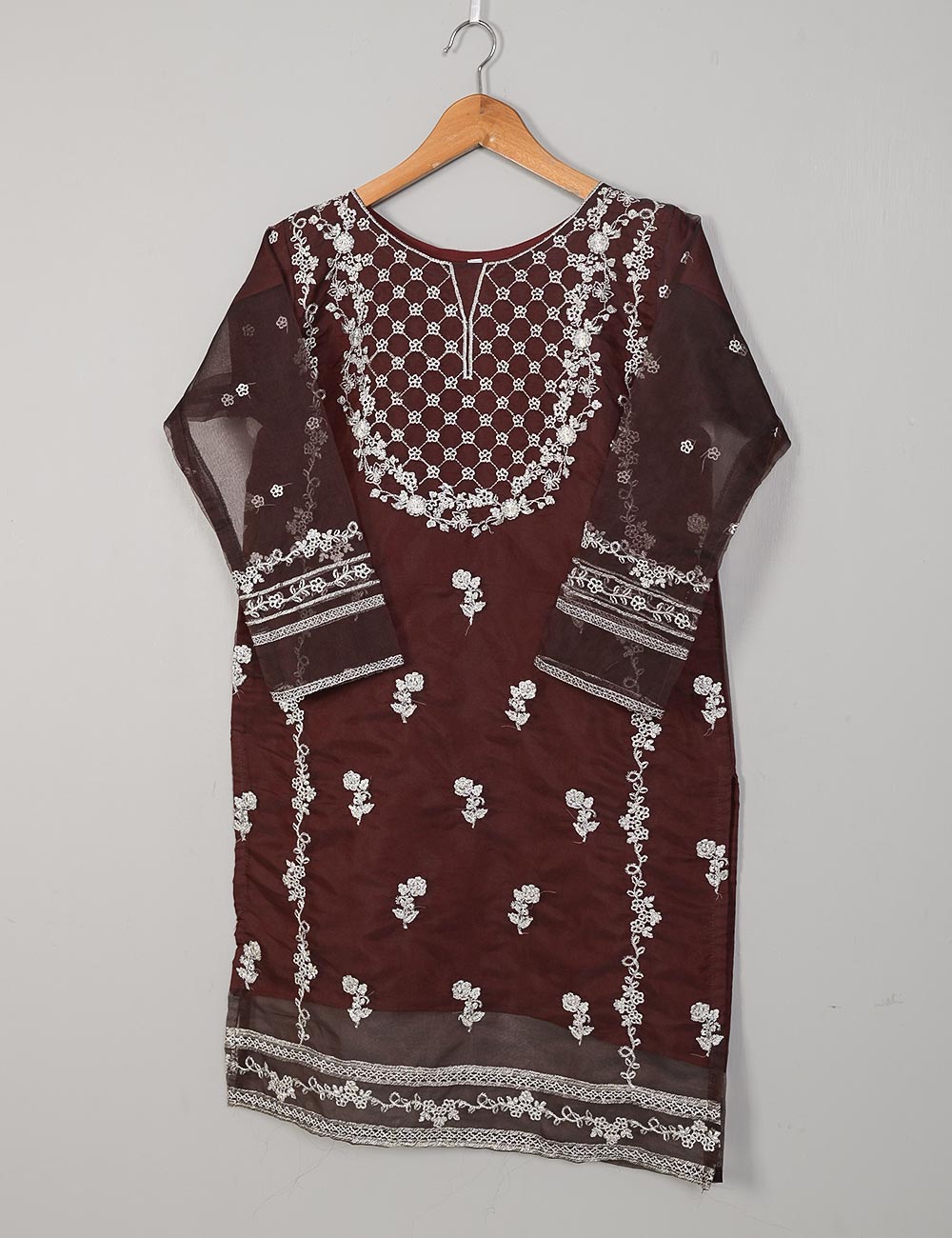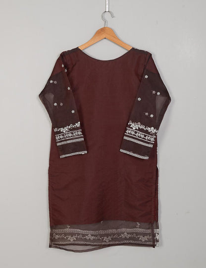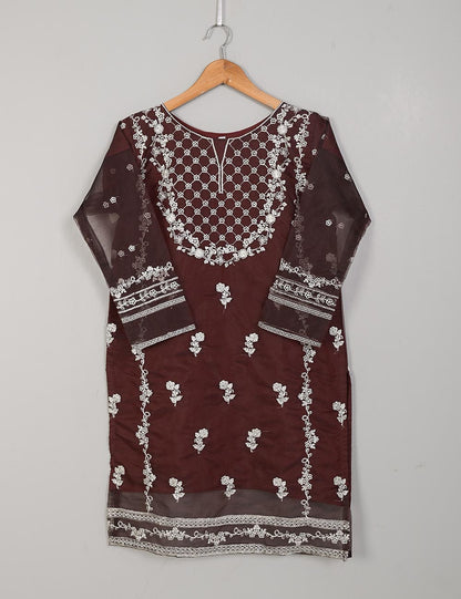 TS-216A-Maroon - Organza Embroidered Stitched Kurti